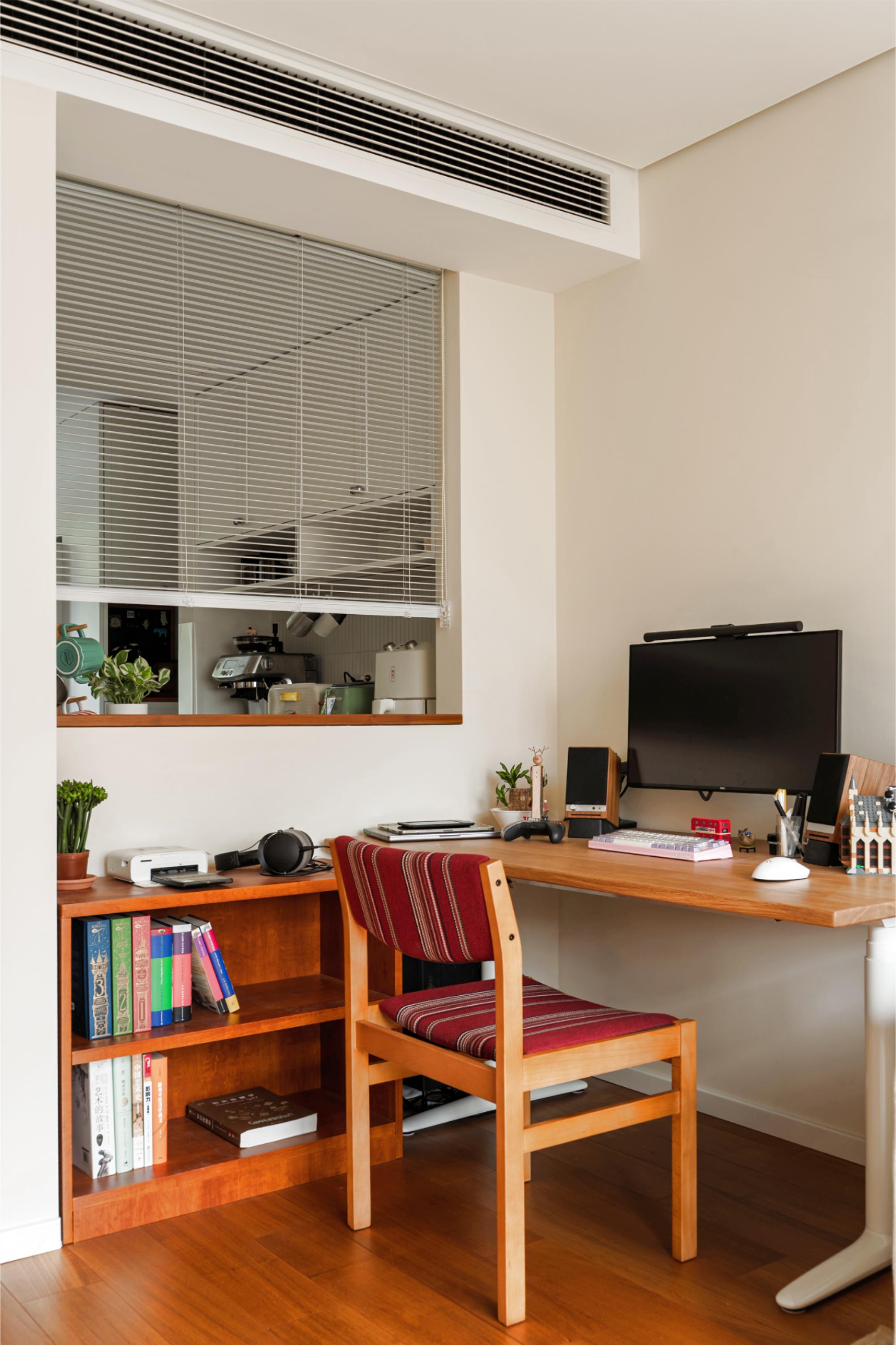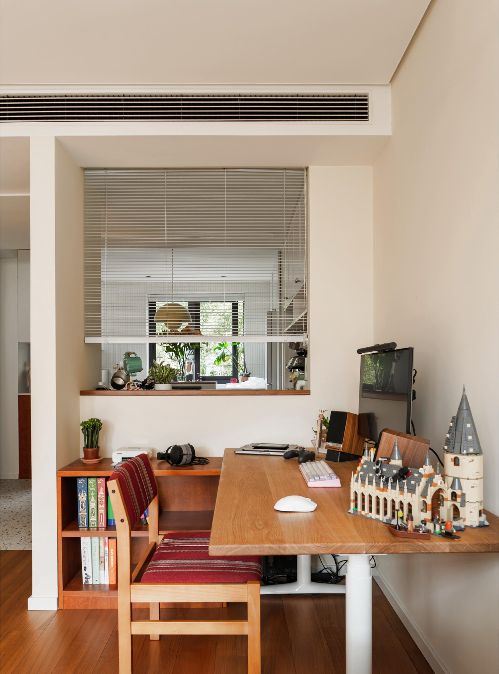 紧邻餐厅的墙体增设室内窗,借光优化采光,打破隔断界限,构建空间交互体验,形成多维度情感纽带。 -