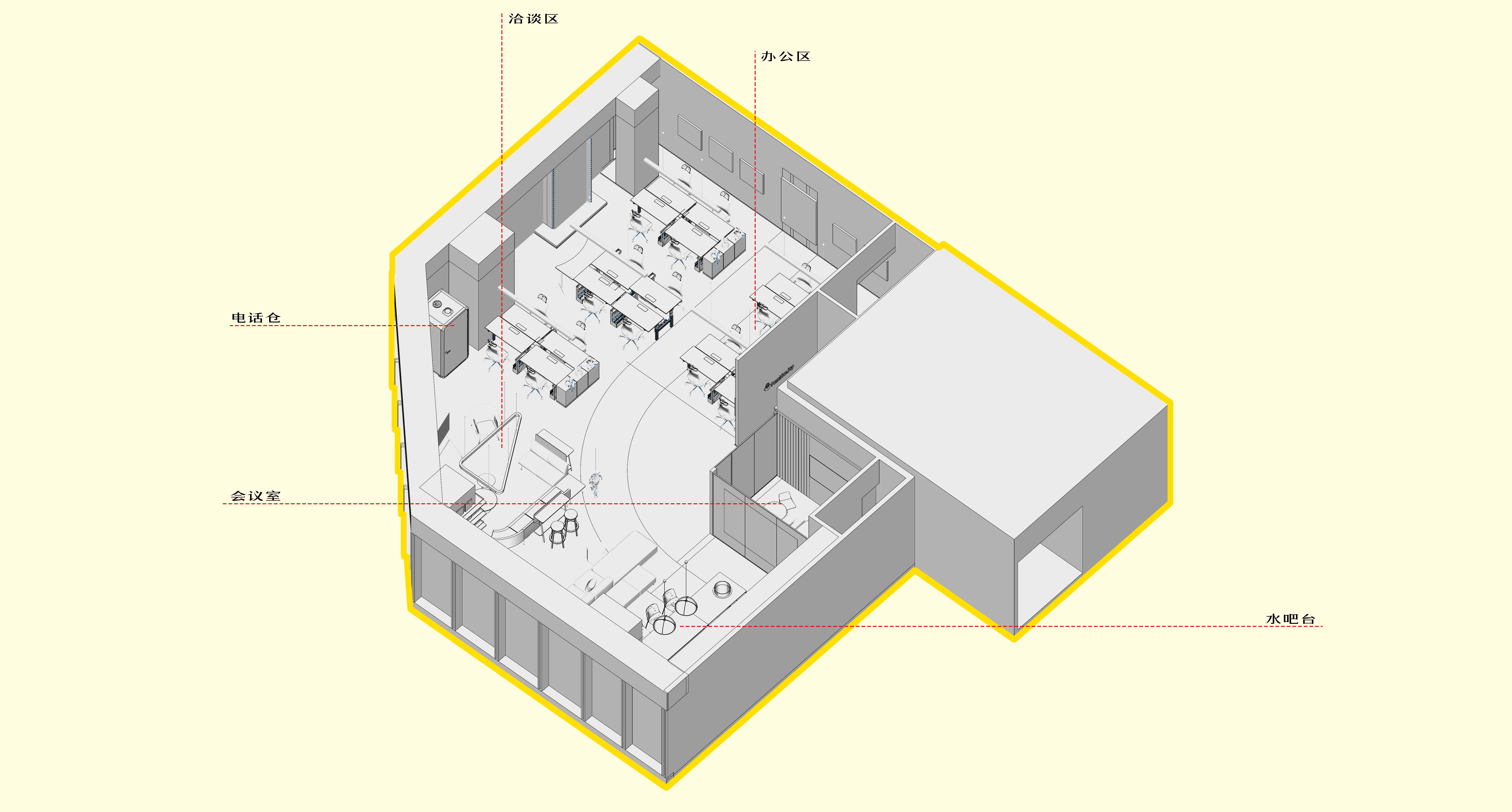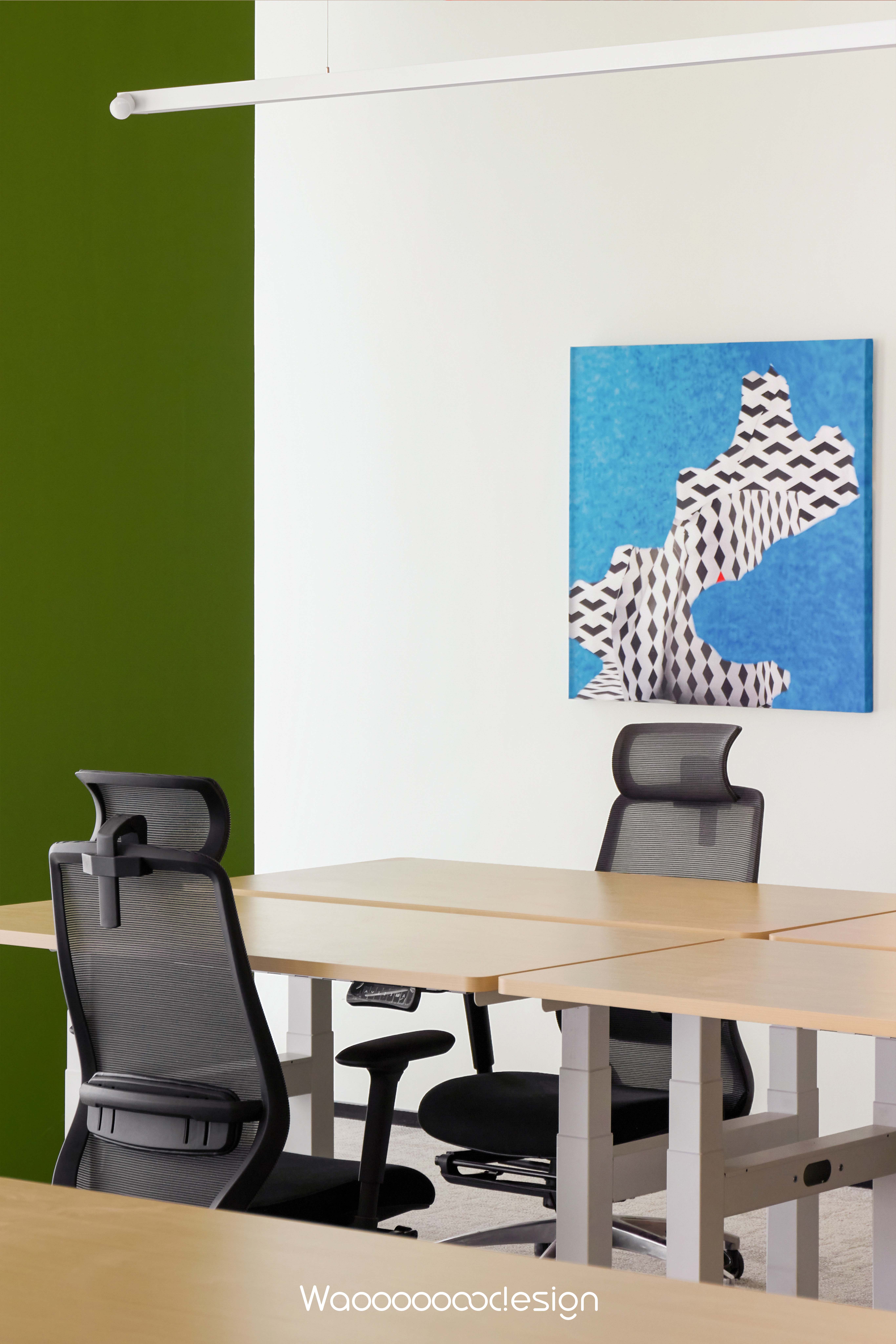 经理办公室作为“观察位”,视野覆盖全局但不过度介入,核心协作区位于“中路”,方便快速支援。采用升降桌,满足人体工程学办公需求