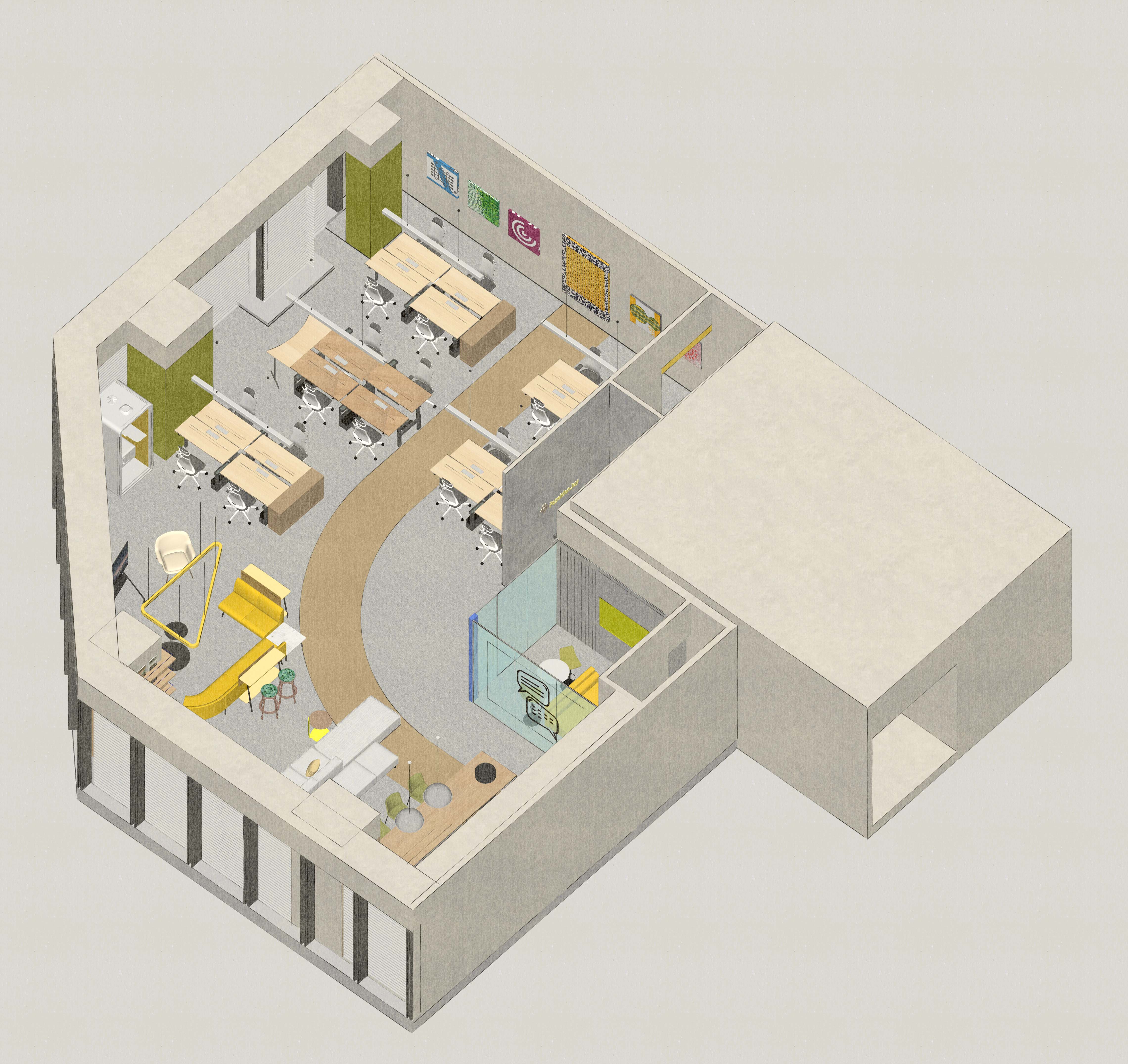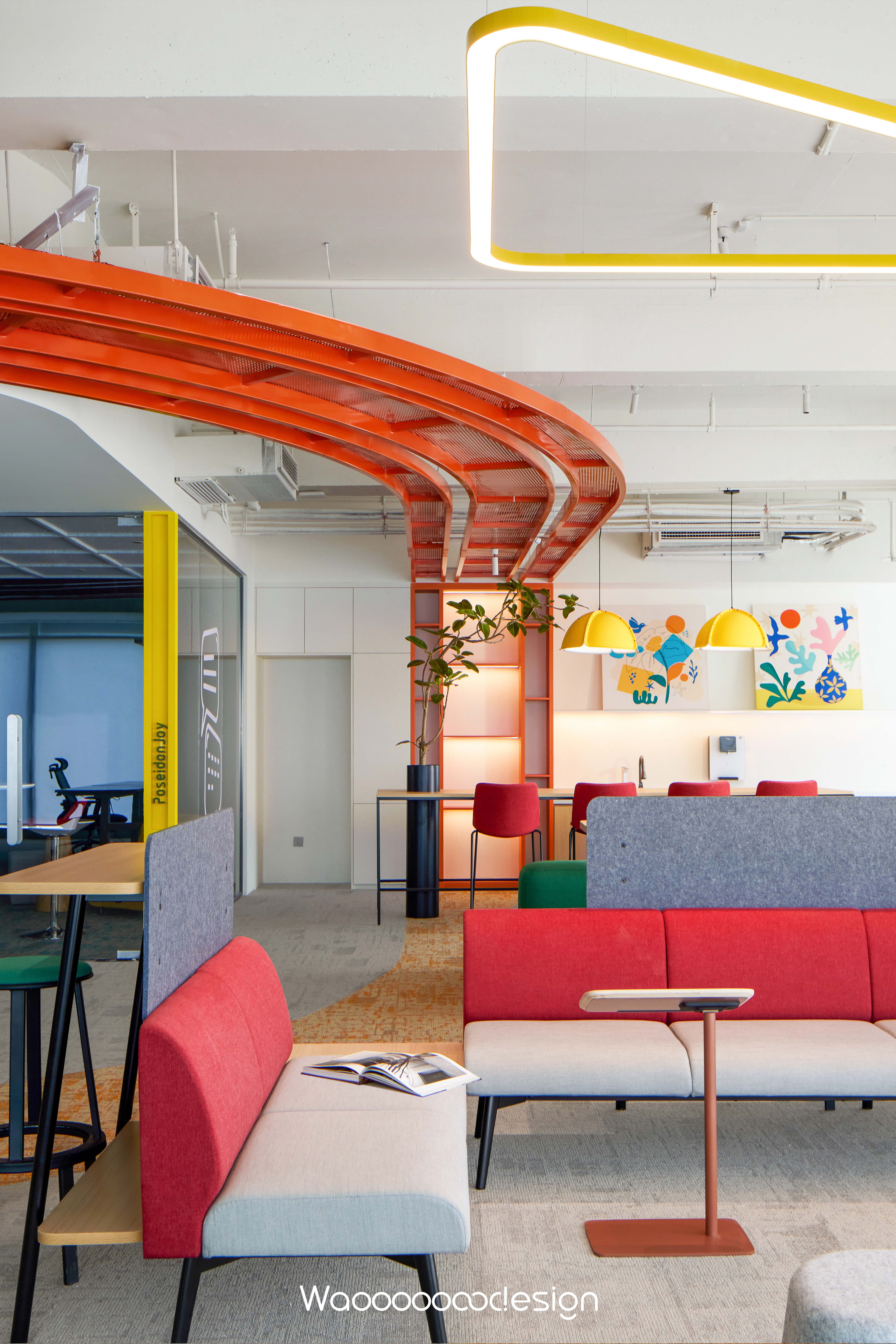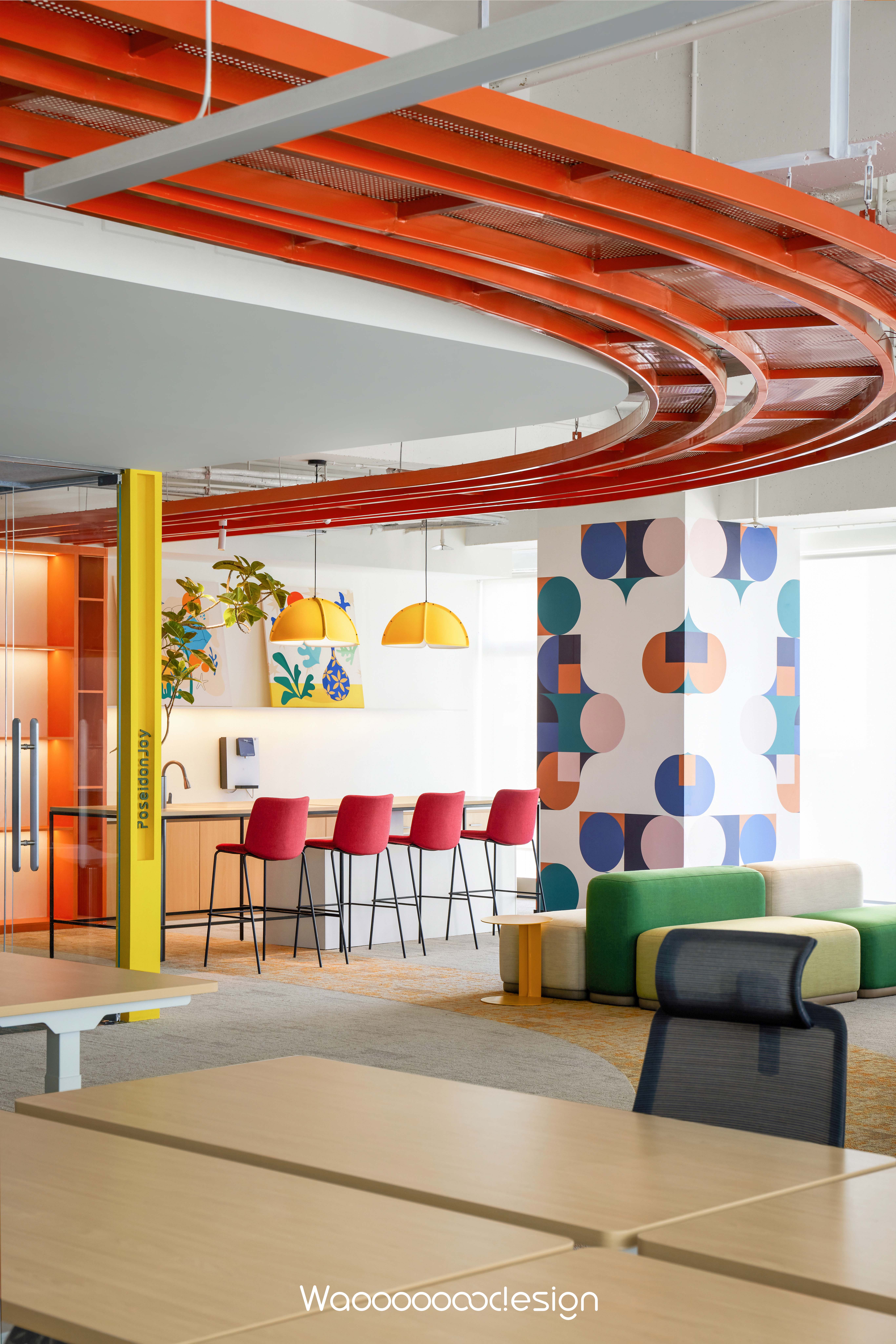 墙面、家具以大胆多彩配色(类比多巴胺与内酚酞的调和)为 “颜料”,激发创意活力。 -