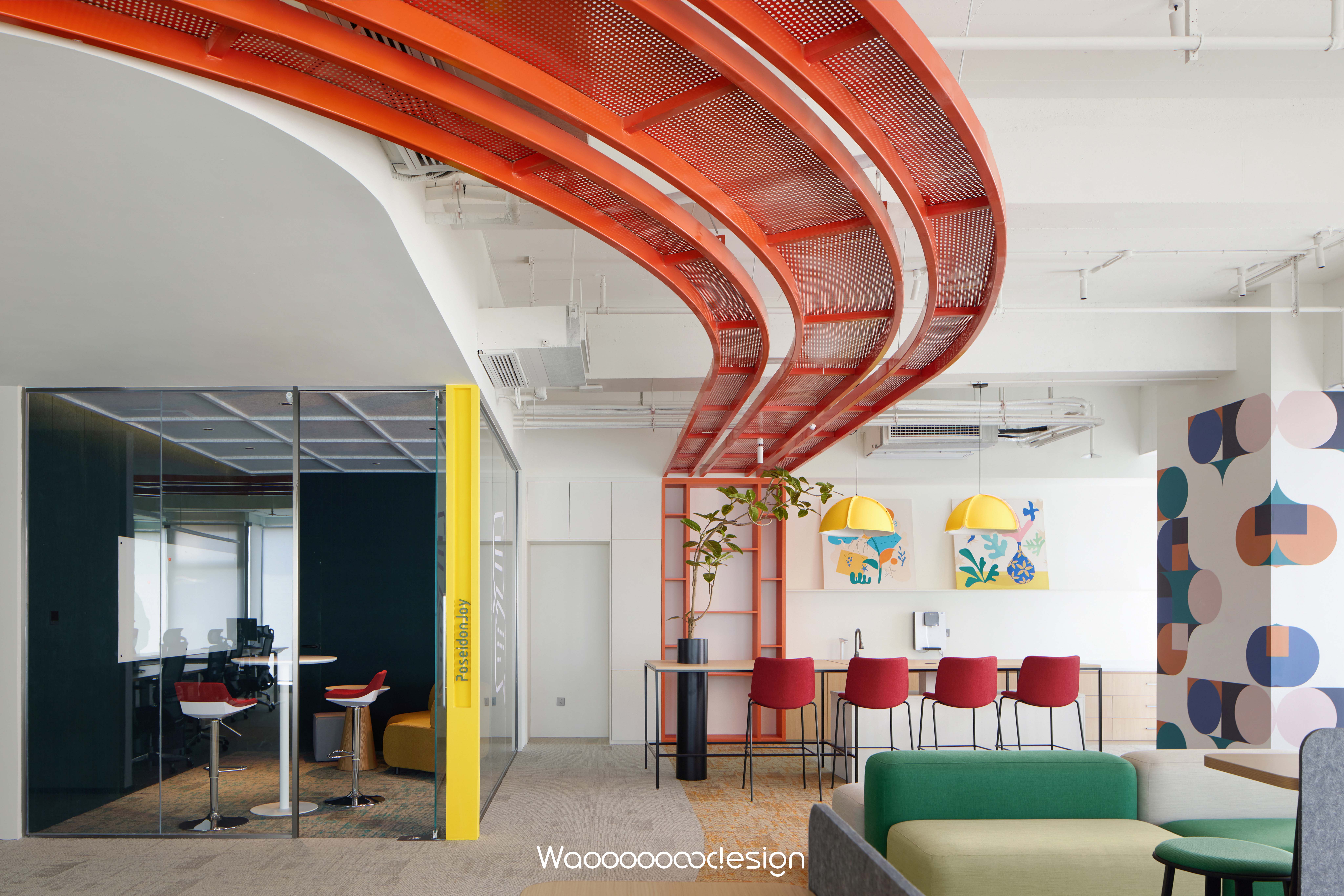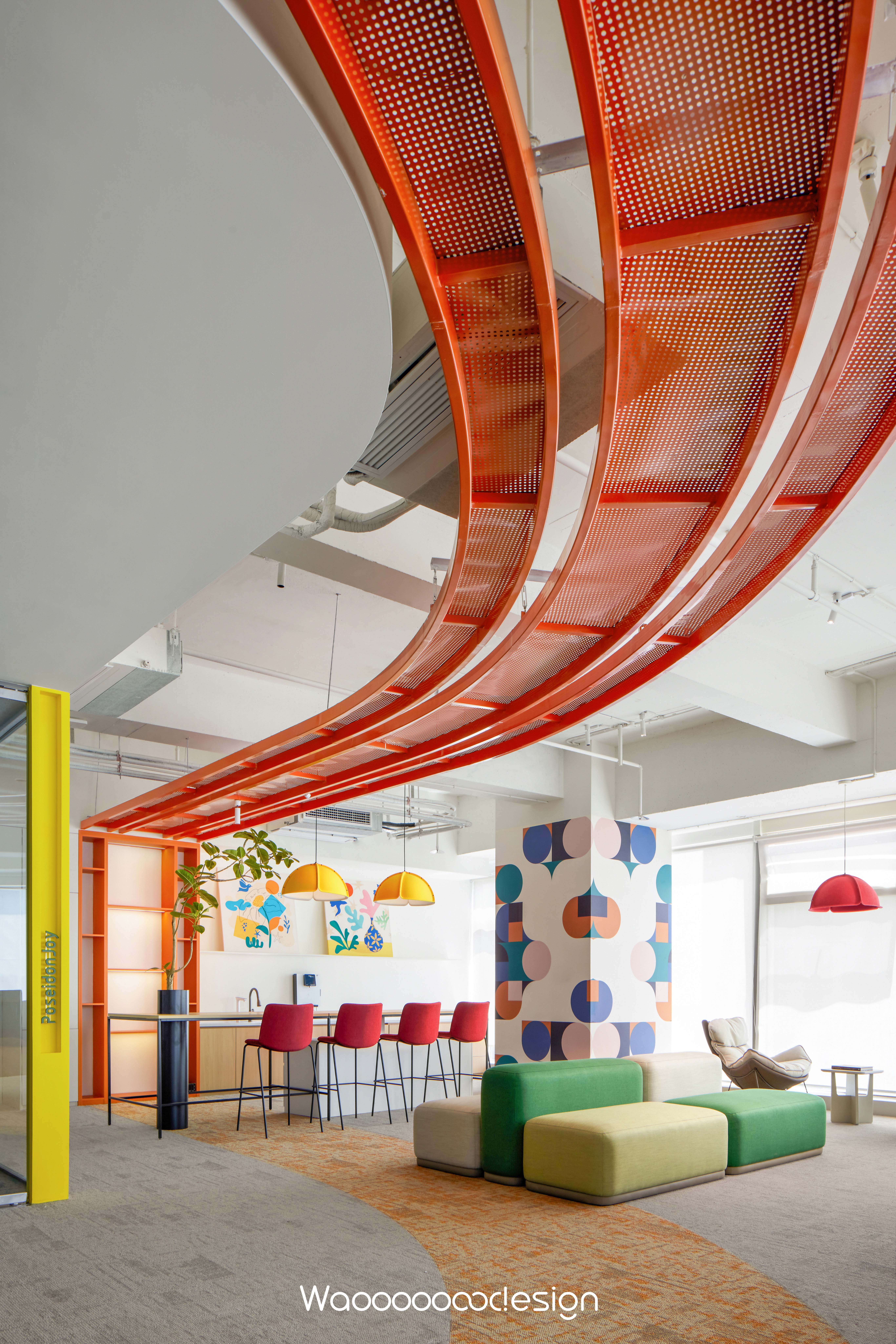 核心策略:打造中国游戏行业首个“多巴胺驱动型”办公空间,将色彩心理学与游戏开发需求深度融合,创造既是高效工作场域、又是社交媒体原生内容的生产基地。