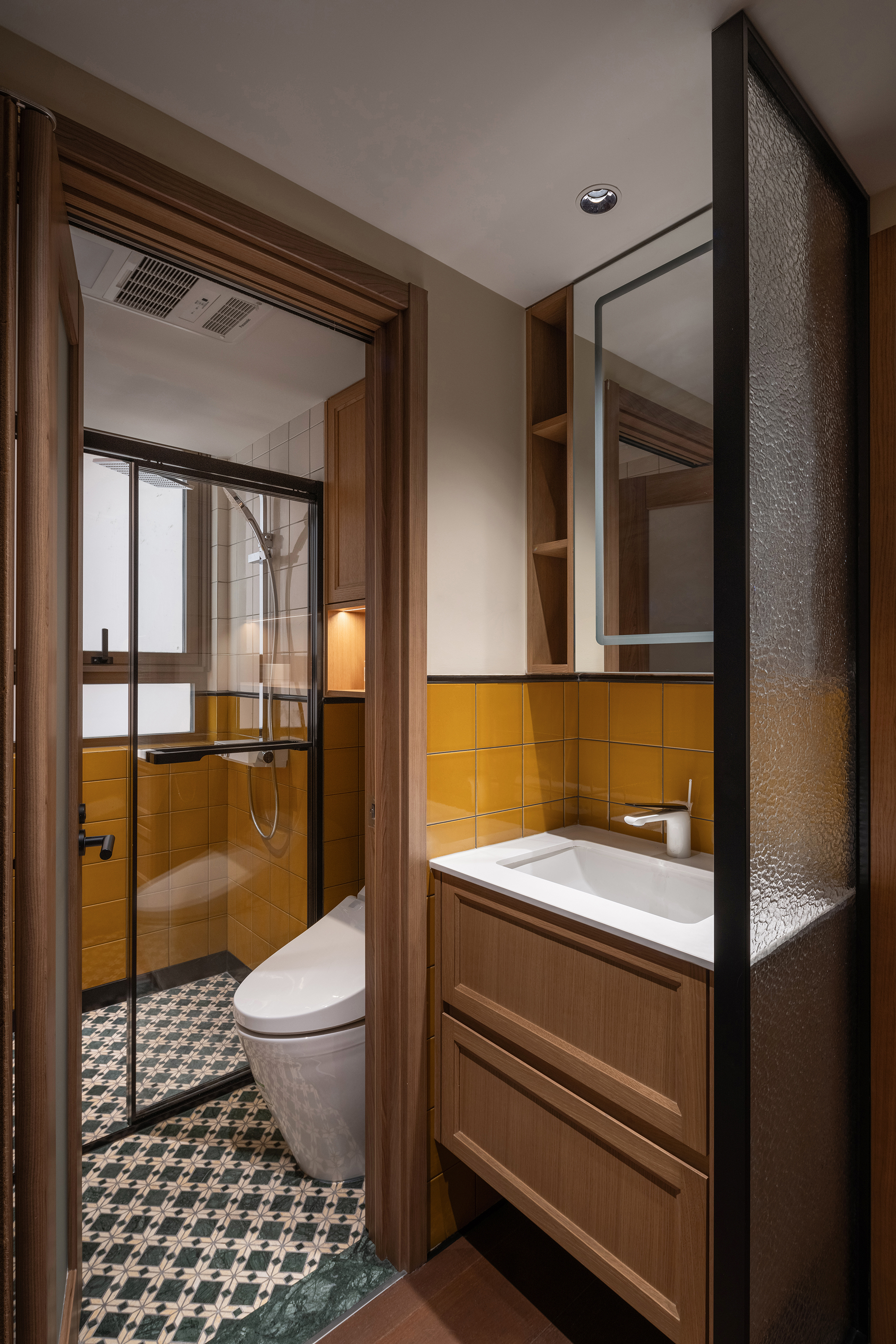 空间意境:运用意大利砖红色、绿色格子砖等色彩碰撞,营造出复古又活泼的氛围,把不同地域、不同风格的元素进行混搭,如异域风情的意大利砖红色调与中式氛围融合,热带雨林风格的书房搭配复古实木书桌,形成独特新颖的视觉效果和文化氛围。