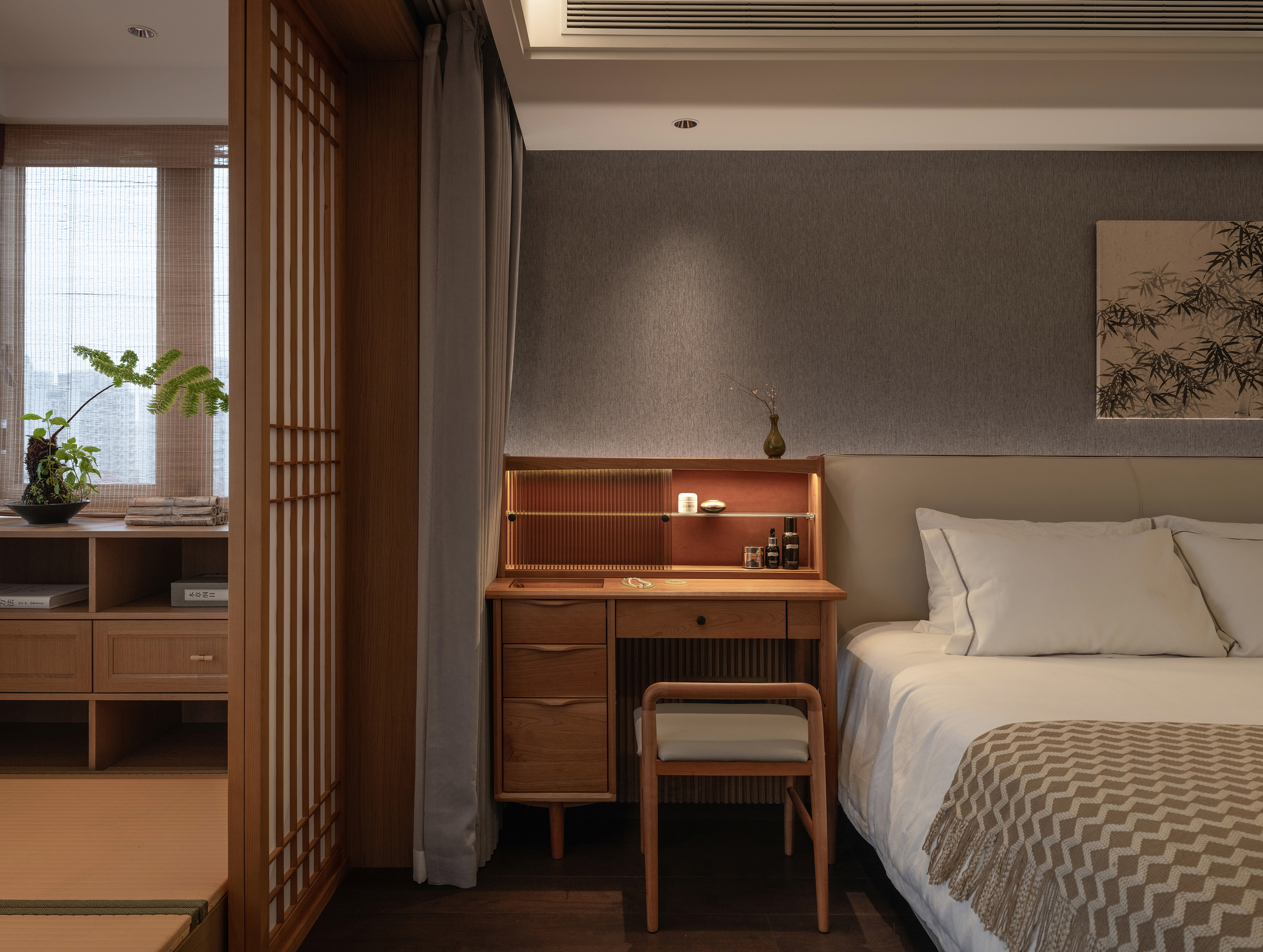 项目定位:将日式木质风格、夏威夷海洋热带风、复古墙纸元素、中式与日式结合的东方元素等多种风格巧妙融合,满足业主对不同风格的喜爱,打造独特且富有层次感的家居环境。