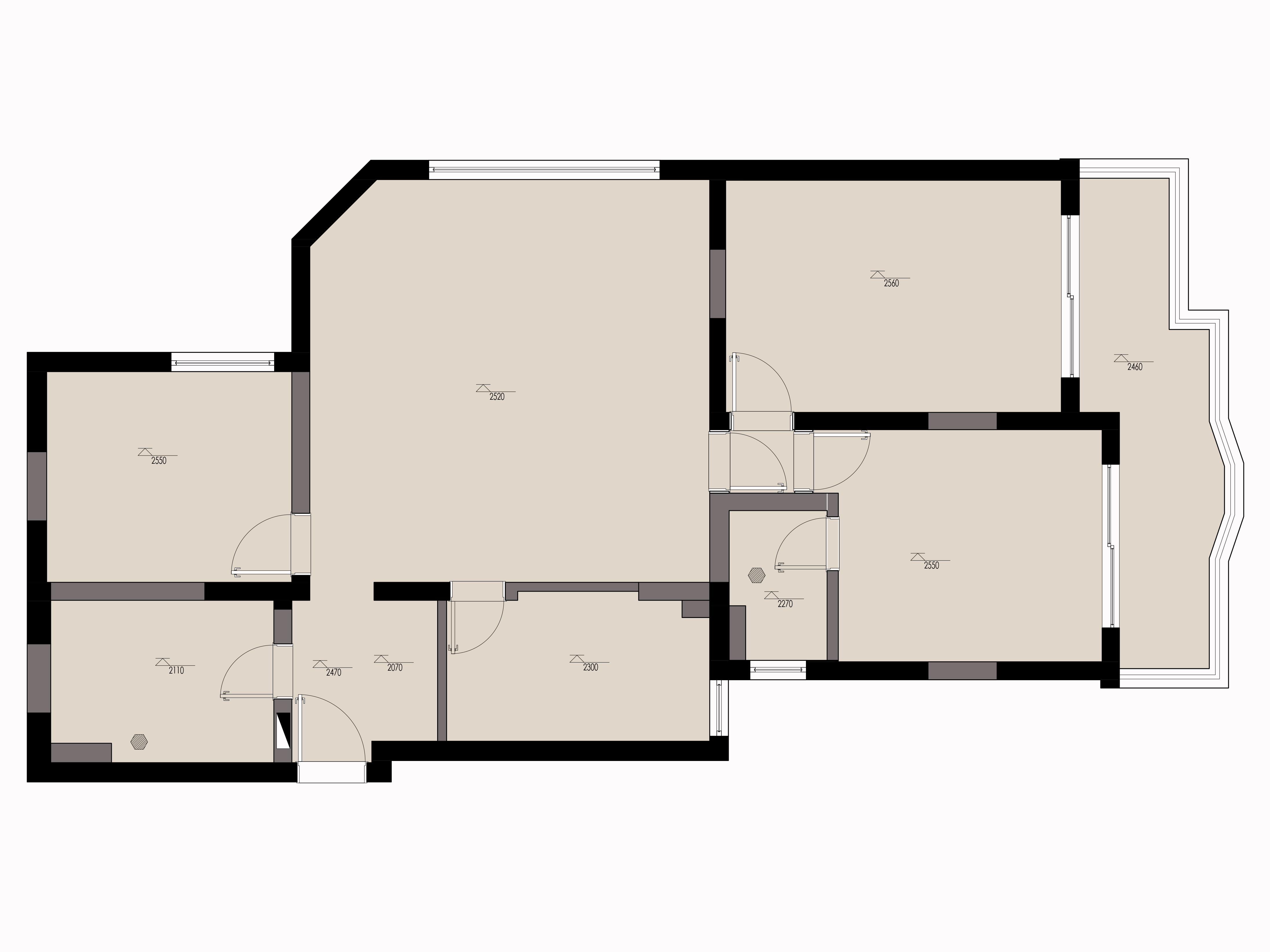 空间布局:公区与静区分隔:重新规划空间布局,将公区与静区分隔,提升私密性,南侧两个房间改为带书房的主卧套房,方便医生工作学习。