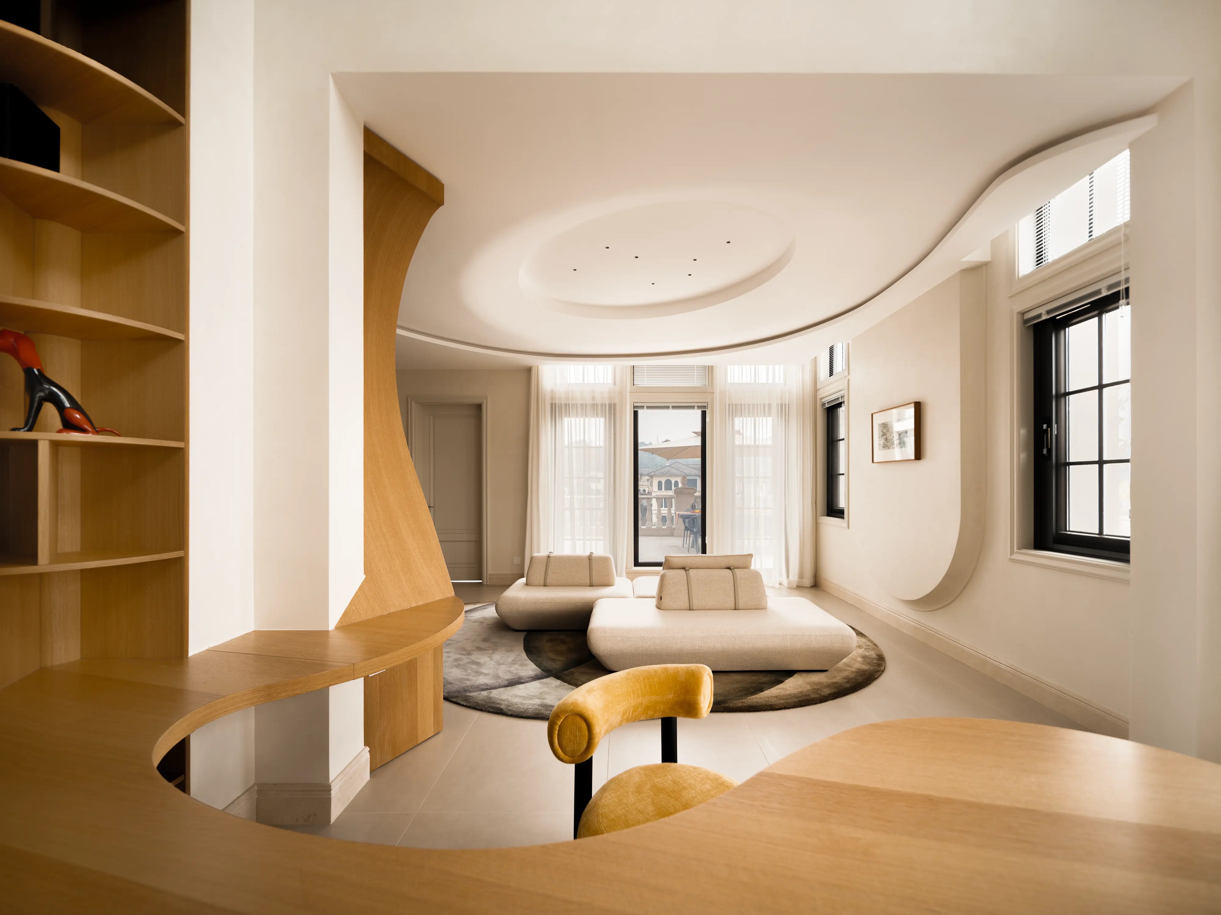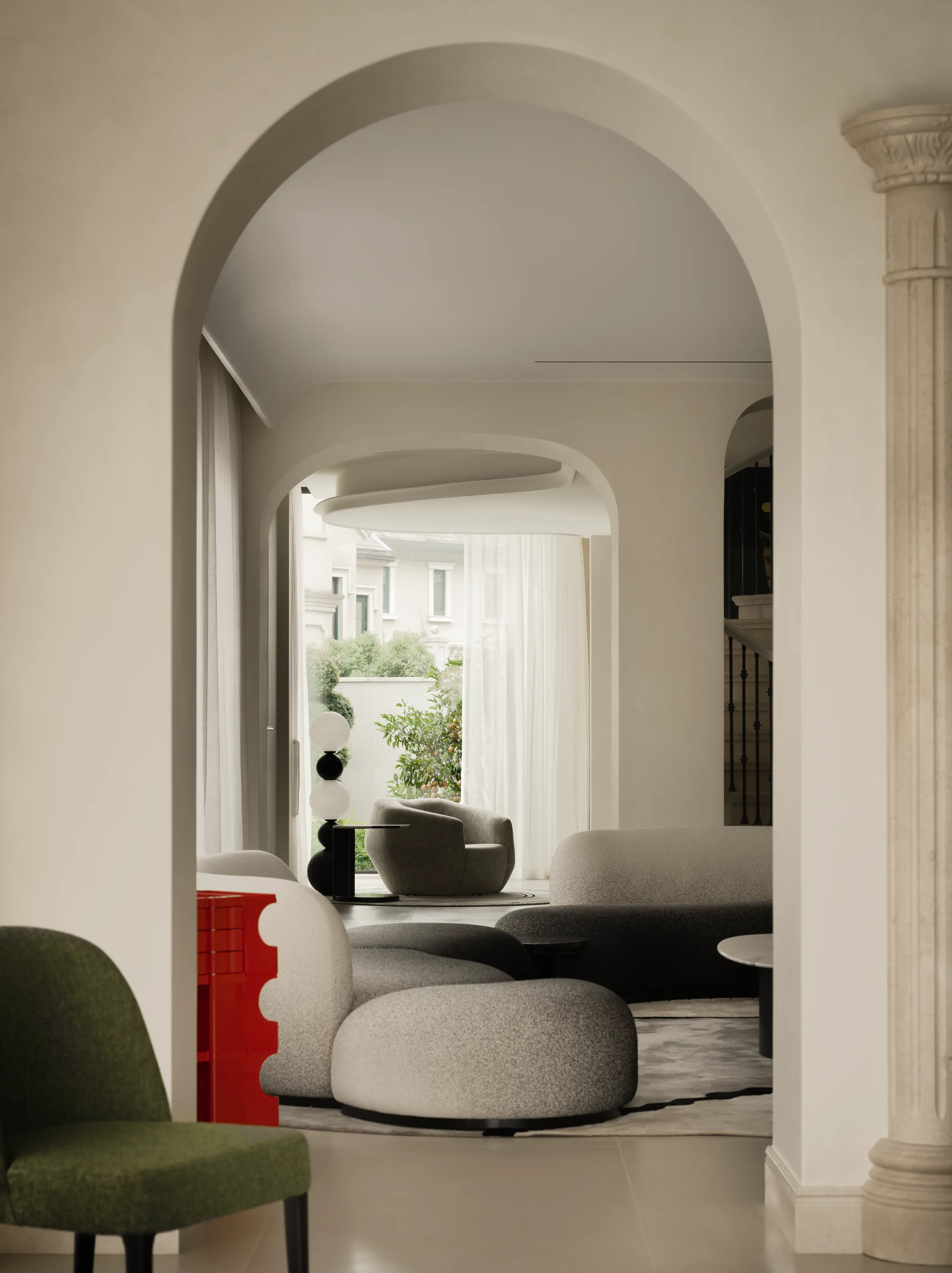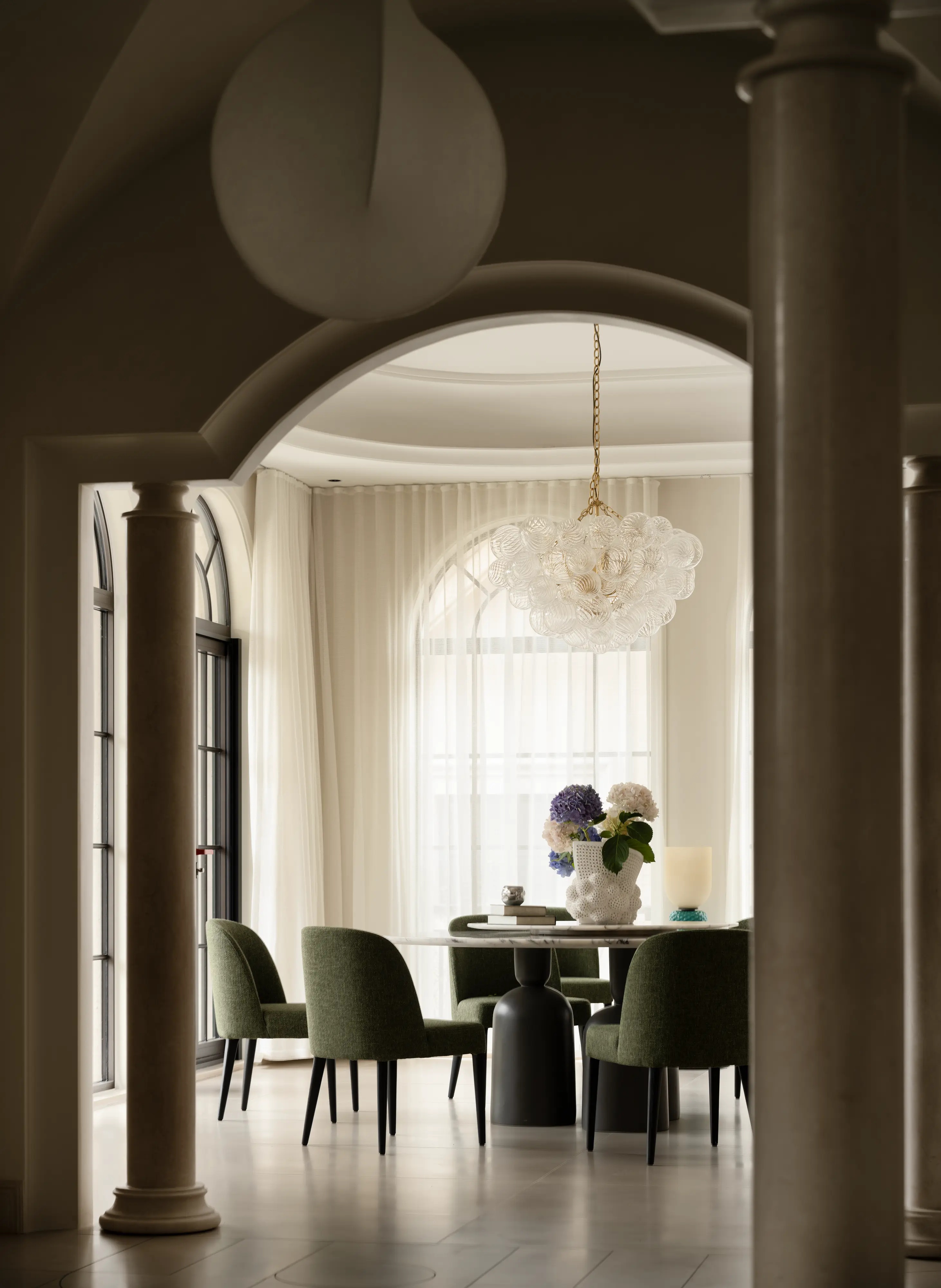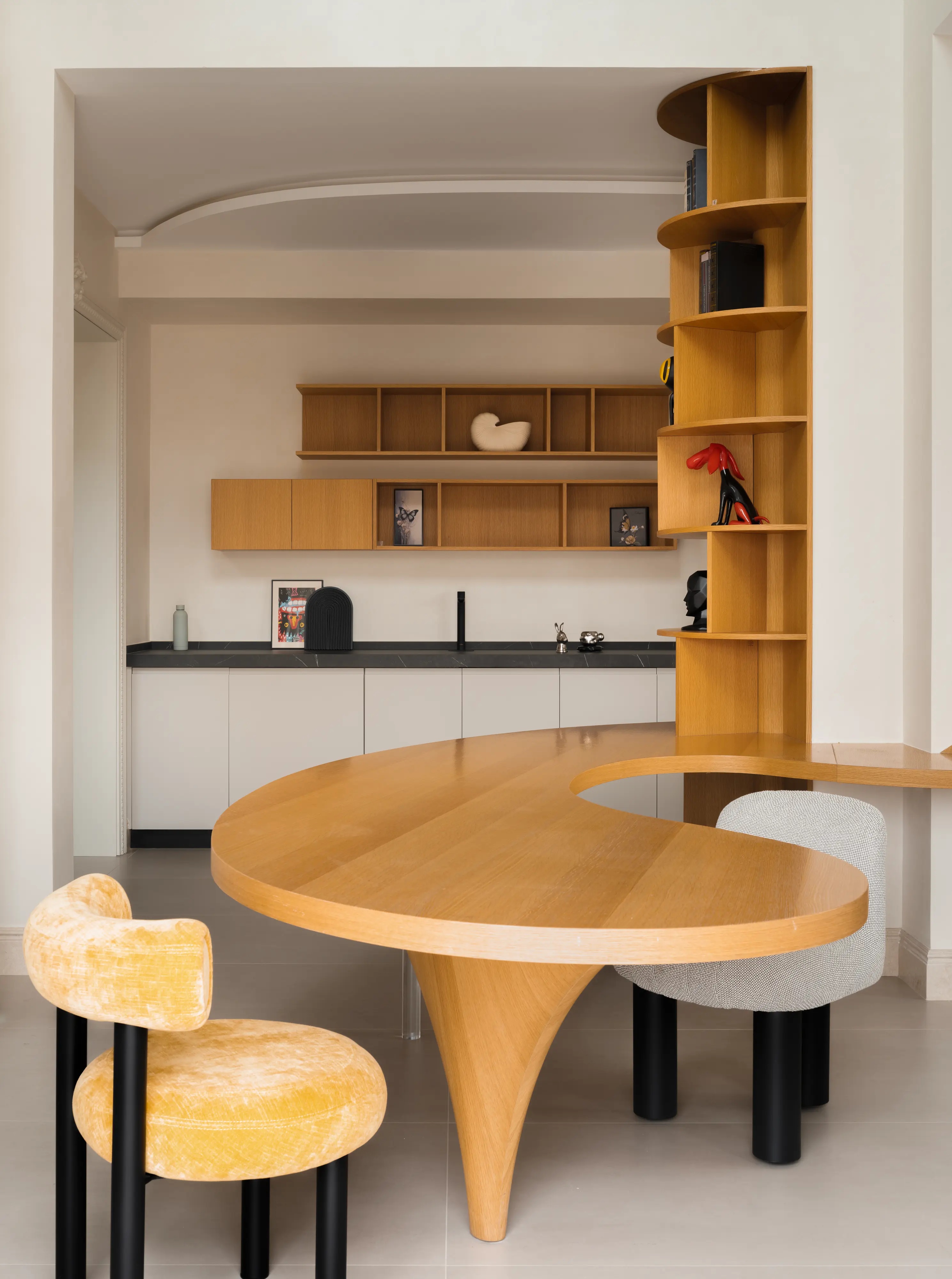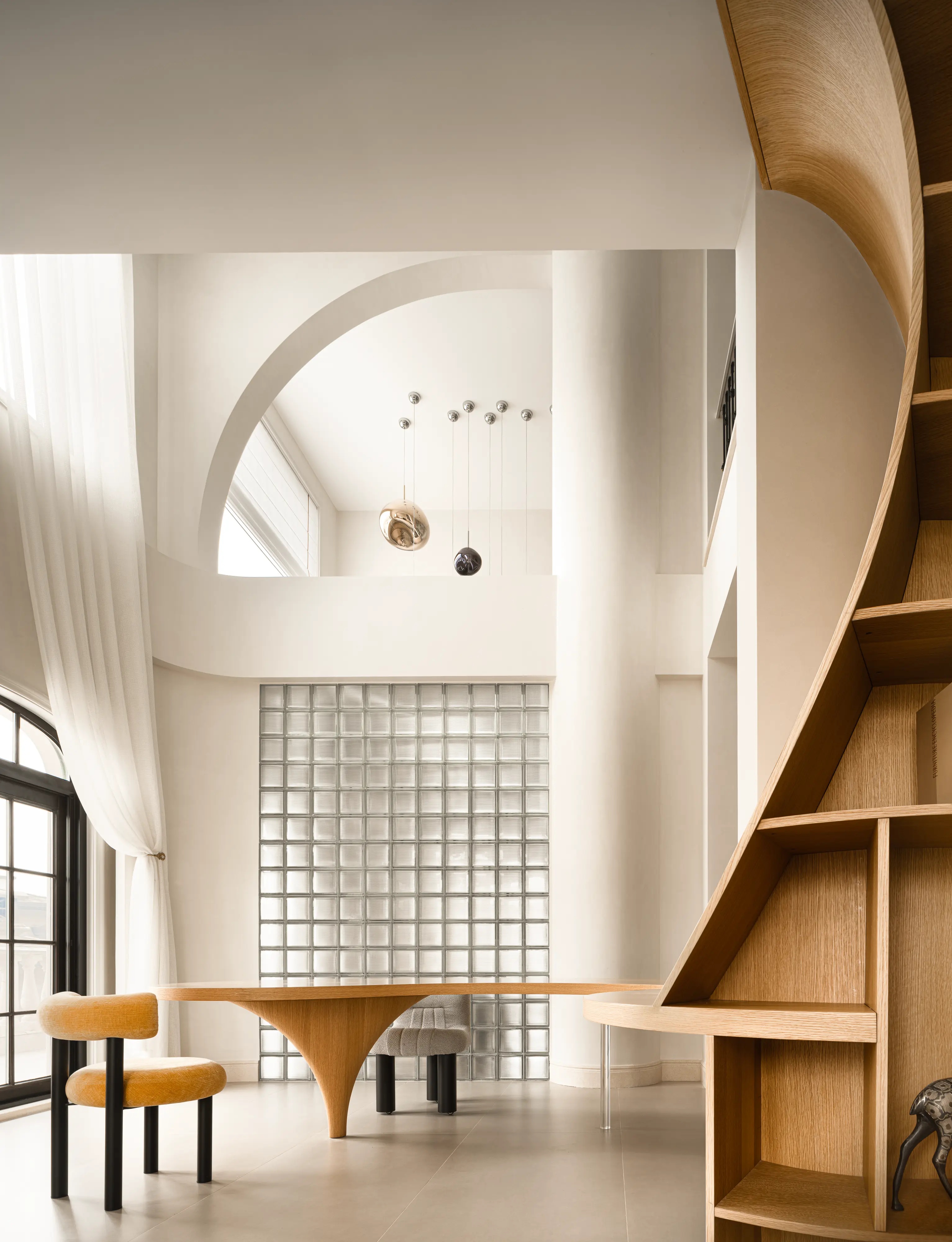 项目定位:从繁华都市中心的别墅搬离,高知夫妇希望给予孩子更纯粹、有效的成长陪伴。面对一家四口对空间的各自诉求,设计师在平衡个性与促进家人交流中,决定打造更多场景,给予家人间更多交流。