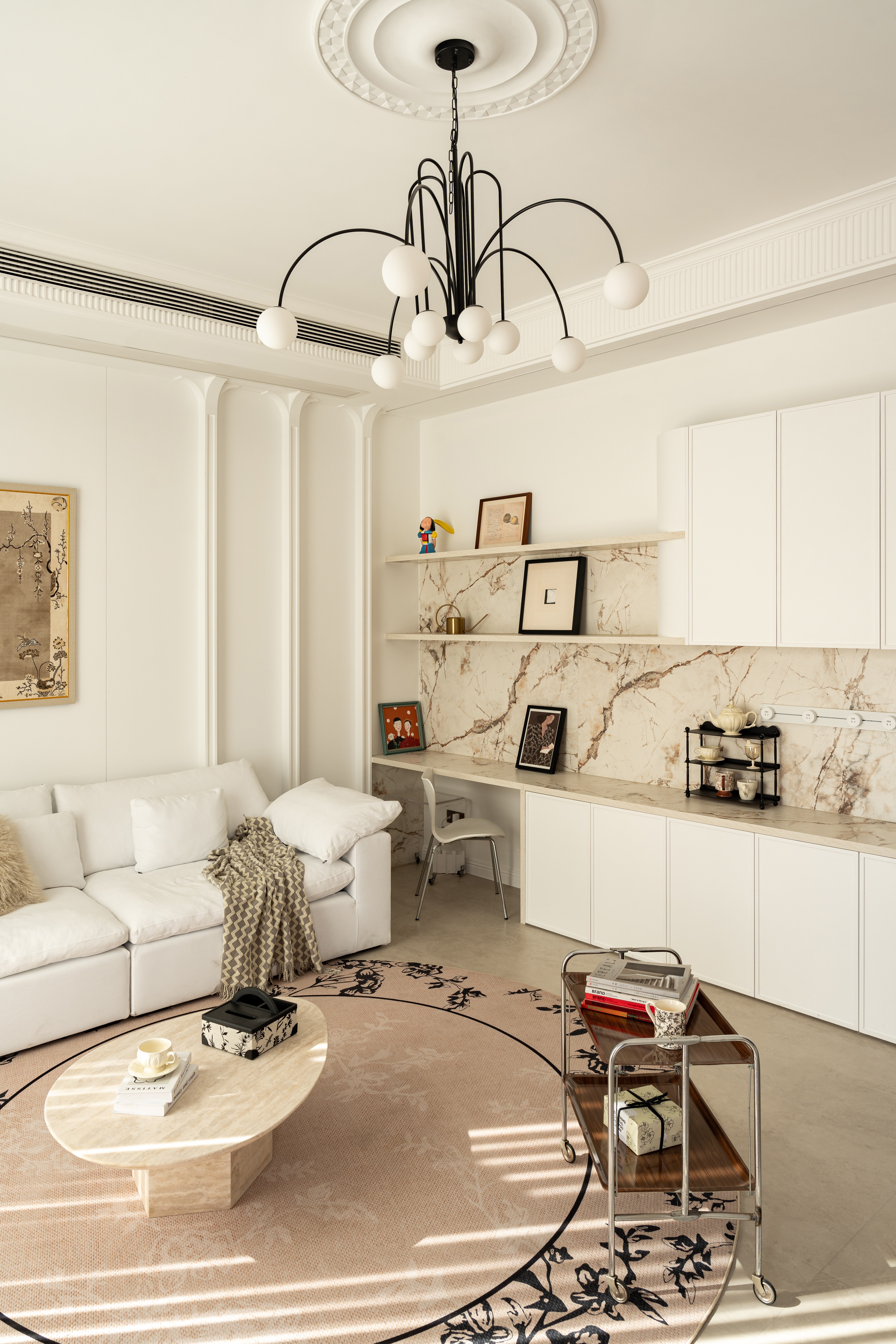 生活的底色是美与艺术交织, 是在琐碎日常中找寻诗意的栖息。 把月光搅拌进混凝土, 让风穿过科林斯柱的卷涡, 把甜腻揉碎成星尘, 让石膏线在开阔大气的外墙上,生长成理性枝丫, 这是场优雅的叛逃—— 所有浪漫都在精确至0.1mm的收口处重生。