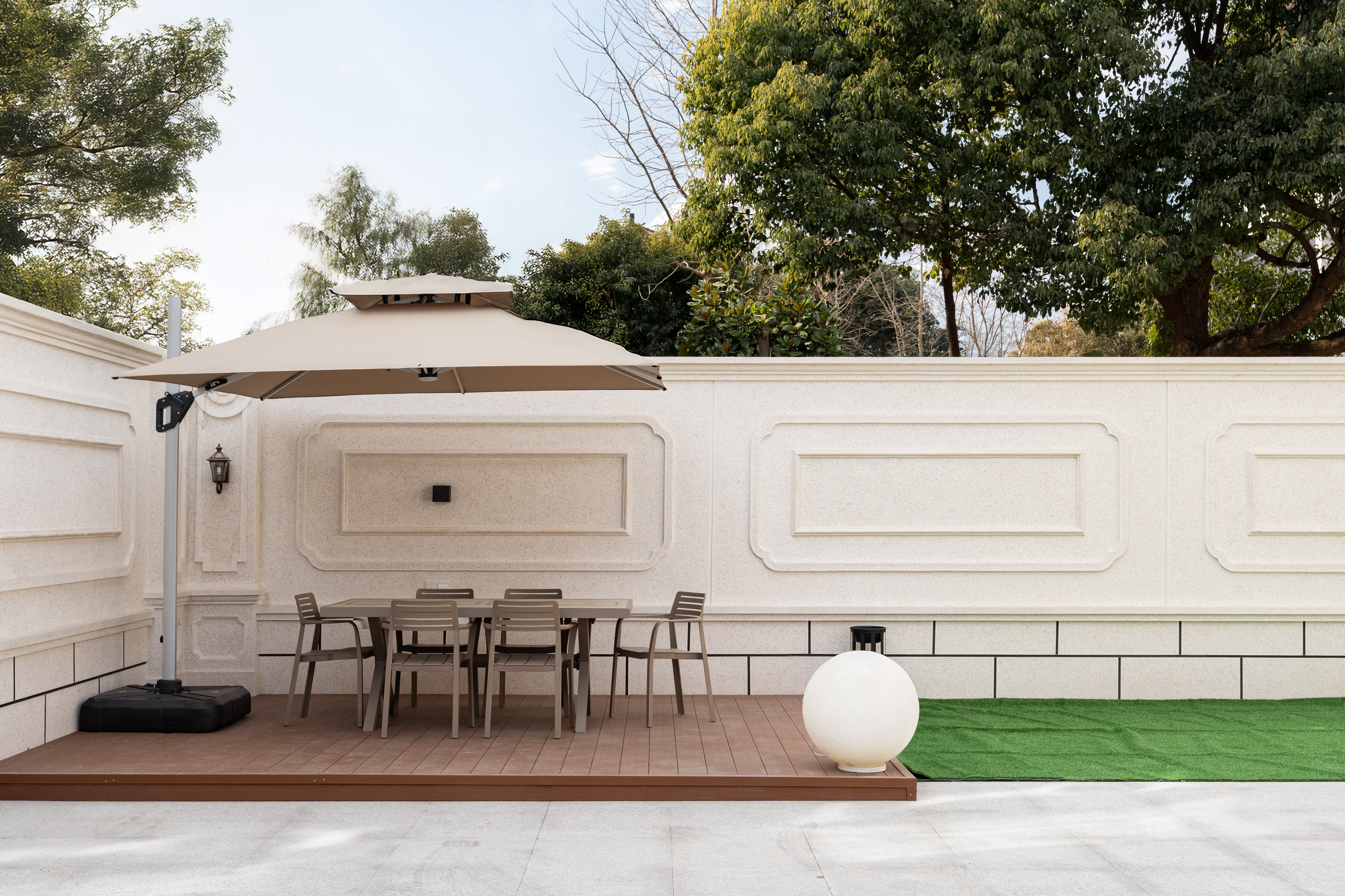 空间意境:借光影、弧度造景,让风与阳光互动,营造浪漫私密的艺术生活场景。