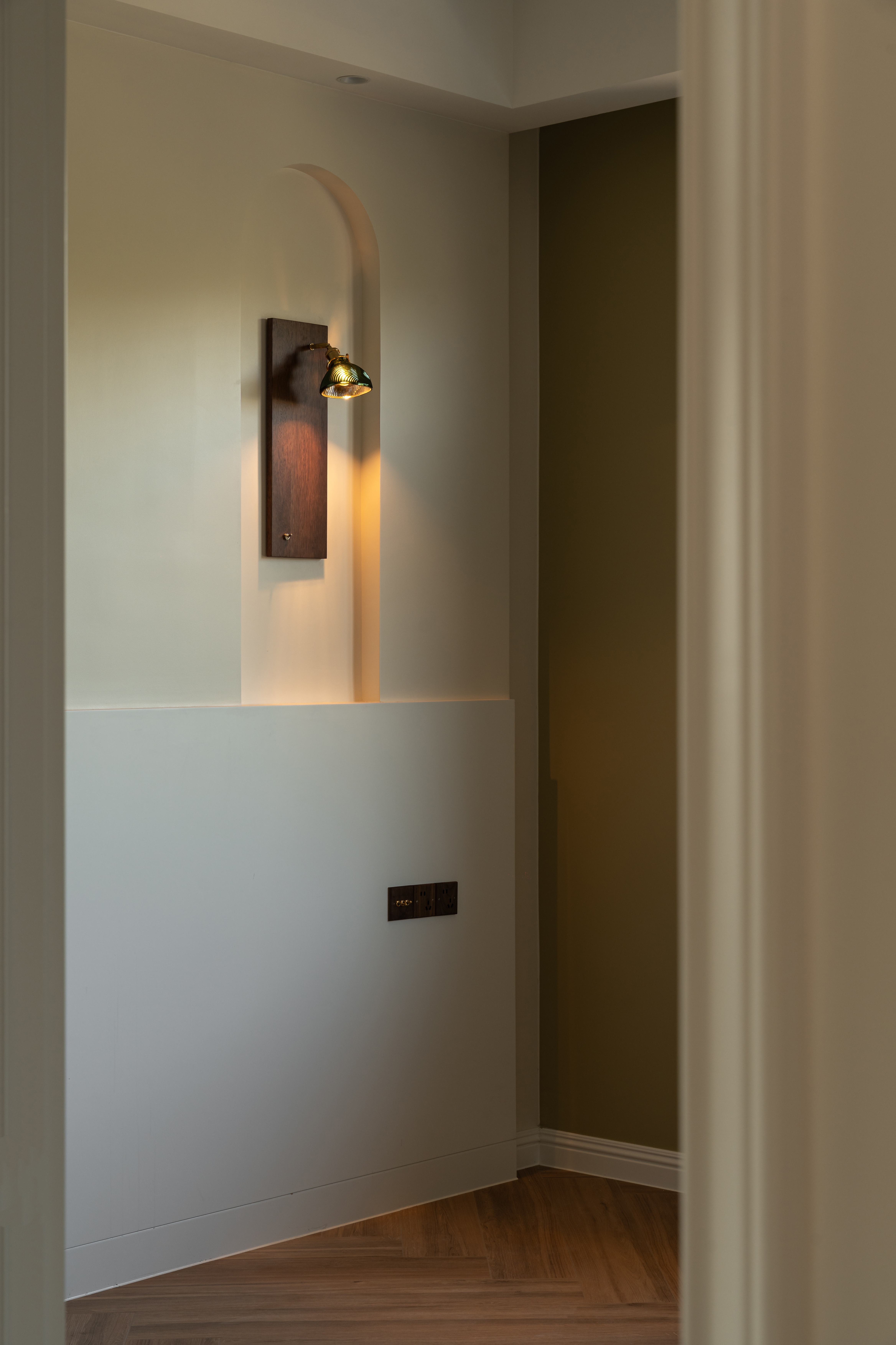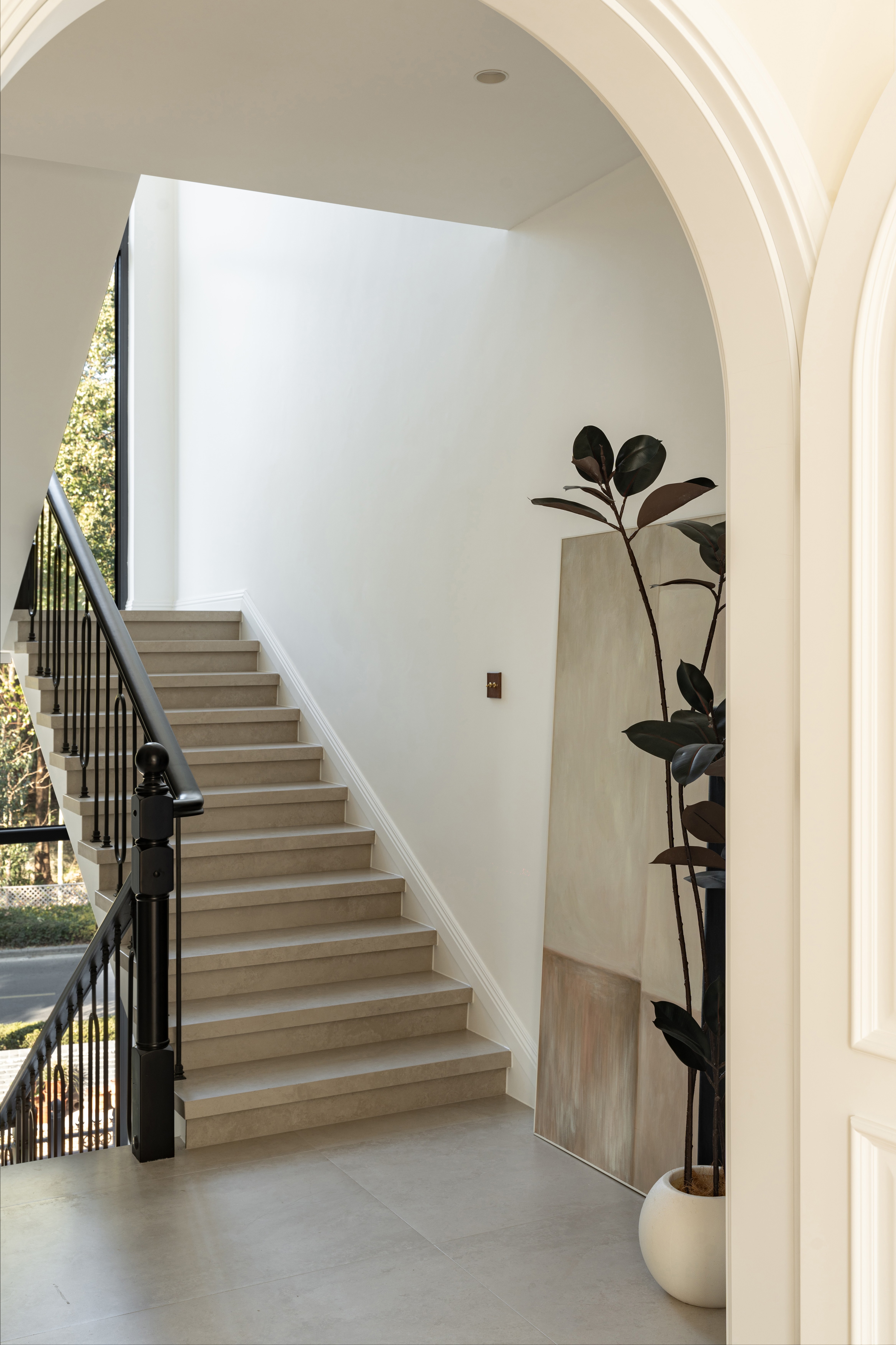 楼梯是波澜不惊的间奏, 在流转的时光里, 把11阶直角转折化作光的折纸游戏。 穿过墨色栏杆的光驳斑影, 忽现影影绰绰的身姿摇曳。 让晨露凝结成朝晖的皇冠, 把旧书页的肌理拓印在艺术漆墙面, 让可旋转黄铜壁灯在午夜画出圆锥曲线, 把莫奈睡莲揉碎进波浪形天鹅绒, 让隐藏踪迹的天际晕染出7°暖光坡度, 这是场私密的约会—— 所有柔软都在30度落日里着陆。