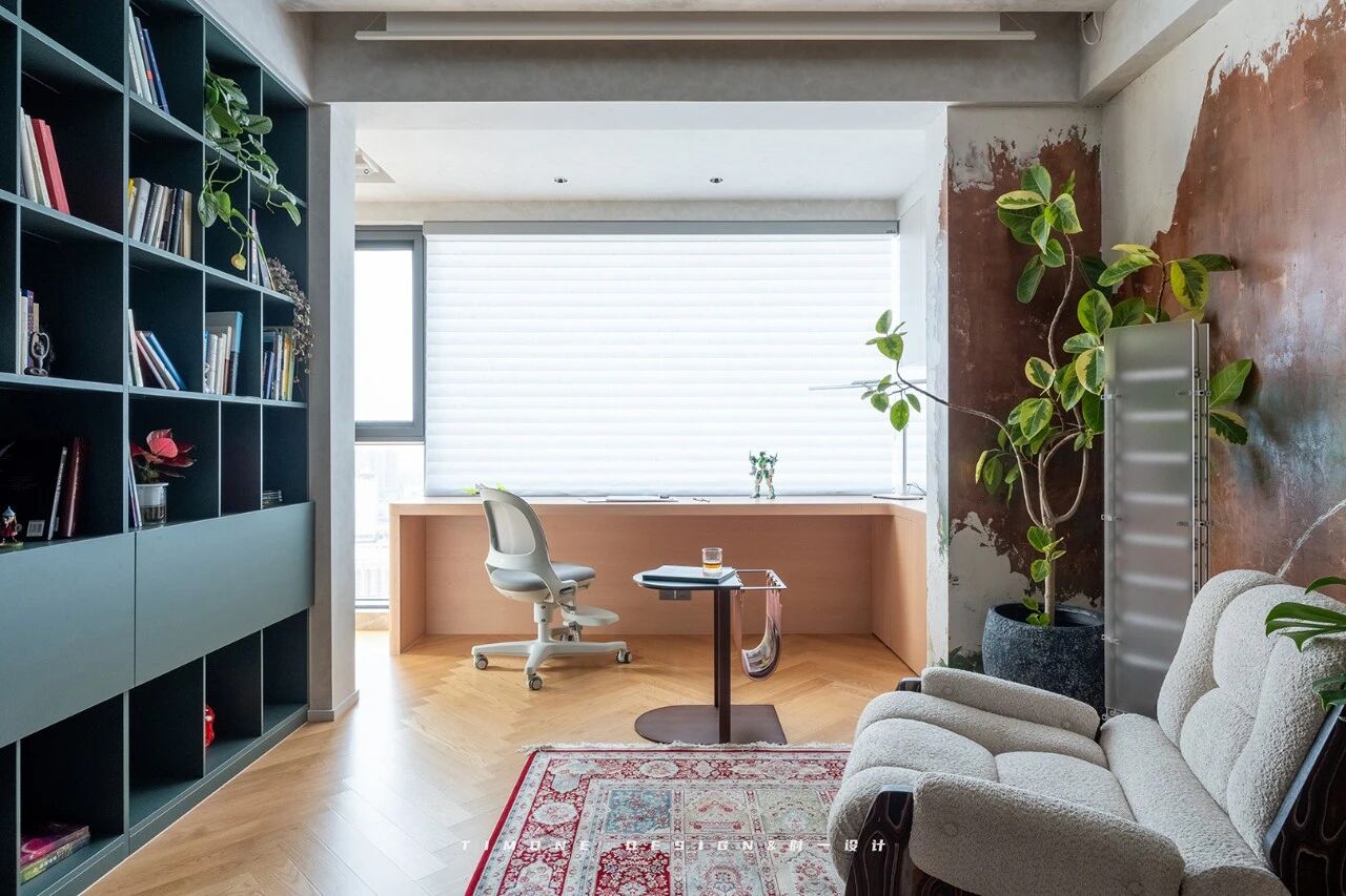 空间意境:为了照顾小朋友的学业,学区房成为首选,装修房子也提上了日程。他们想要家里有学习氛围,也盼望着自己也能住得自在,能尽可能的减少空间的隔断,归家会自然而然的成为一种享受。