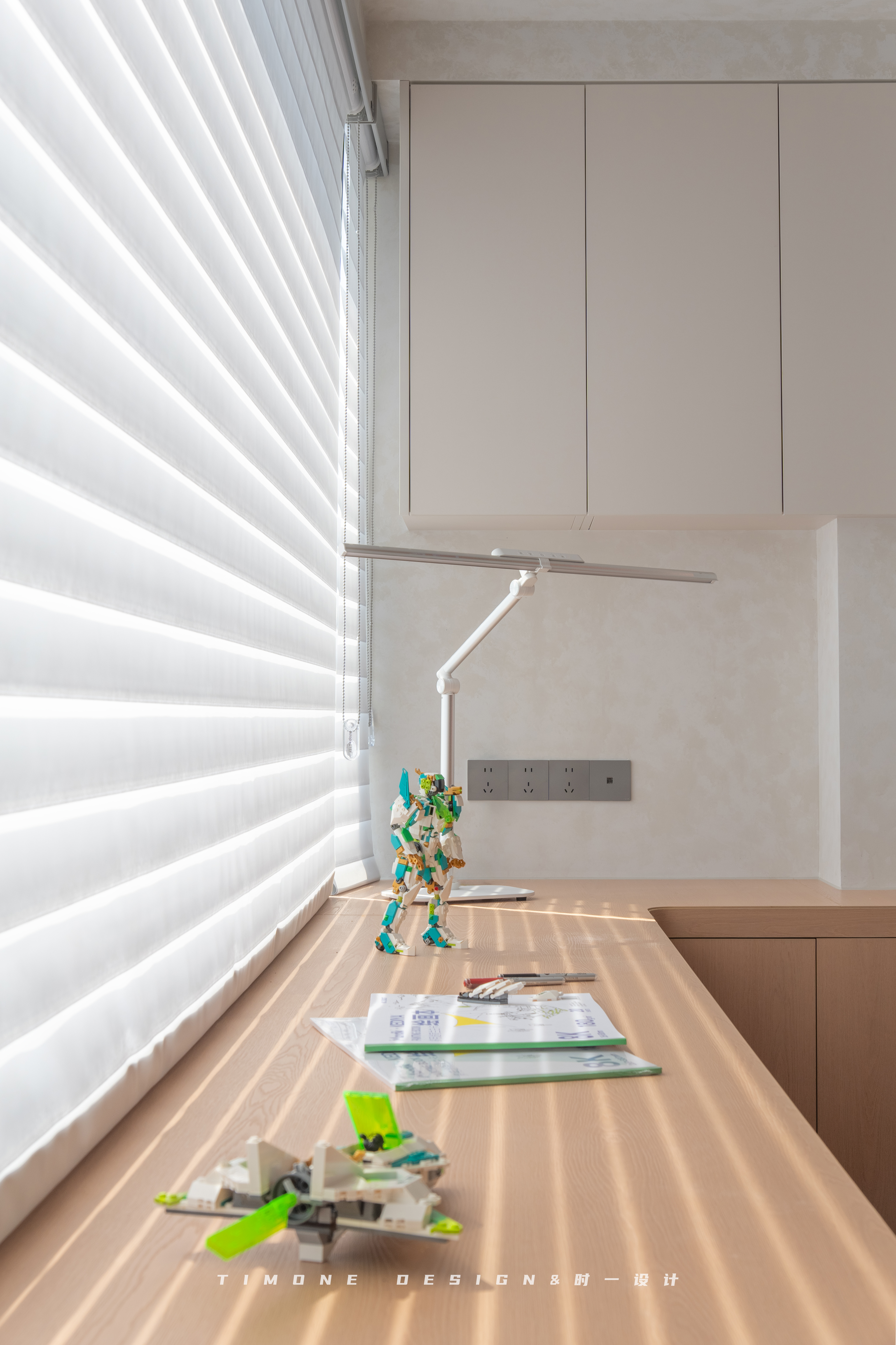 空间布局:原户型是三室户,整体诉求以舒适性和学习氛围为主。这个家大胆布局,打通次卧改造开放式书房,洄游设计串联走廊、阳台、客厅、餐厅....多样化的生活动线,可以热闹,更容易安静....