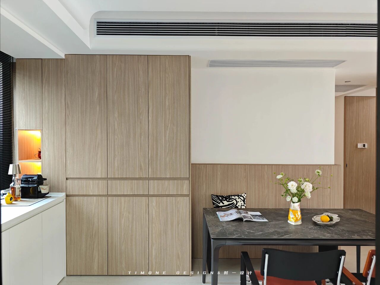 空间意境:本案是一对夫妻居住,他们需要的不是一座房子,而是一个和家人舒适生活、激发创造力的家,比如做饭、写作.... 让房子不在是一个个房间的组合,而是能成为抚慰压力的居所。当隔墙被打开,空间在流动中生长出新的可能。家人之间的视线与声音得以自由穿梭,陪伴变得自然而然。少,是深思熟虑后的选择,藏,是为了更自在的露,让注意力从"拥有什么"回归到"体验什么"