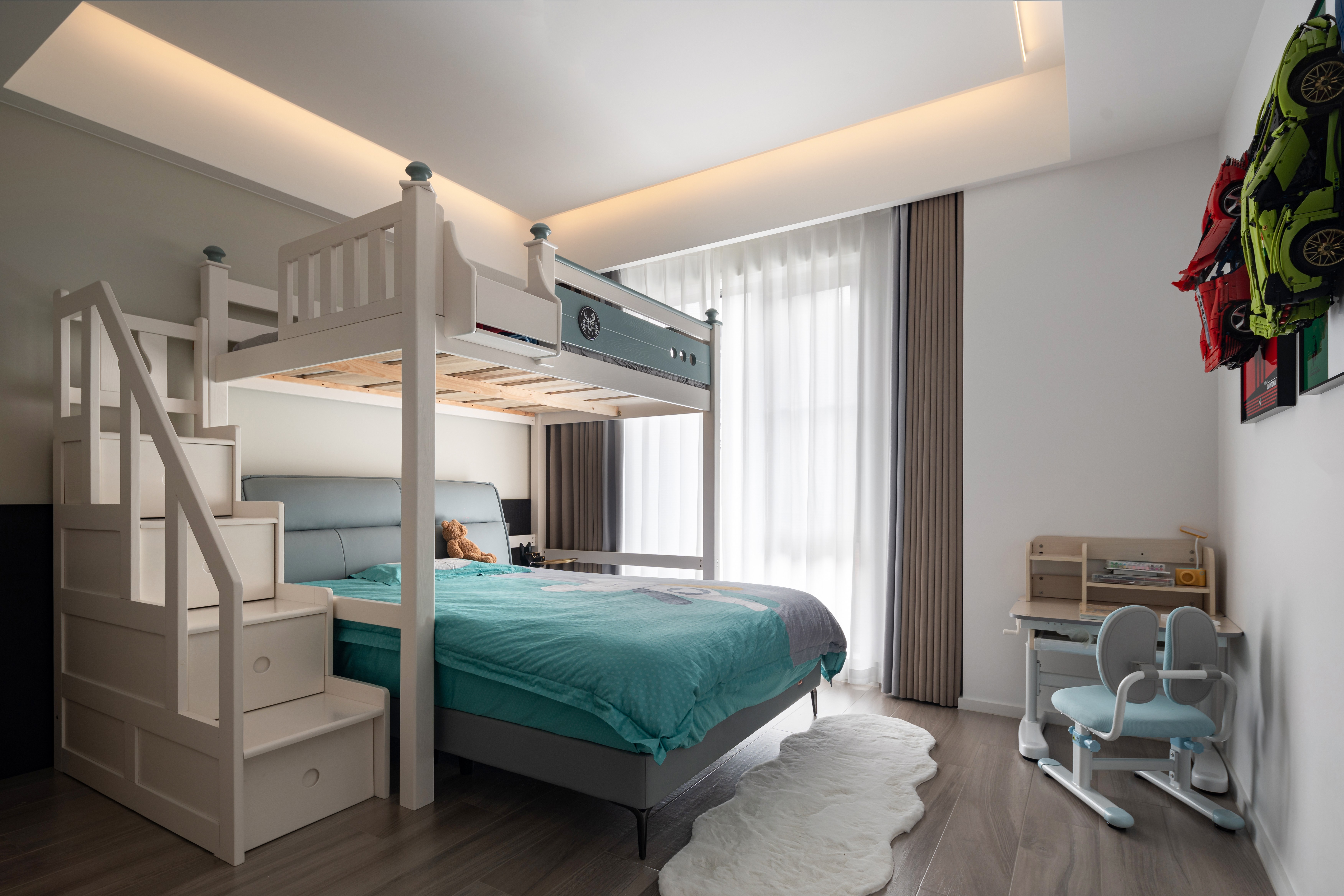 空间布局:台阶递进引动线,厨餐区聚温情,预留通透空间让光线与温度共生