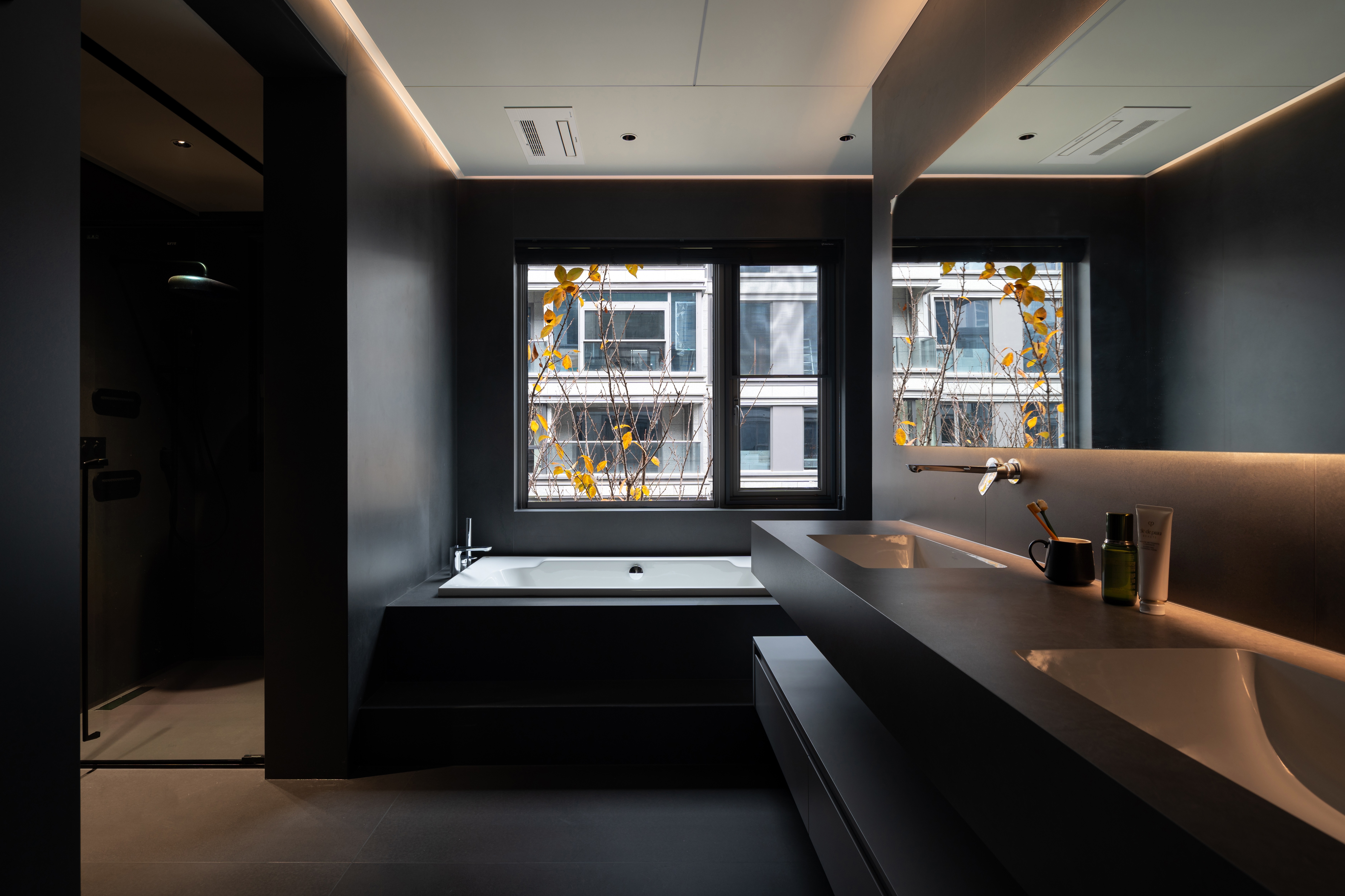 空间意境:借光影、庭院造景,黑白碰撞延展情绪,勾勒雅静高级的人居氛围