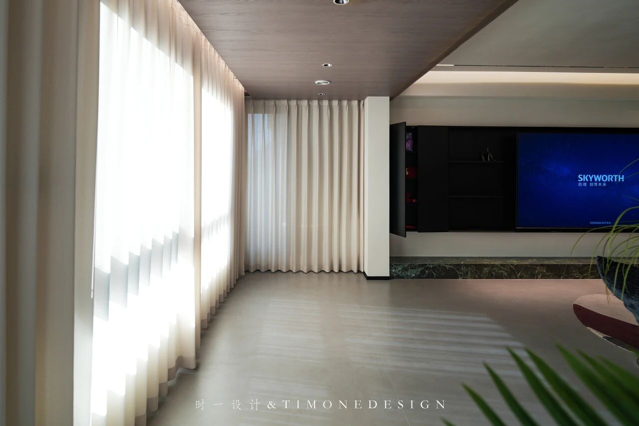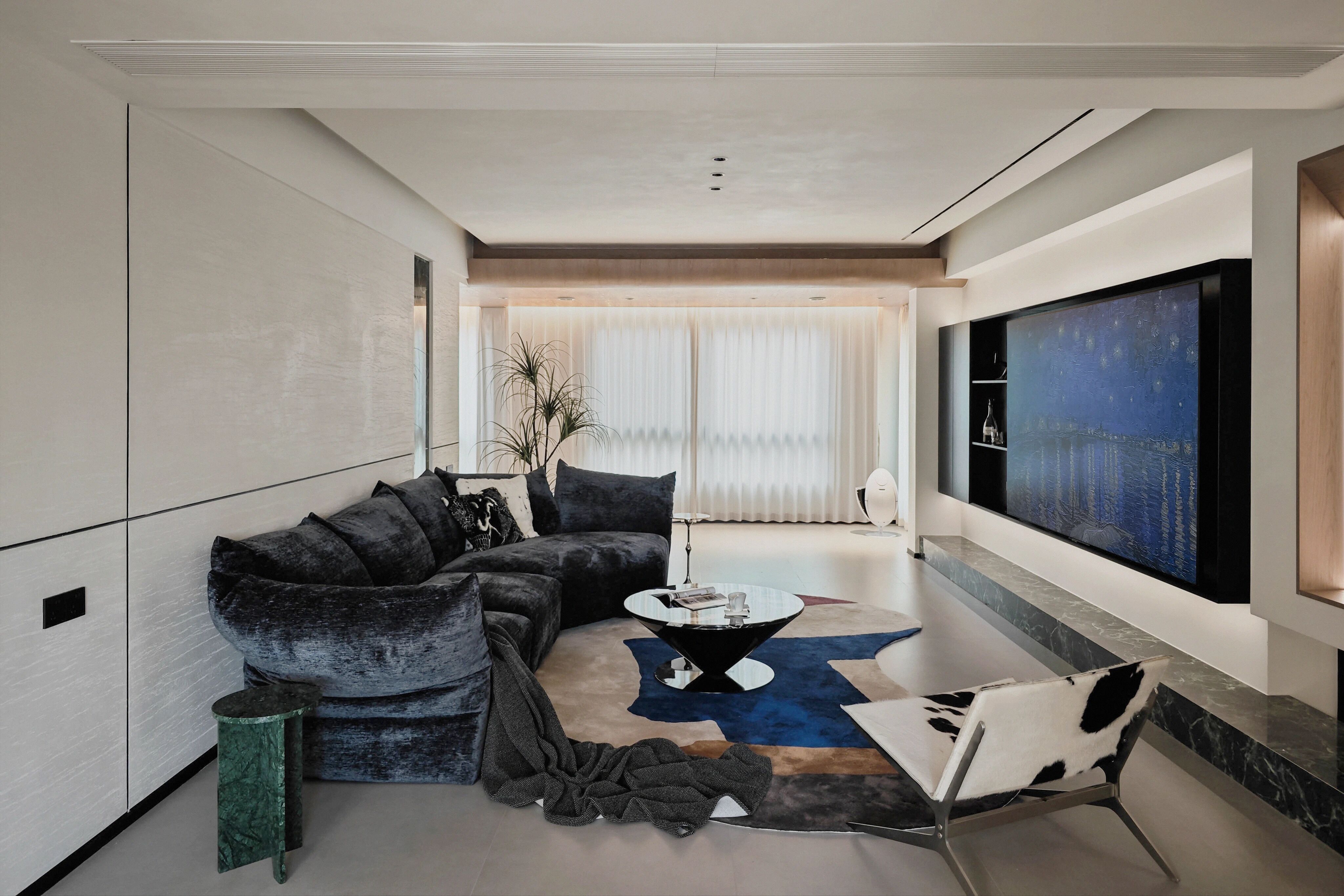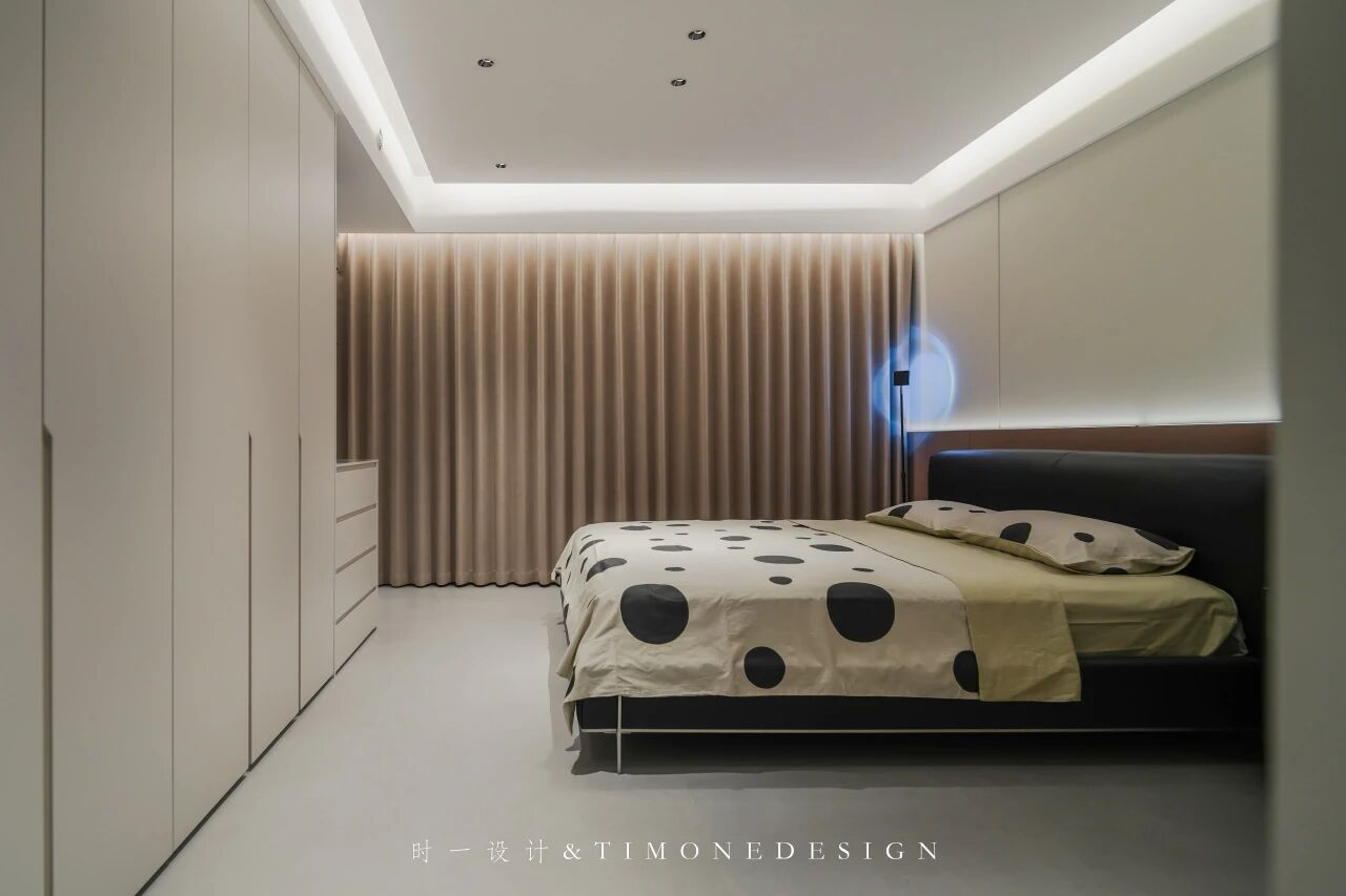 设计选材:整体选材是极简,大面积的浅色艺术涂料打底,穿插实木、石材、布艺...