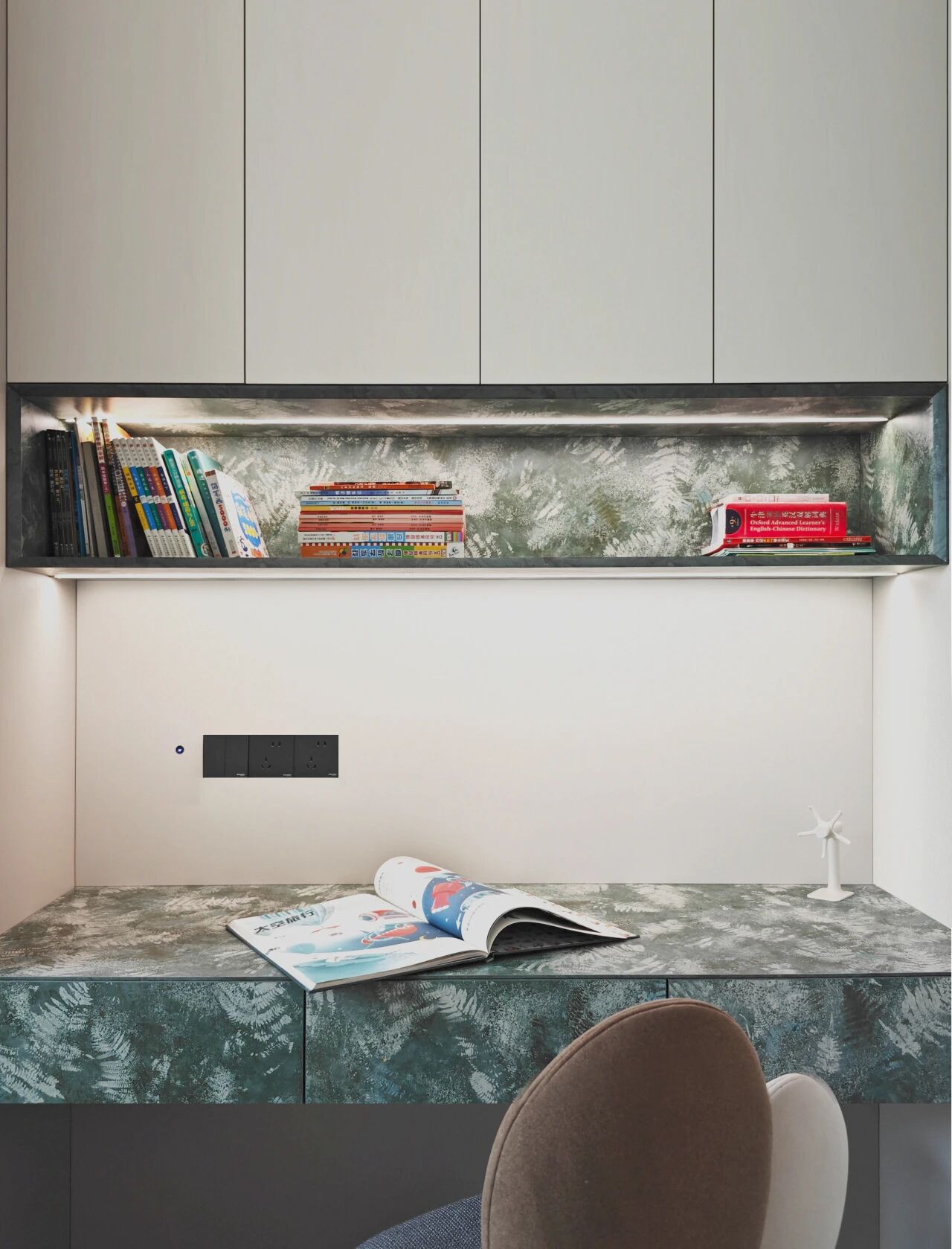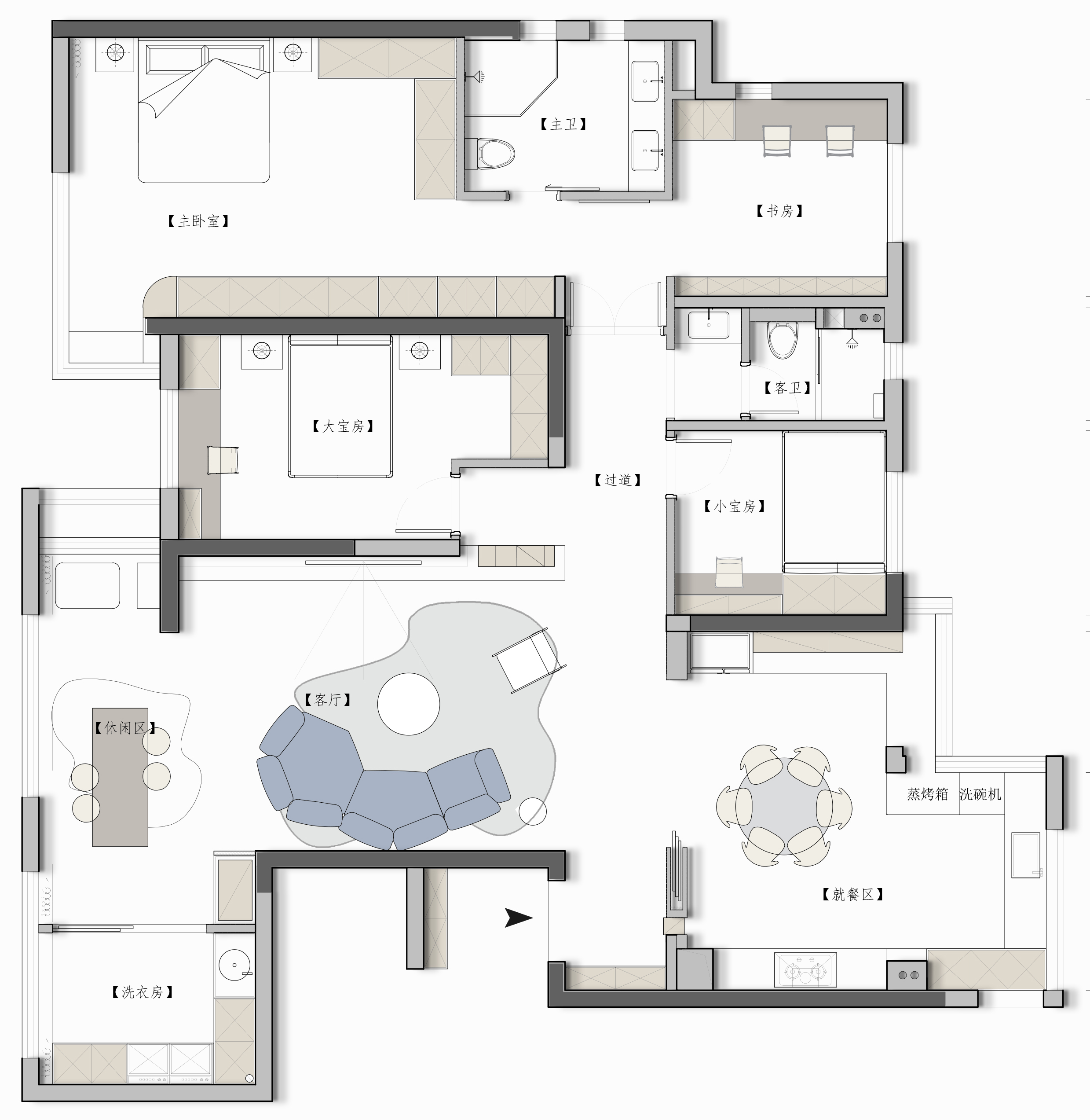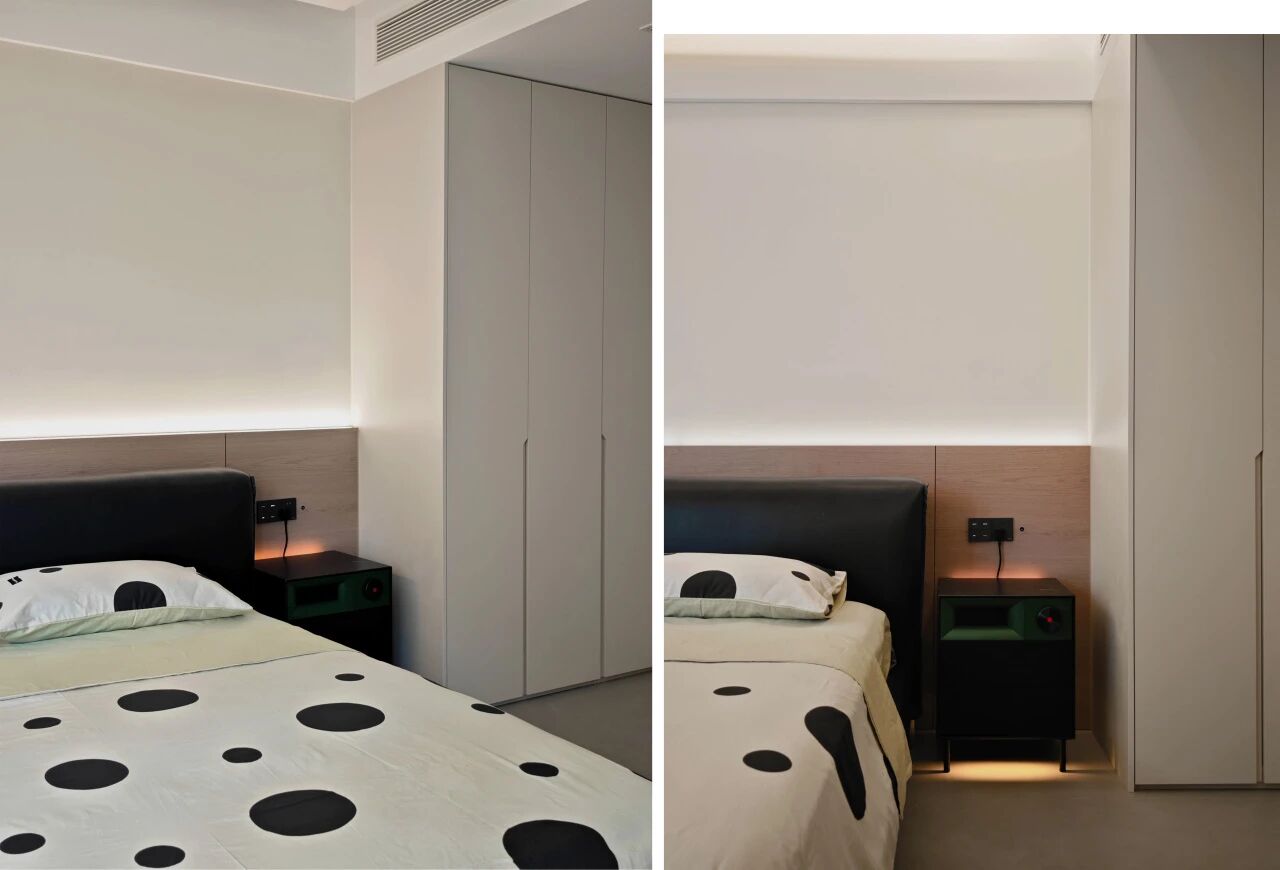 设计选材:整体选材是极简,大面积的浅色艺术涂料打底,穿插实木、石材、布艺...