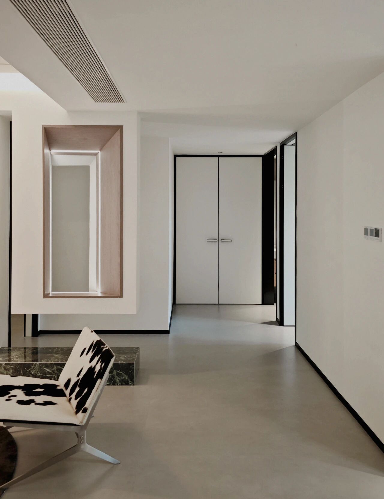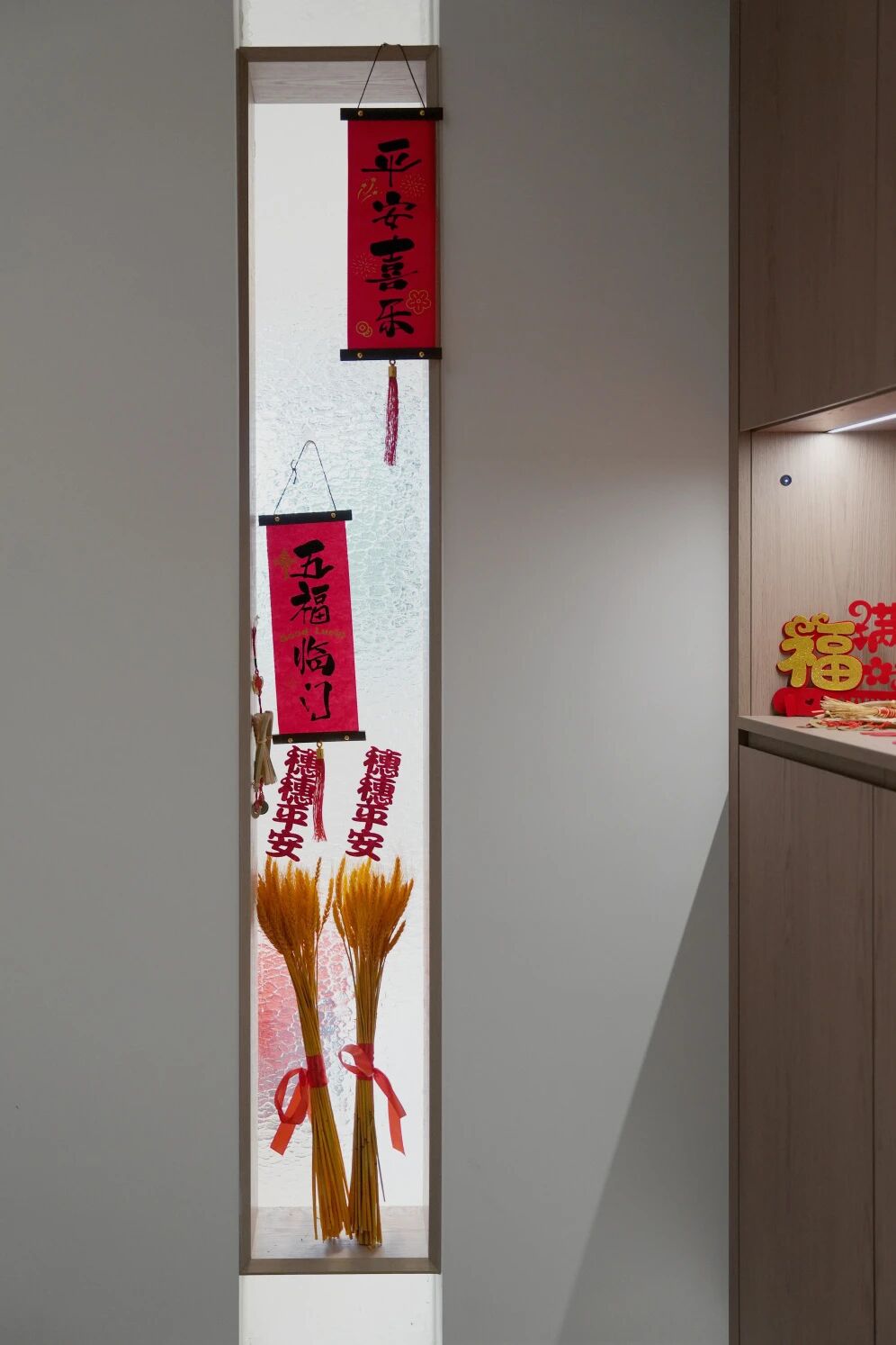 空间布局:优化动线:造后增加透景,视觉延伸避免一眼望穿;增加收纳:悬空鞋柜+墙面挂钩,满足日常出入收纳需求。