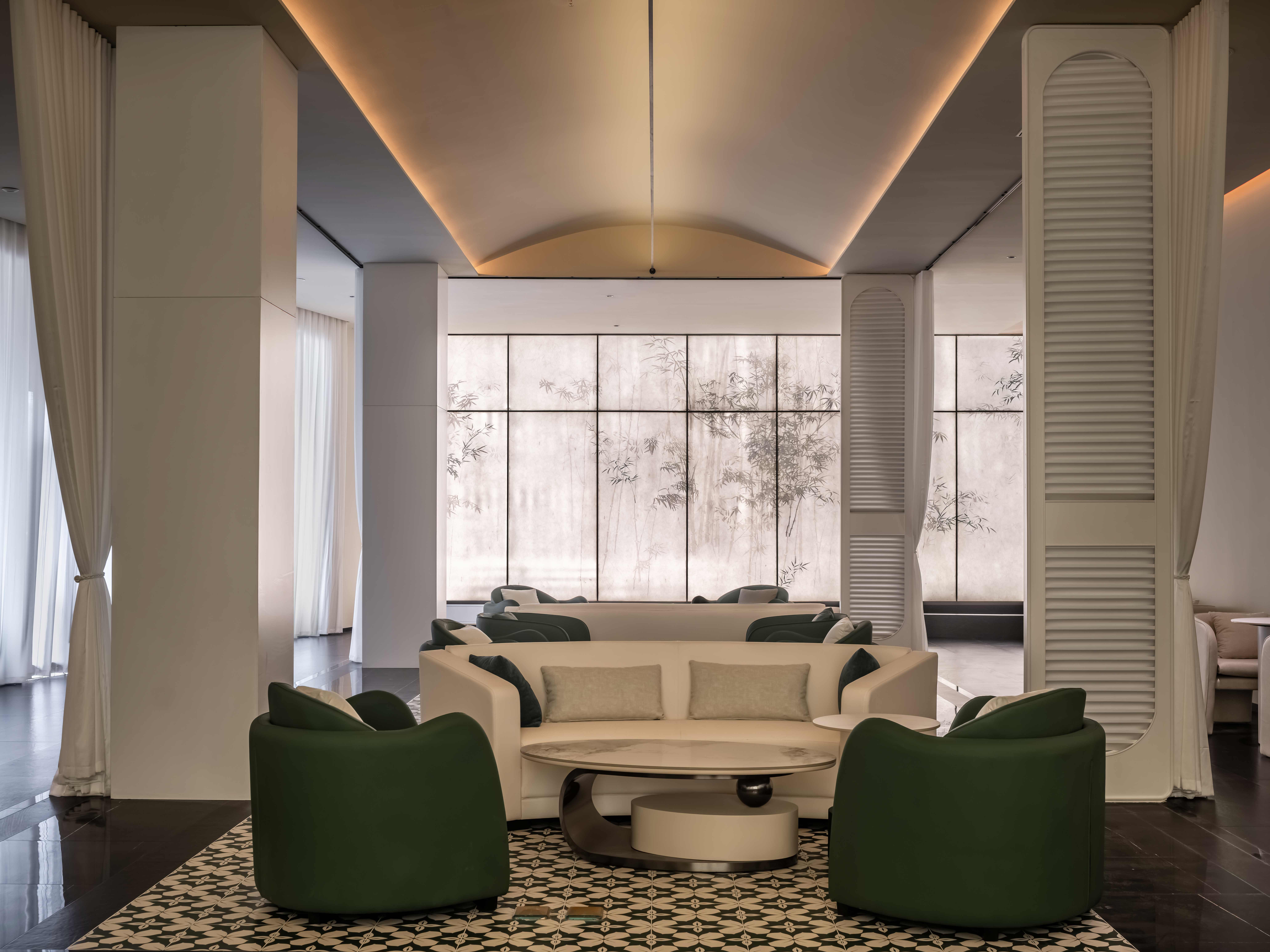 项目定位:本项目定位为“东方哲思与科技人文的共生场域”,为奇迈生物打造一个深度融合文化底蕴与品牌特质的高端招待会所。设计以东方生命智慧为精神内核,以现代科技语言为表达形式,突破传统商务接待空间的单一功能,构建兼具文化体验与品牌传达的沉浸式场域,树立生物科技企业“人文与科技并重”的独特品牌形象。