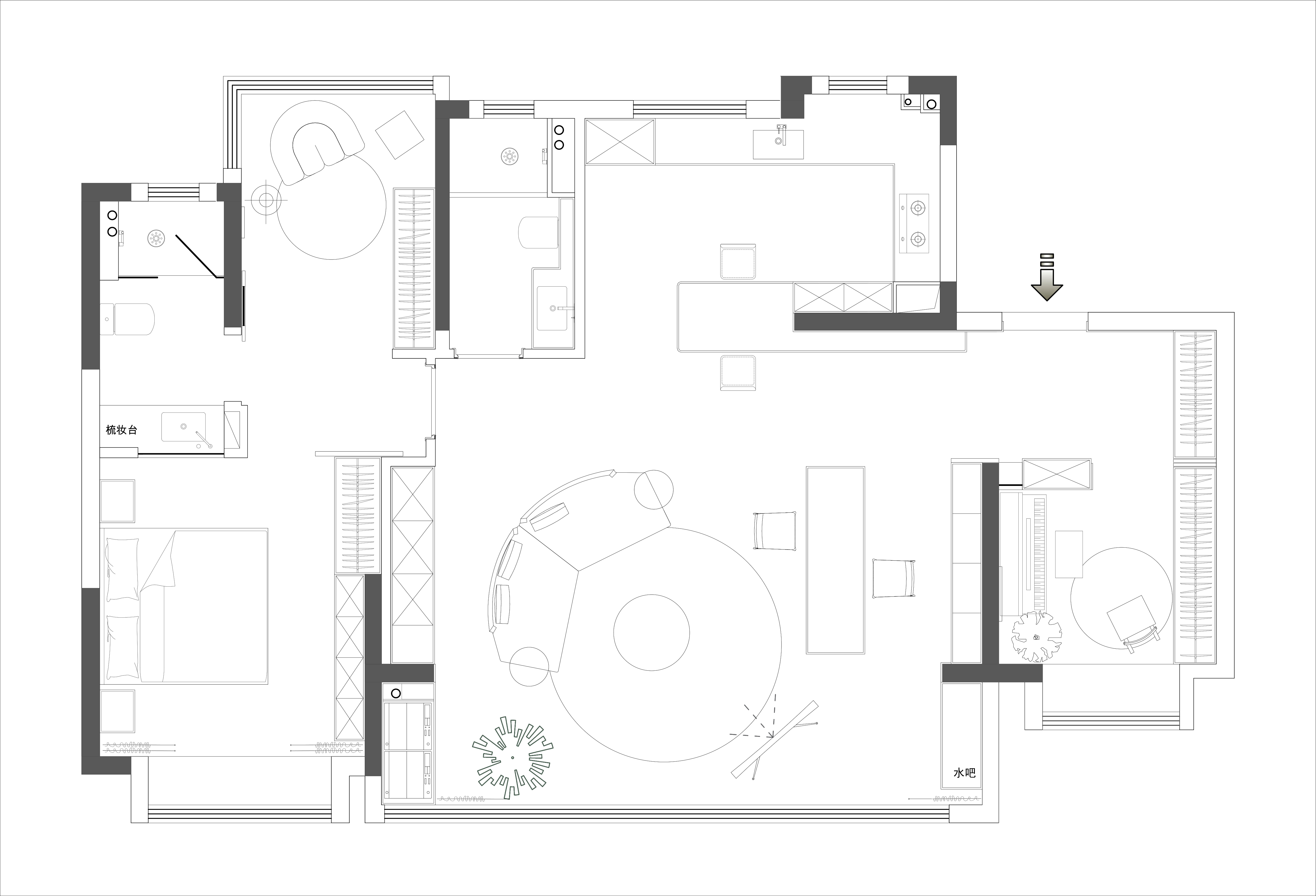 项目定位:项目是由精装房改造而成,屋主是一对年轻夫妻,在工作之余有很多的兴趣爱好,希望打造一个通透的交互空间,可以时时陪伴交流。