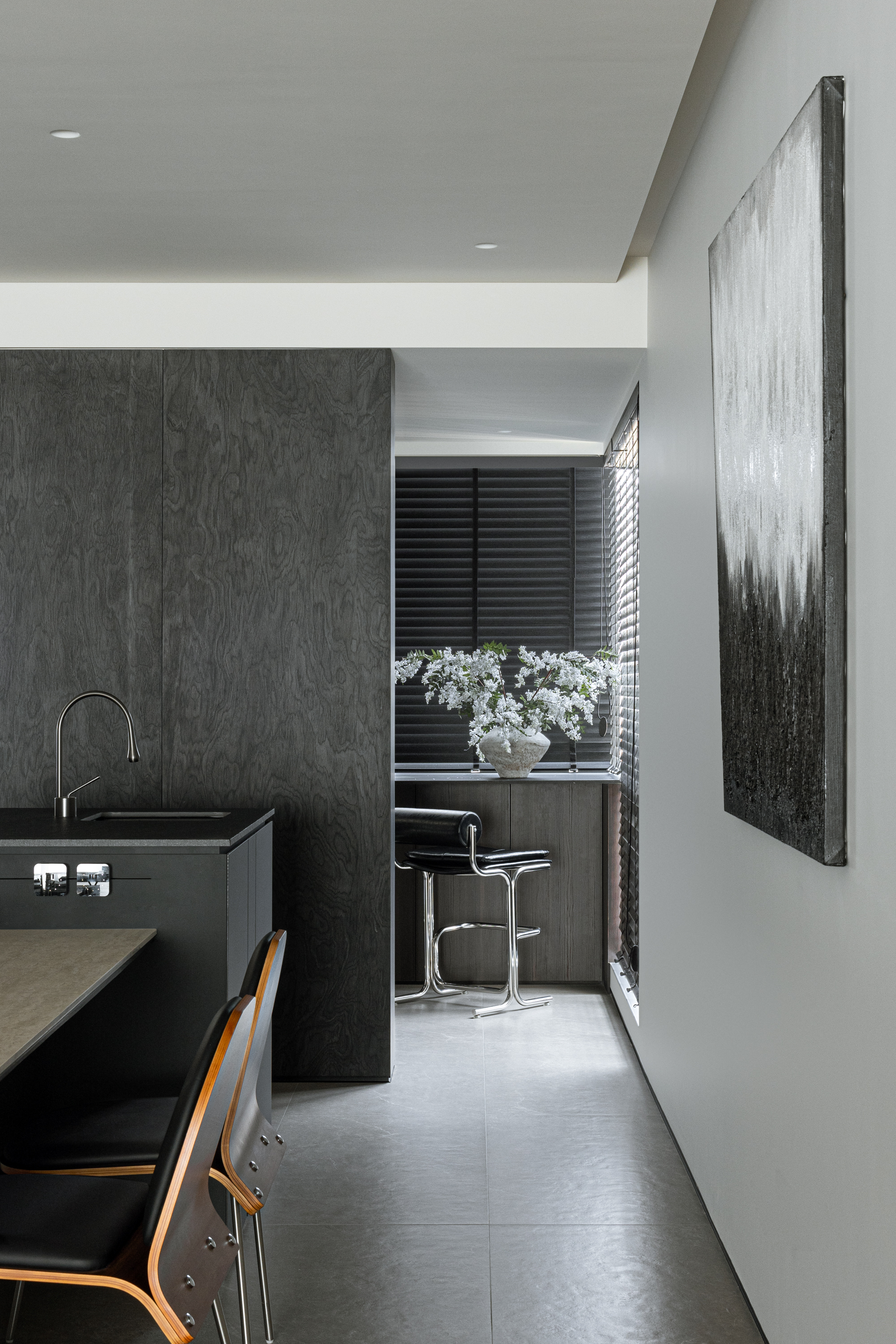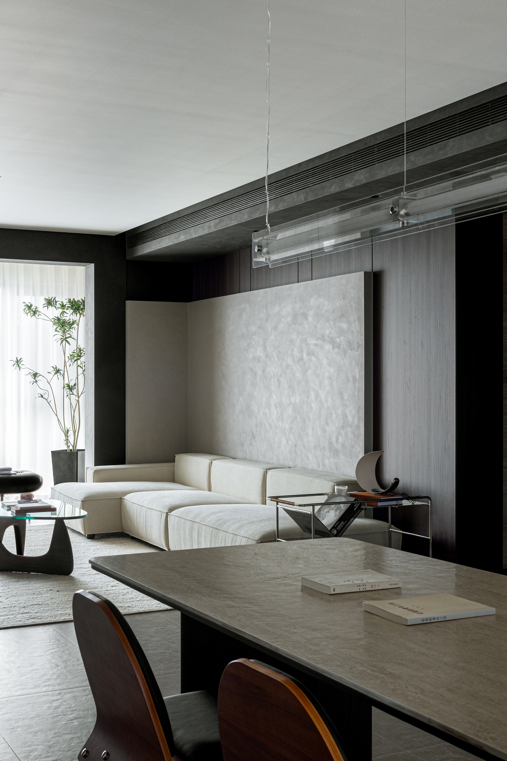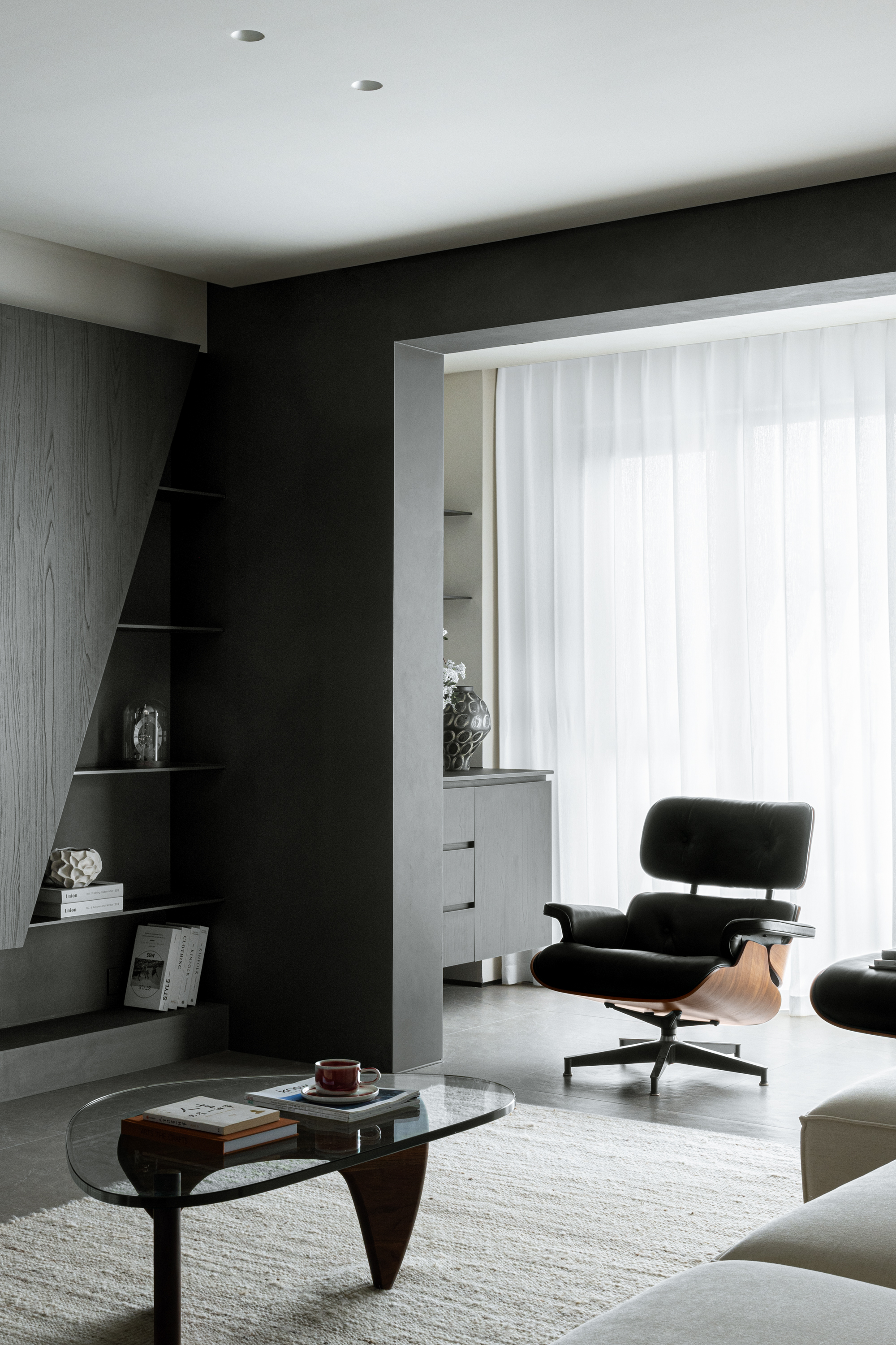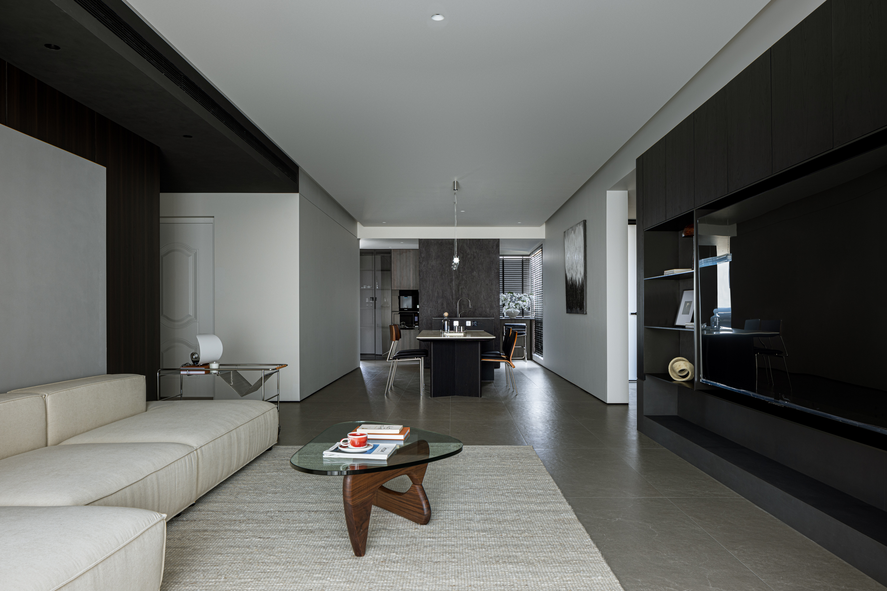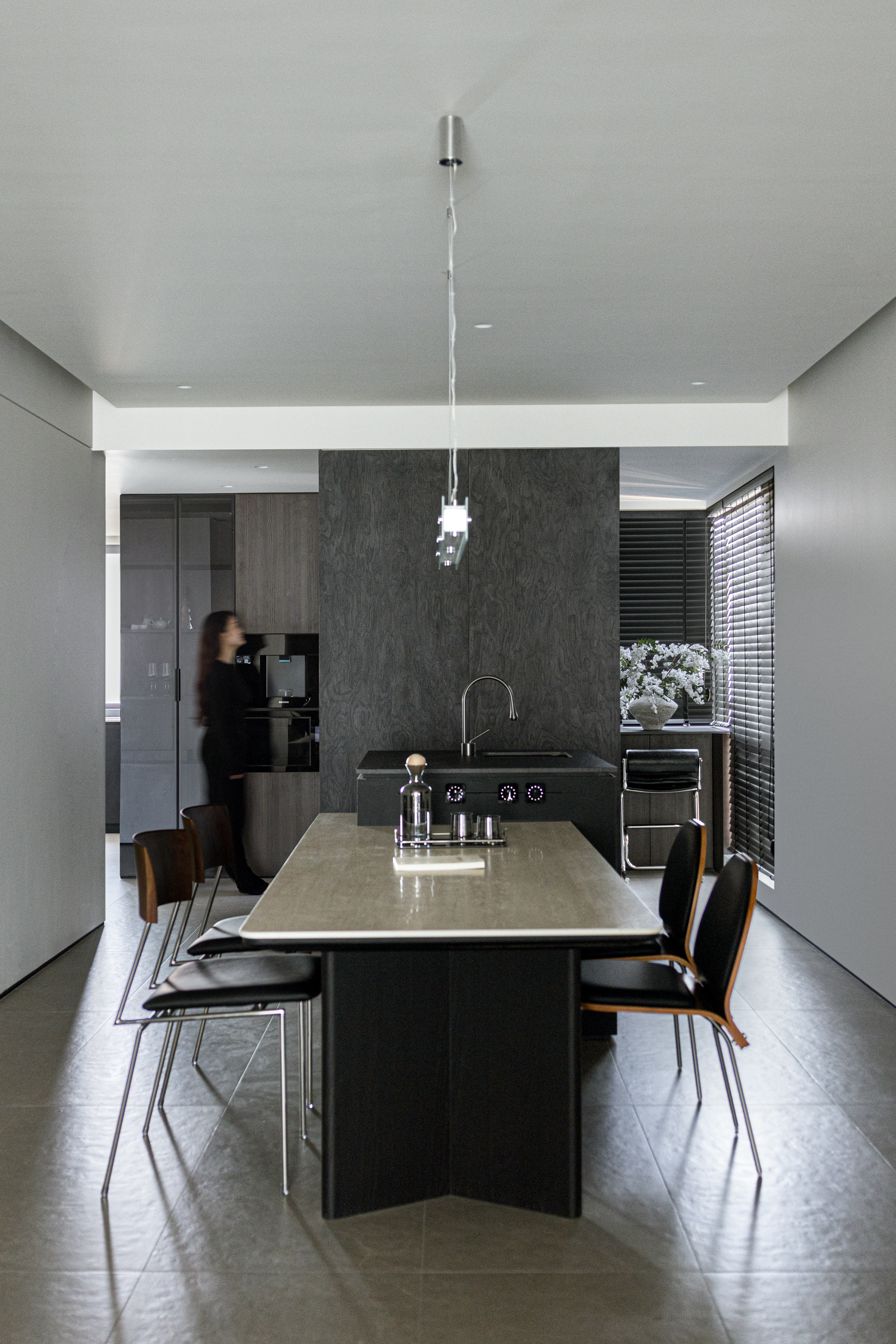 项目定位:屋主是三口之家,喜欢深色调的空间氛围,简洁的线条,所以设计的定位是意式极简