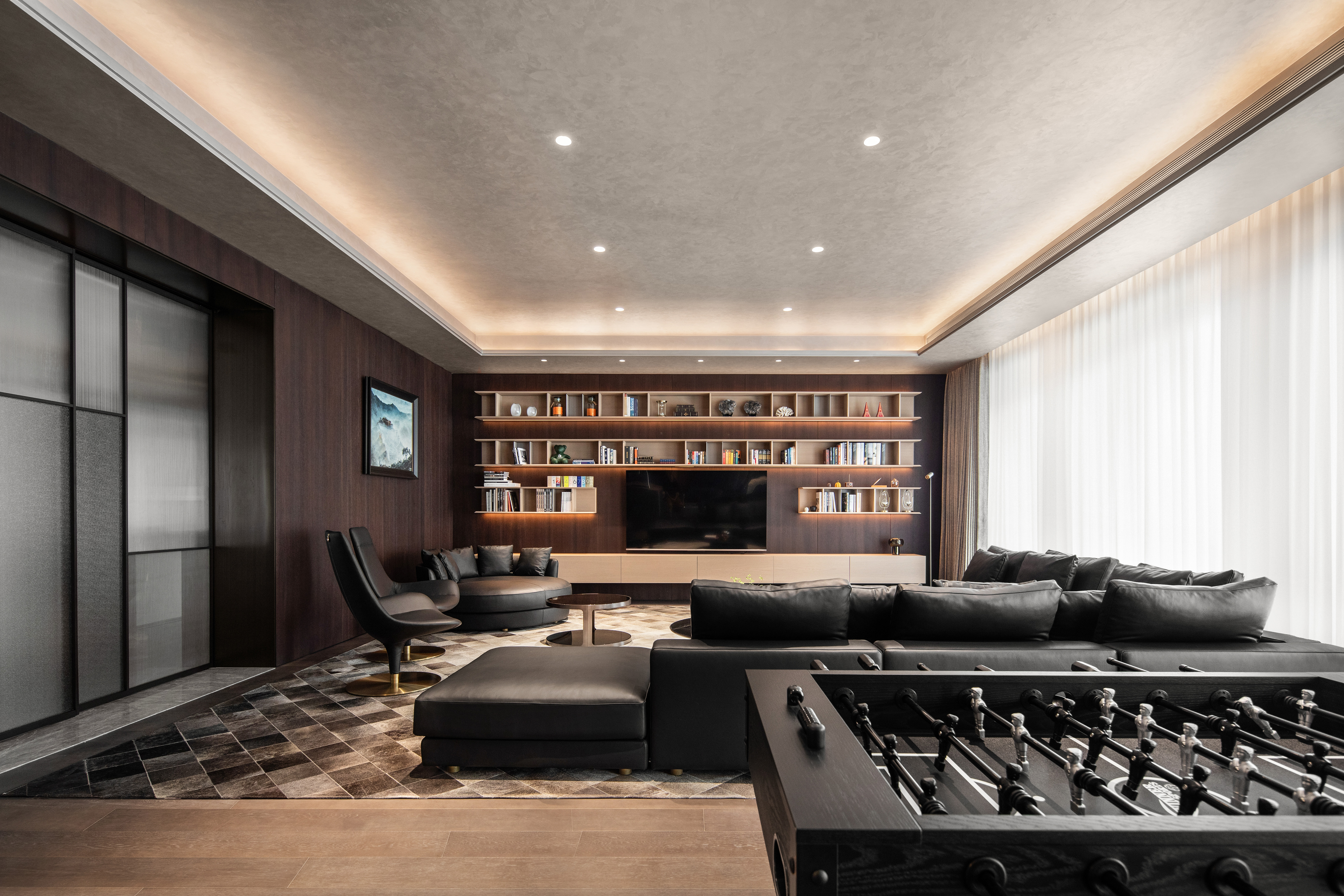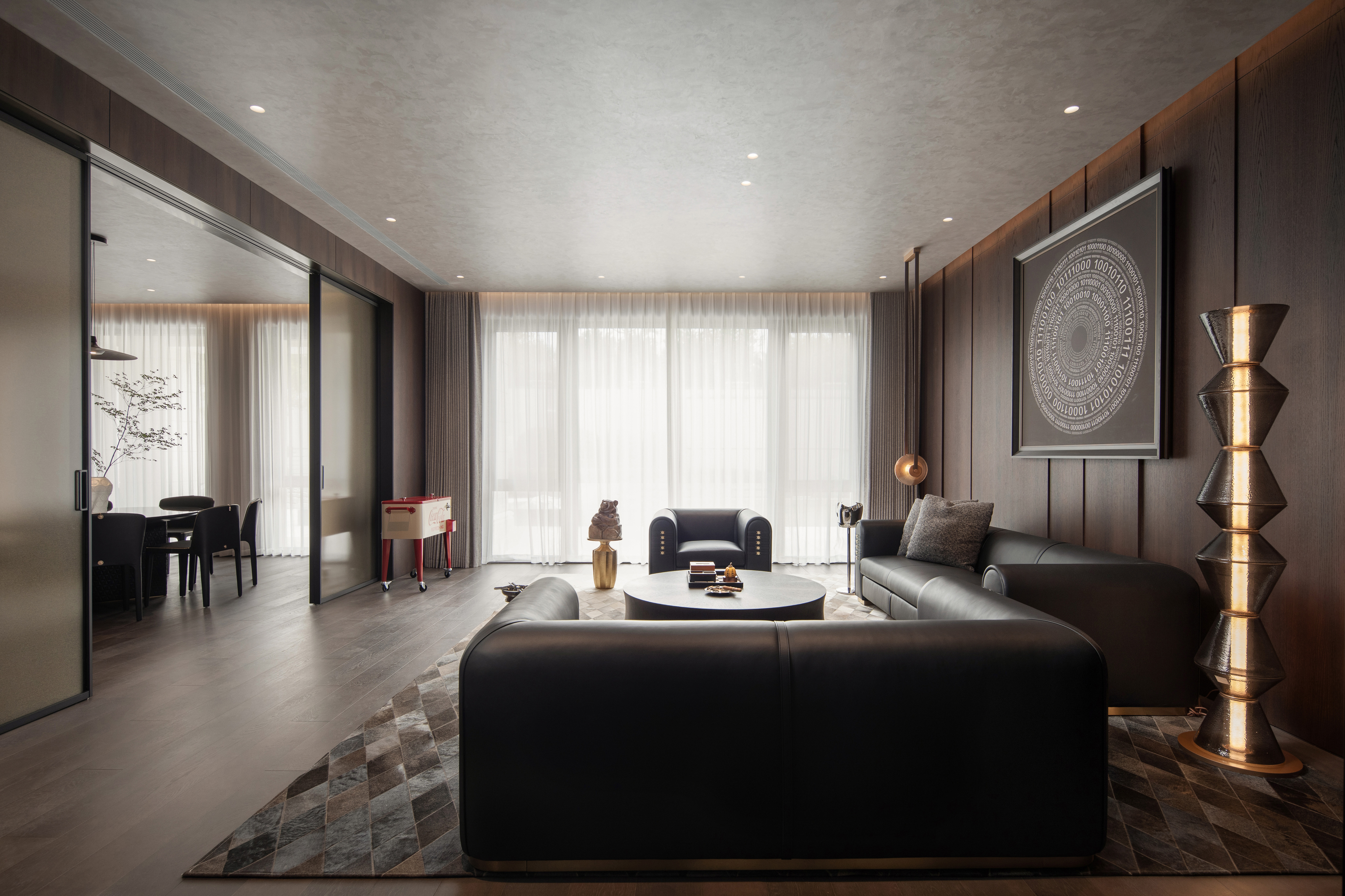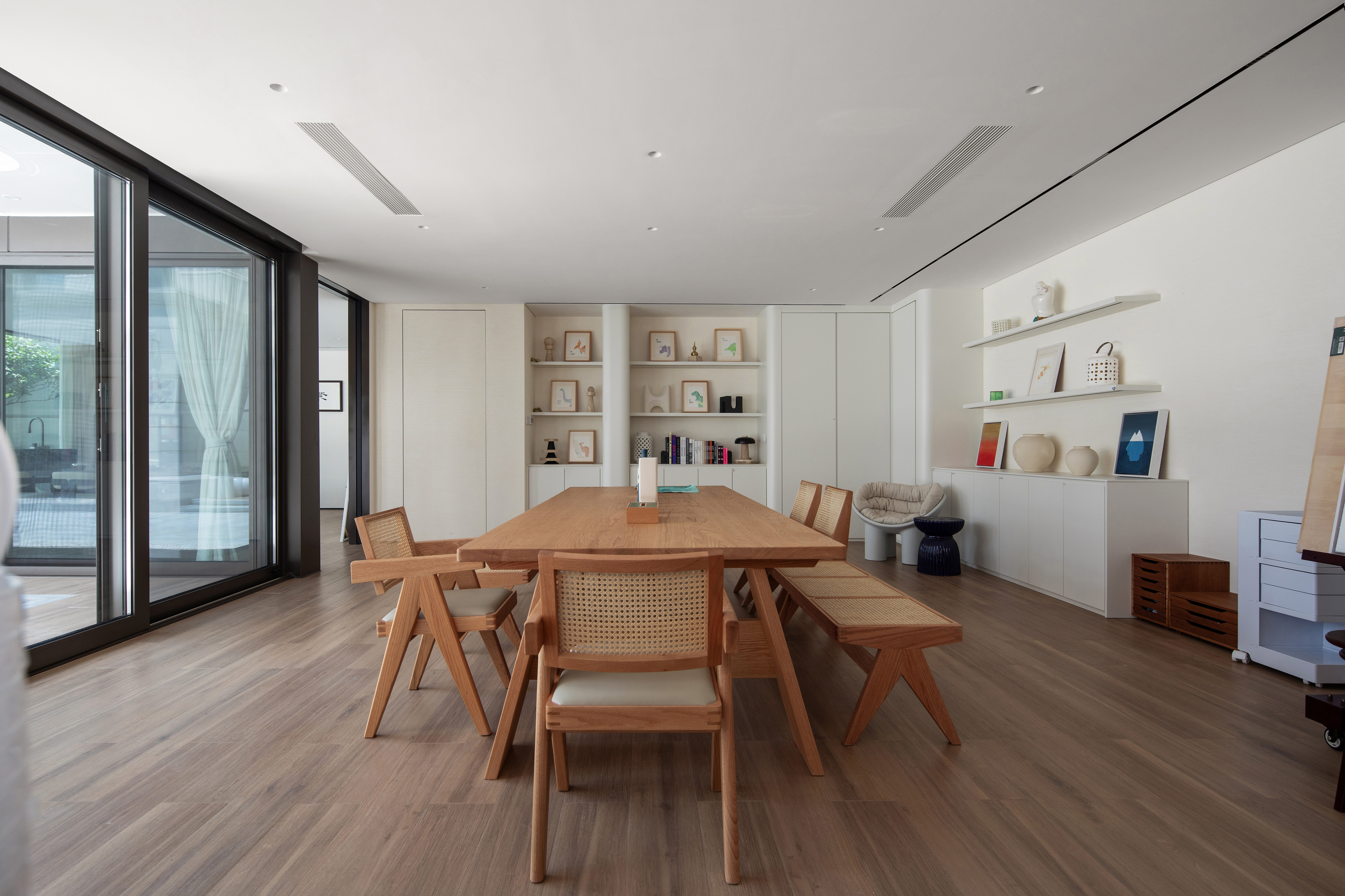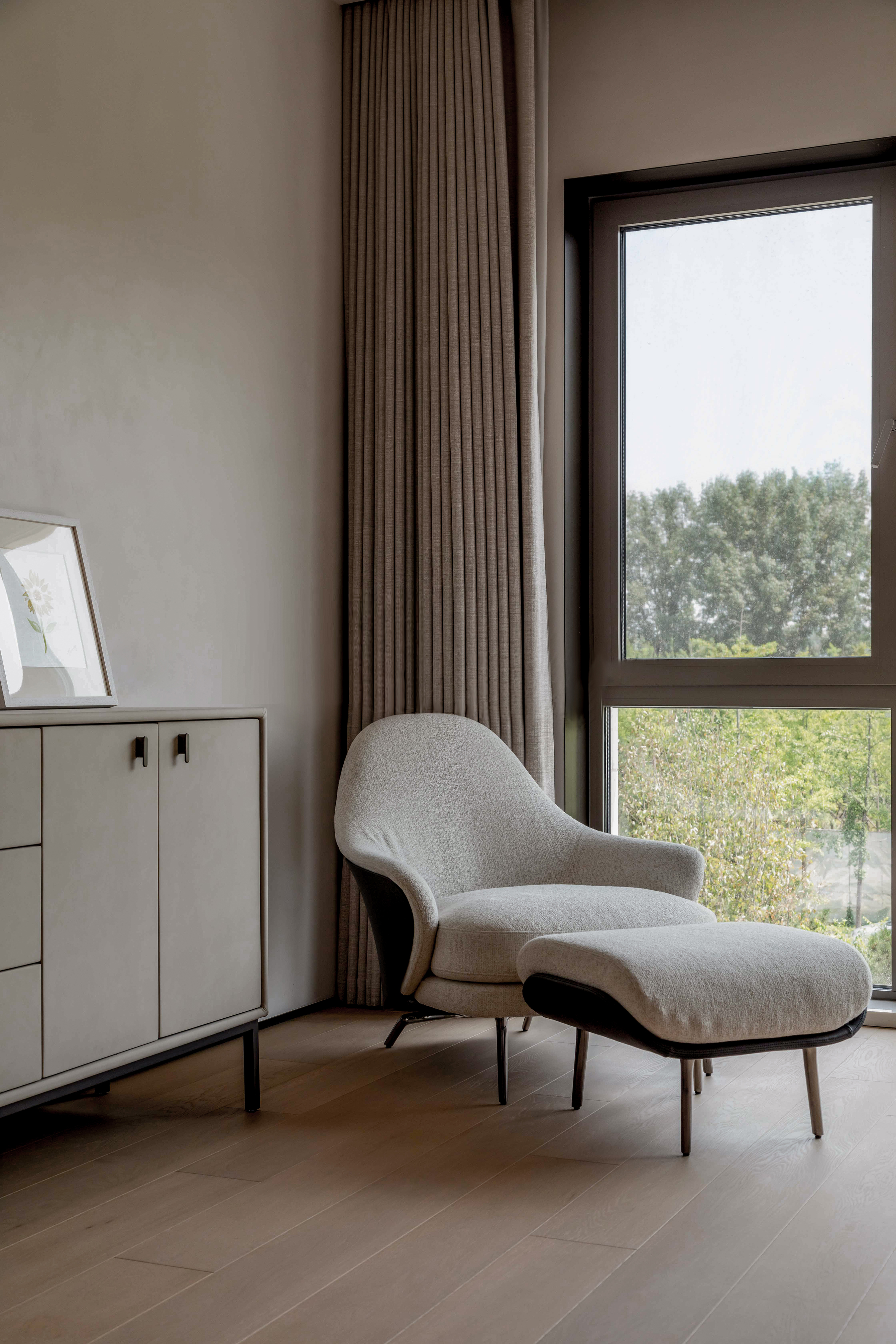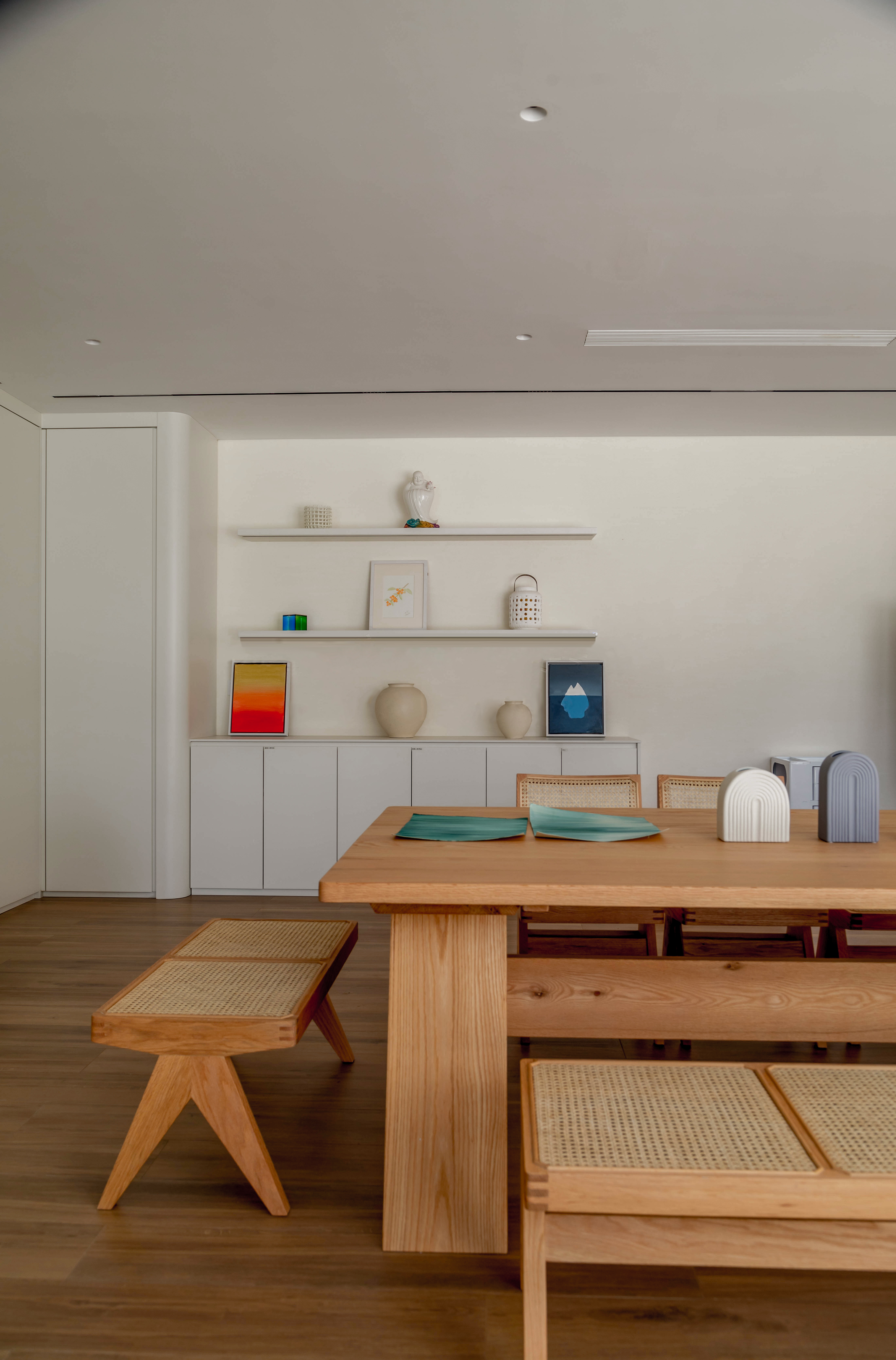 用户体验:不仅感受到了优雅与简约,还在这里找到属于自己的宁静与美好。是生活与艺术完美地融合在一起,一个独一无二的家。入住半年后,业主反馈空间的温度感与功能性远超预期,木质墙面随光线变化呈现的肌理让每日归家都充满新鲜感,尤其是儿童活动区的地面肌理,成为孩子们追逐光影游戏的天然“画布”。