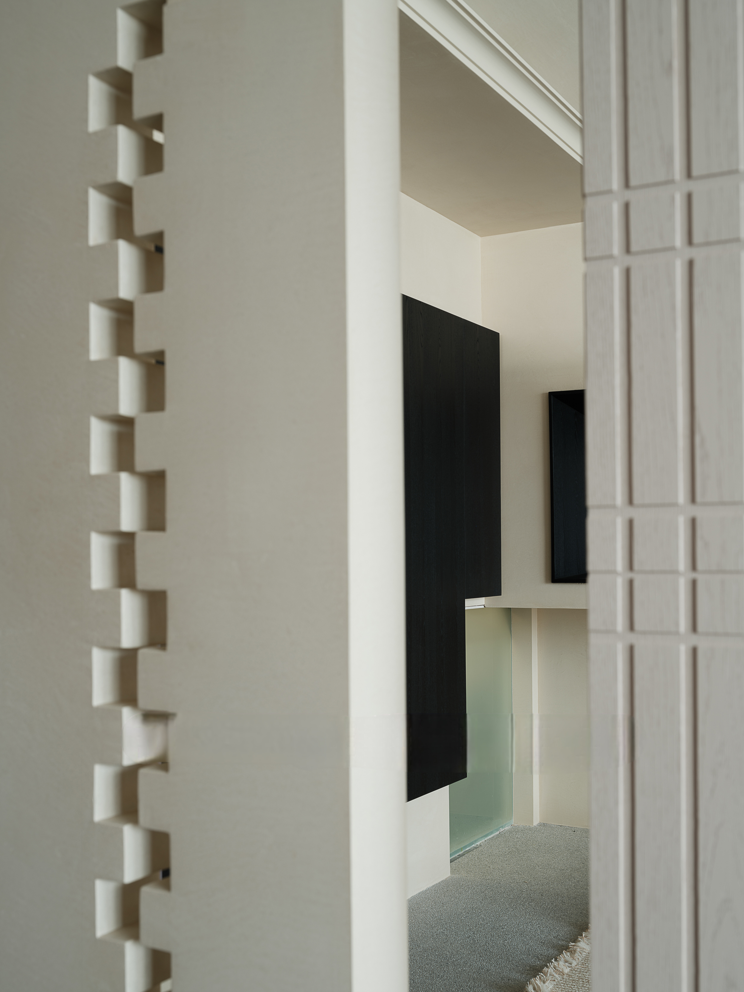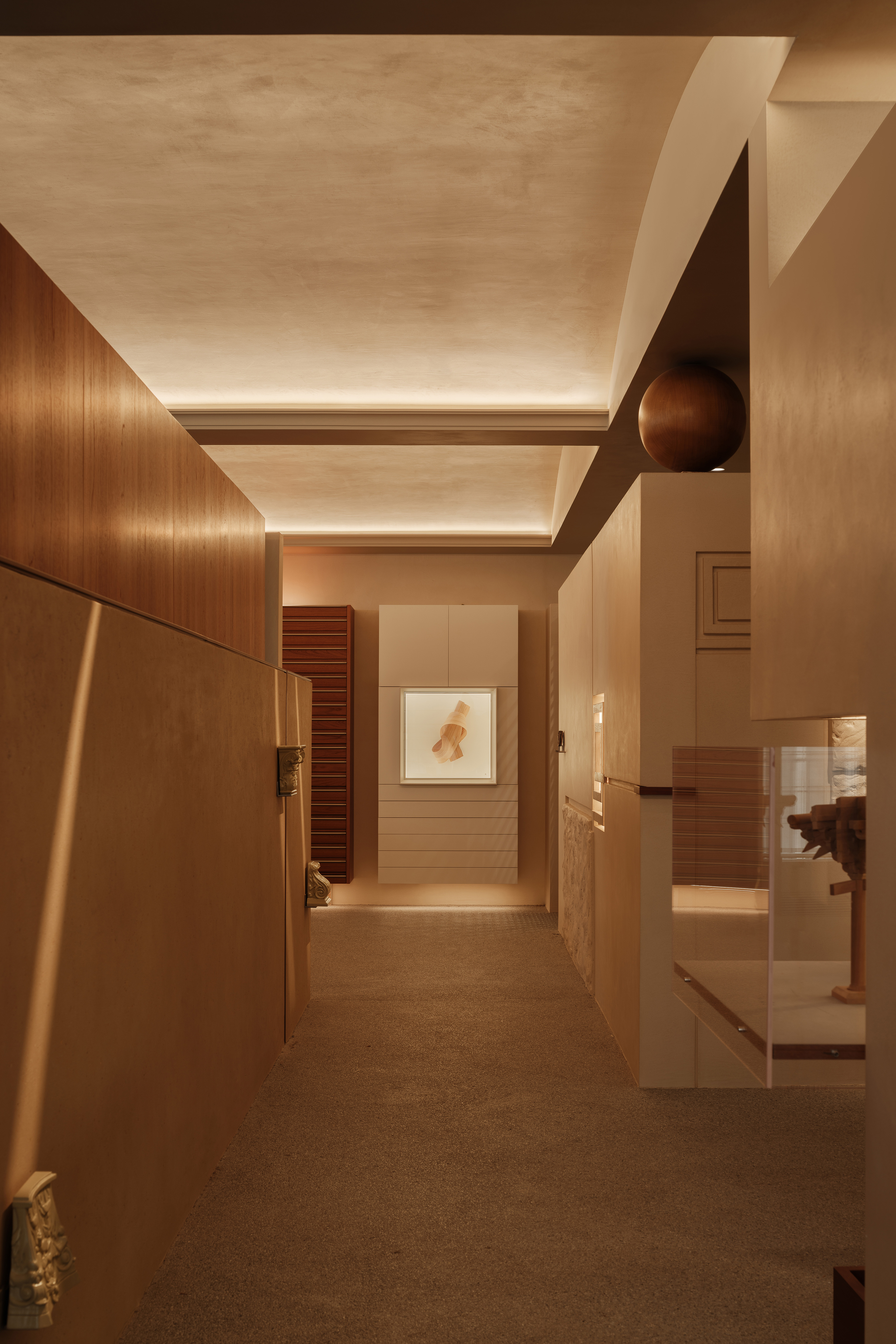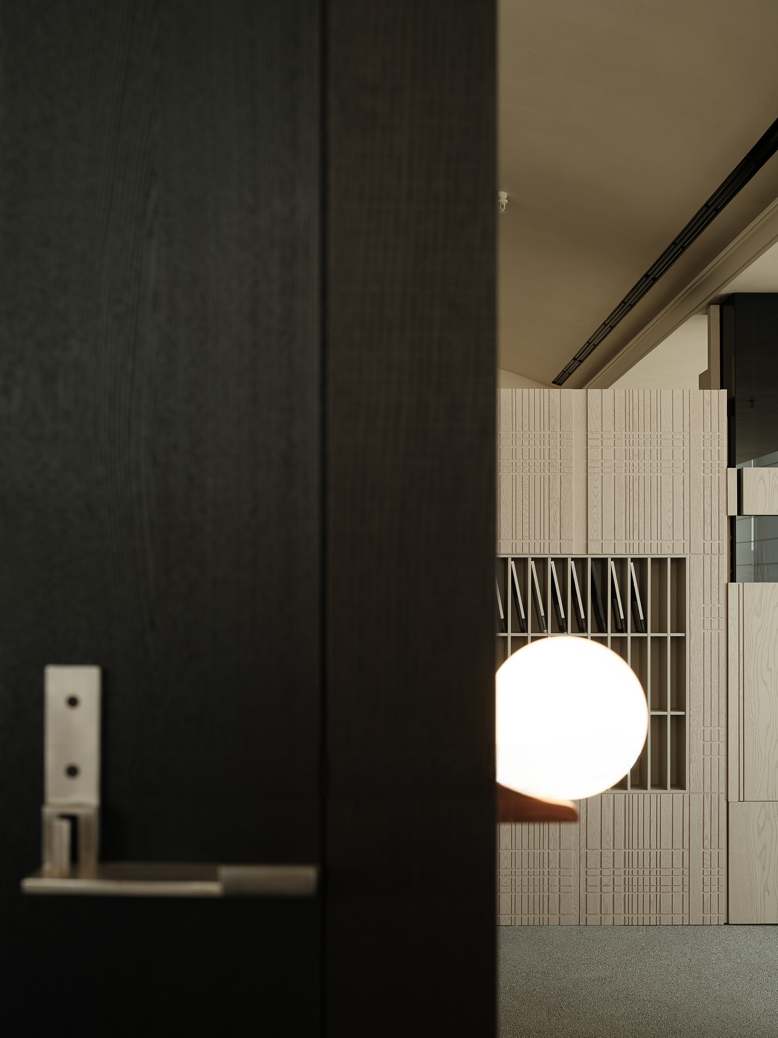 空间意境:从细节之处感受空间的哲学,体会高定工艺的精湛之处。不仅体现木材的天然美感,更通过精湛的工艺和独特的设计语言,为空间赋予独特的个性和温度。既保证空间的整体和谐,又增添几分灵动与活力。光影的运用更是巧妙,通过不同形式的灯具组合与自然光的引入,让空间在不同时段呈现出丰富的层次感