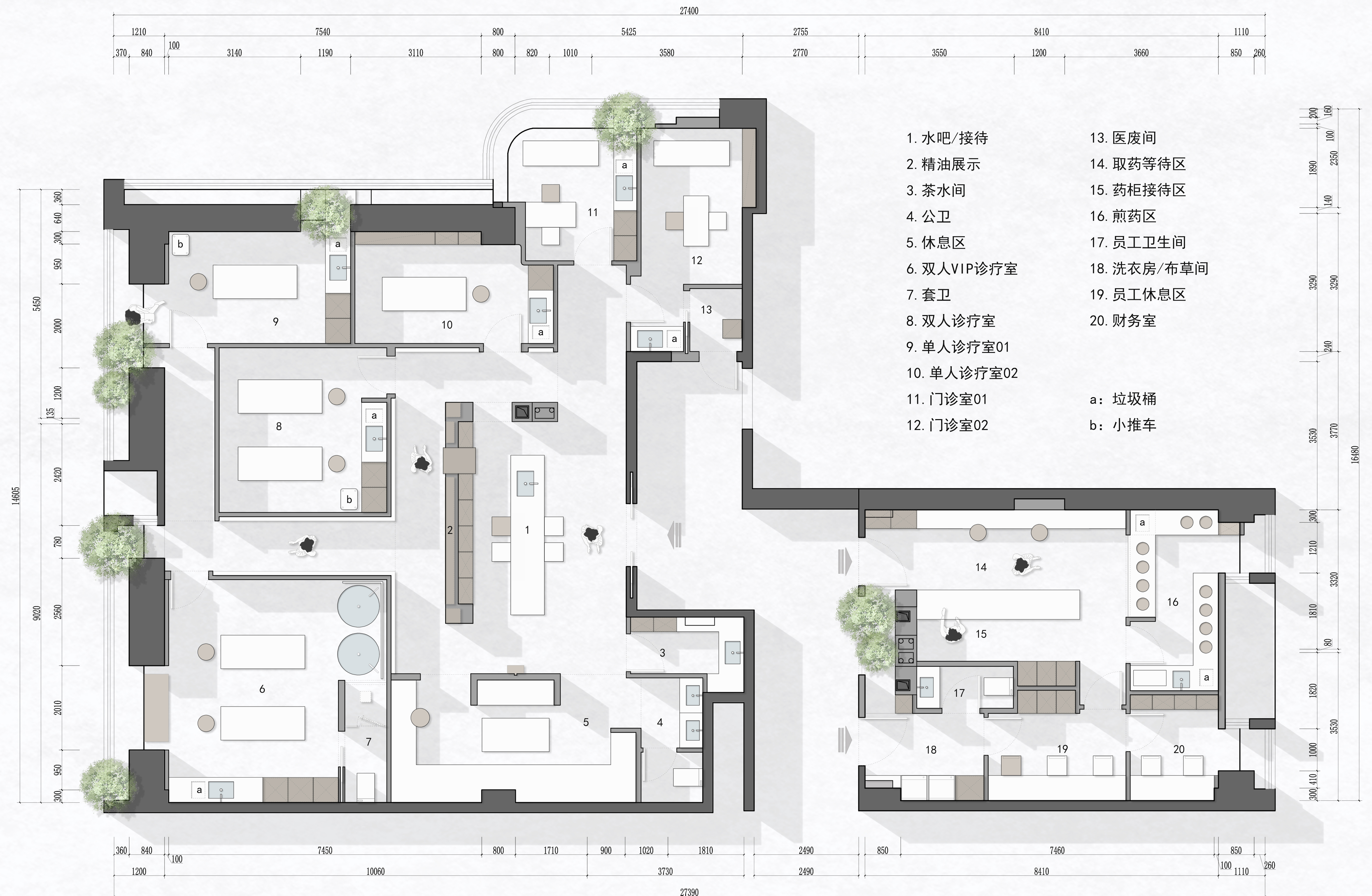 项目定位:喜欢自然、质朴的空间;需要独立私密的诊疗室空间;基通过巧妙的隔断设计和声学处理,确保了诊疗室的独立性与私密性,让每一位到访的顾客都能在宁静舒适的环境中享受专业的中医服务。此外,设计中还融入了自然元素,如绿植点缀、自然光引入等,进一步强化了空间的自然感与生命力。