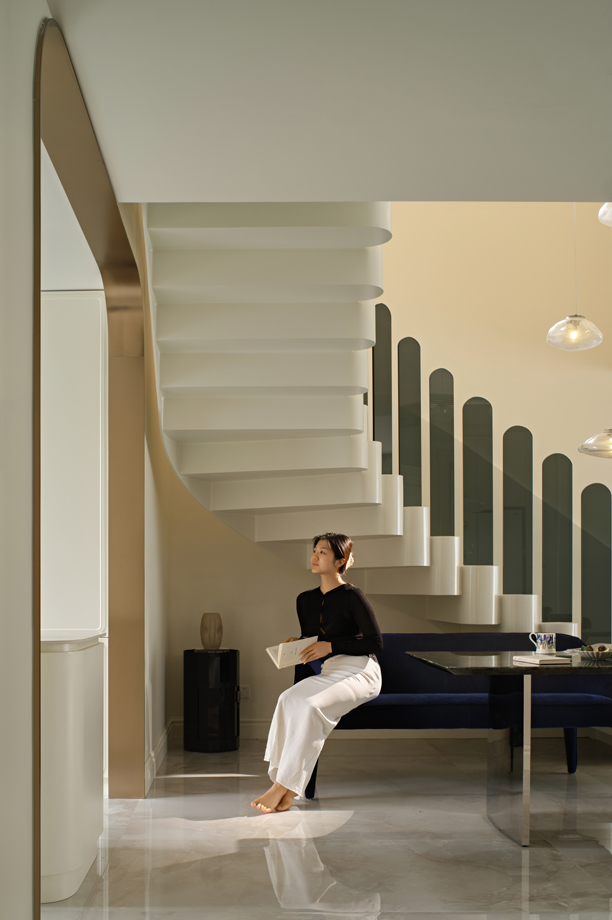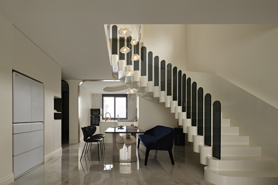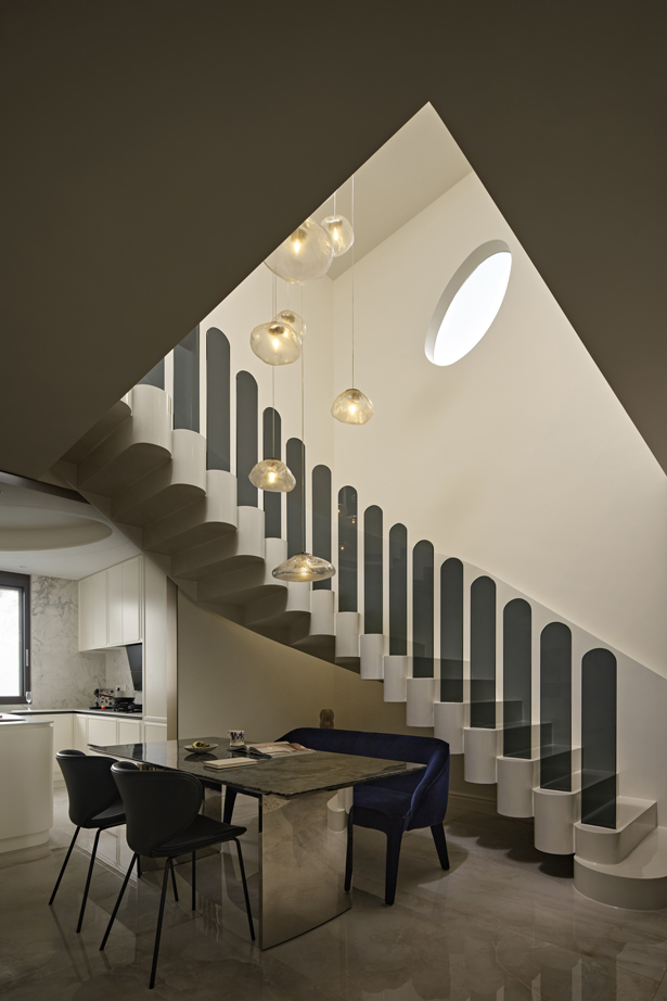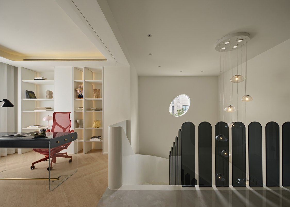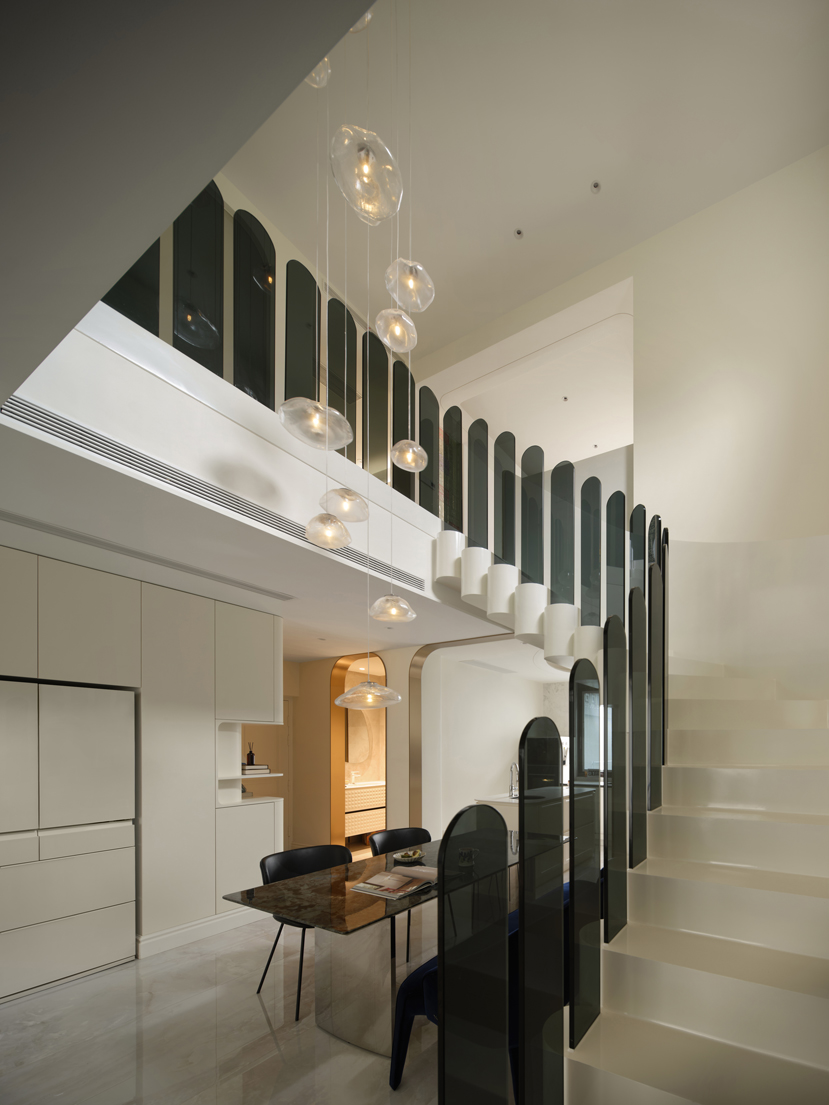 空间是乐器,扶手是音符,旋转楼梯仿佛是空间里一条隐秘的叙事线,随着居住者的步伐涌动,将成为整个空间的“能量中枢”。