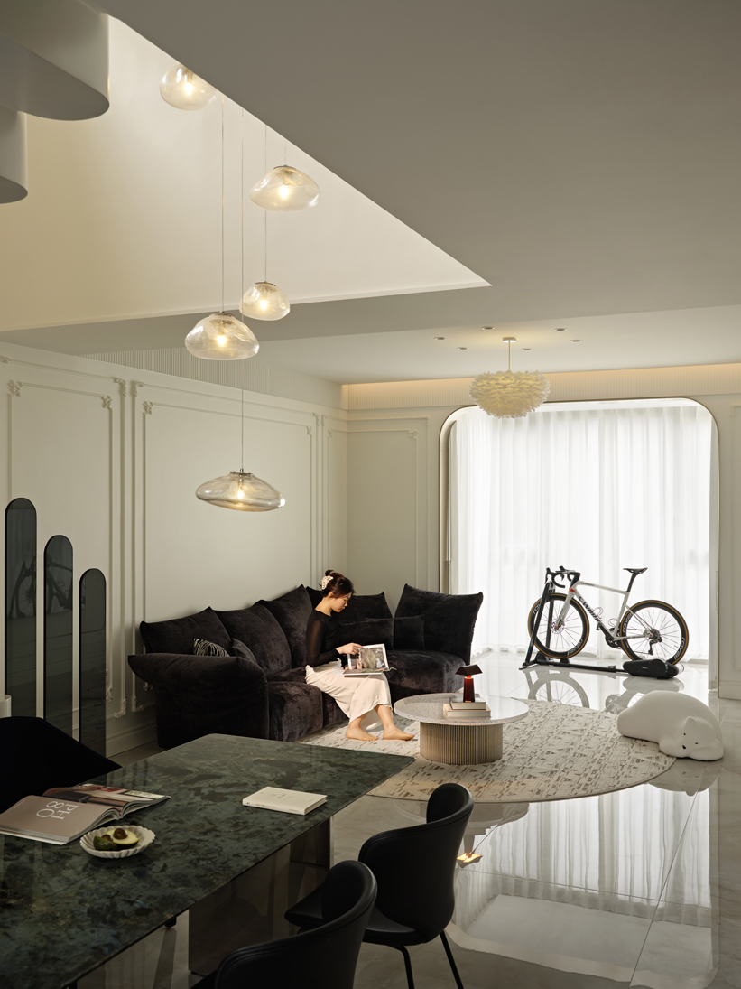 设计在理性的秩序中注入轻松的节奏,将日常走动变成了一次次轻盈的艺术走秀。自然的生命力通过窗口潜入居所,让空间转折处,成为四季更迭时的微型剧场。