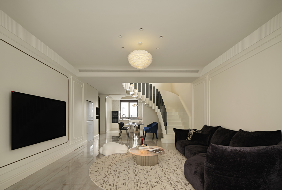 家是世界上最小的度假区,白与灰构建出纯净的秩序,在克制与释放之间,流线型的布局让家的仪式感渐次展开。
