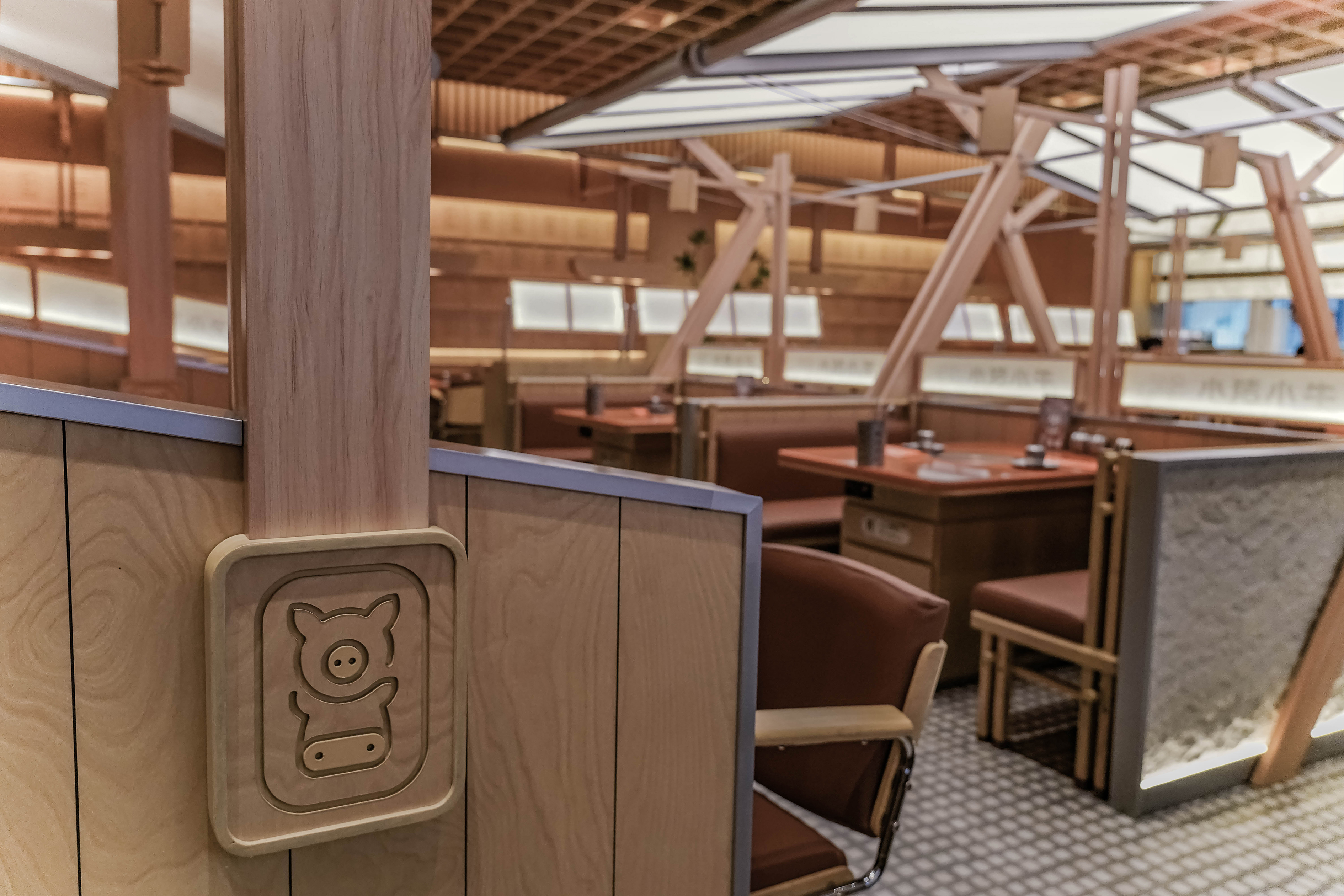 项目定位:解构主义美学与自然质感相融合,打造兼具现代设计感与舒适度的餐饮空间,实现品牌形象与消费体验的双重升级,以现代解构主义为核心,结合原木等自然材质,打造兼具工业理性与自然亲和的餐饮空间。通过暴露构造、模块化布局展现结构逻辑,同时融入温暖质感,平衡冷硬感,传递品牌对品质与设计的追求。