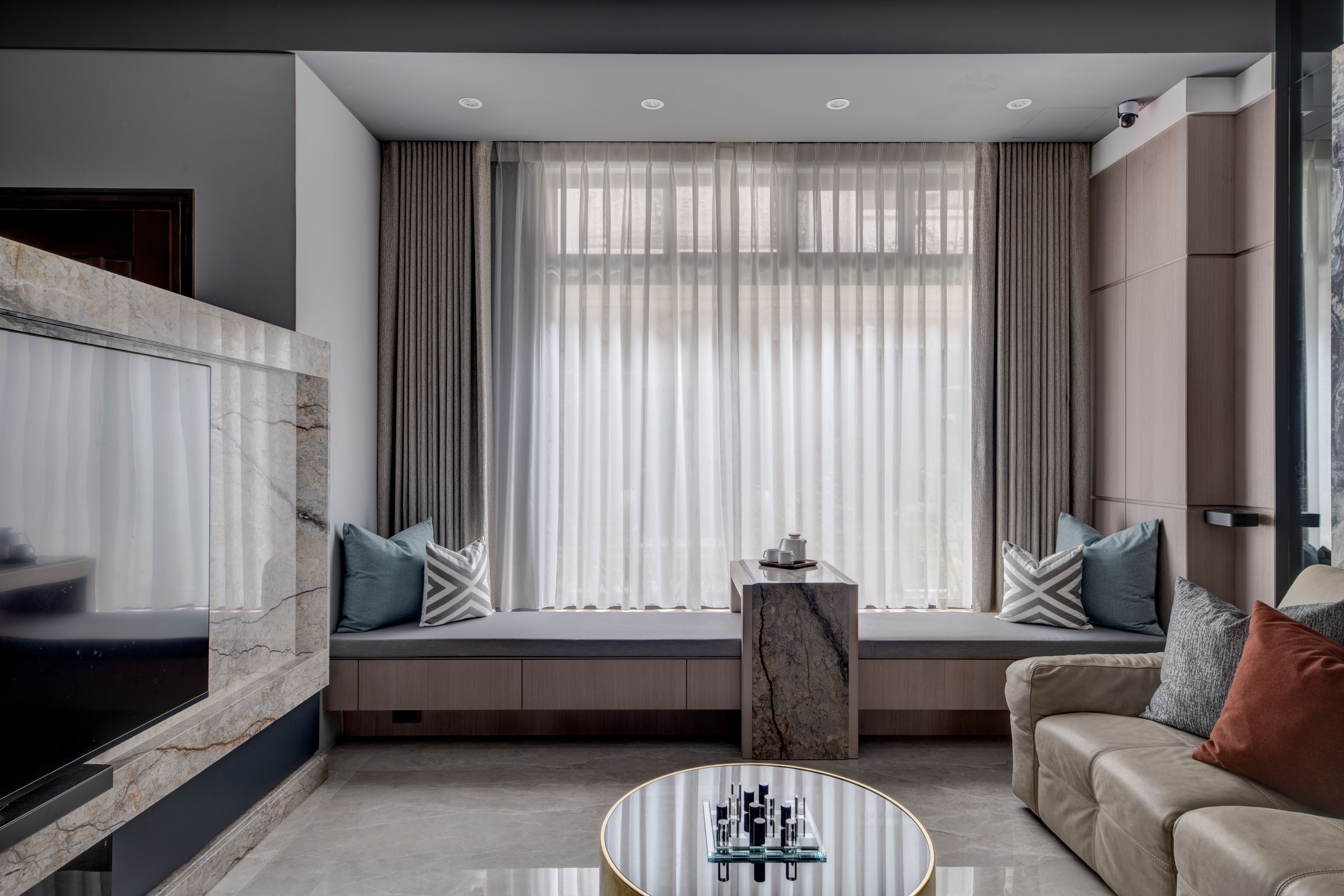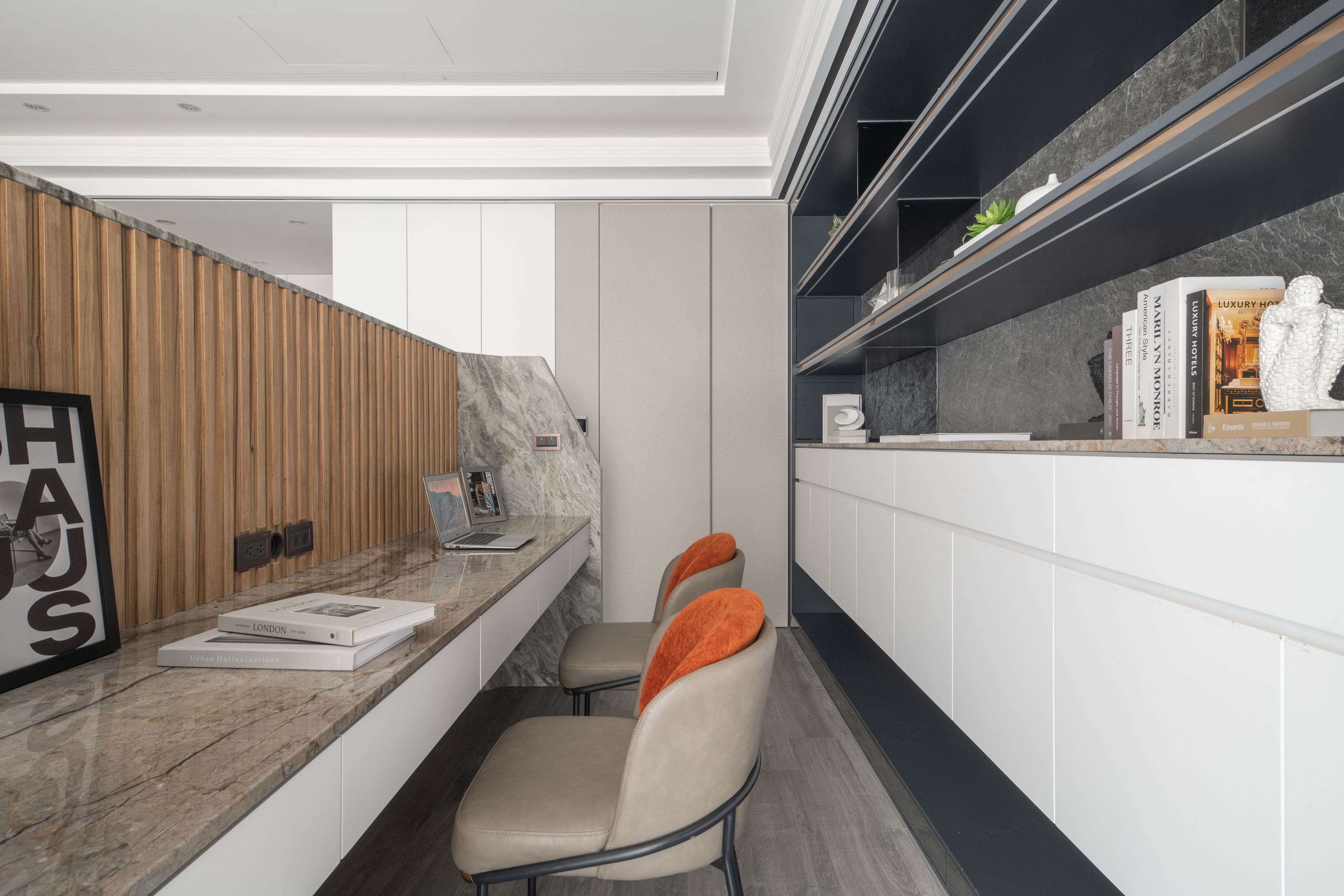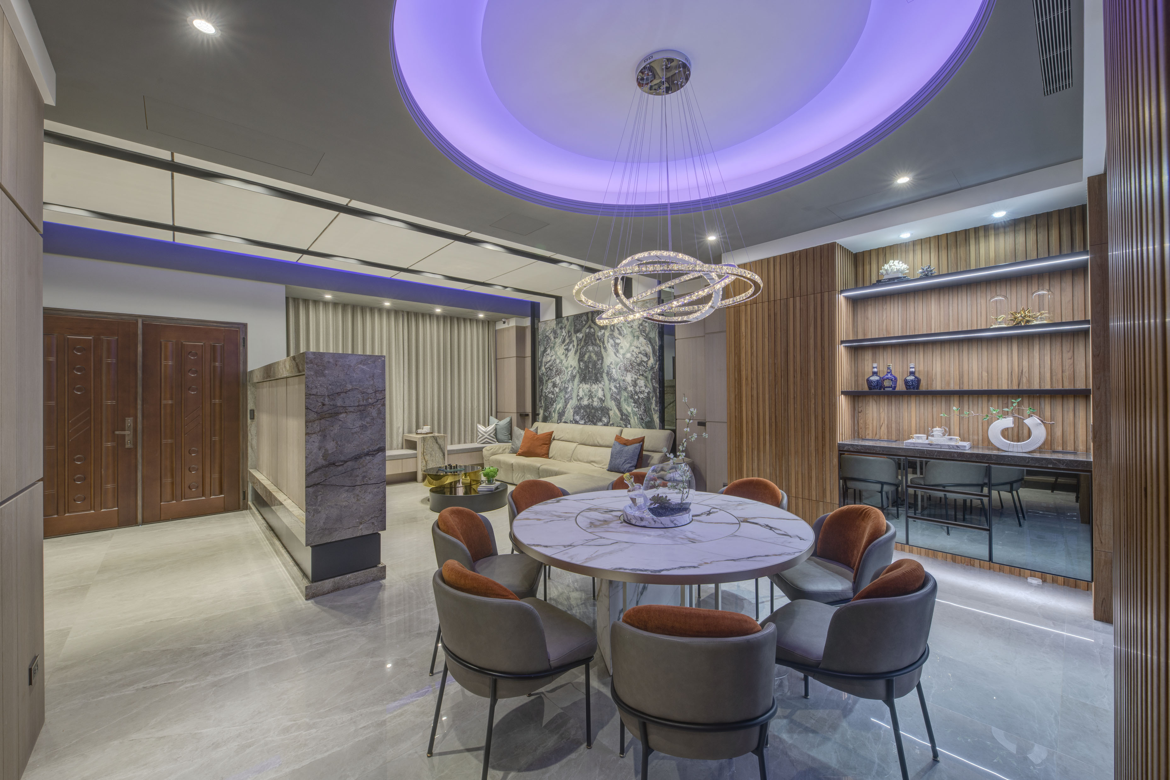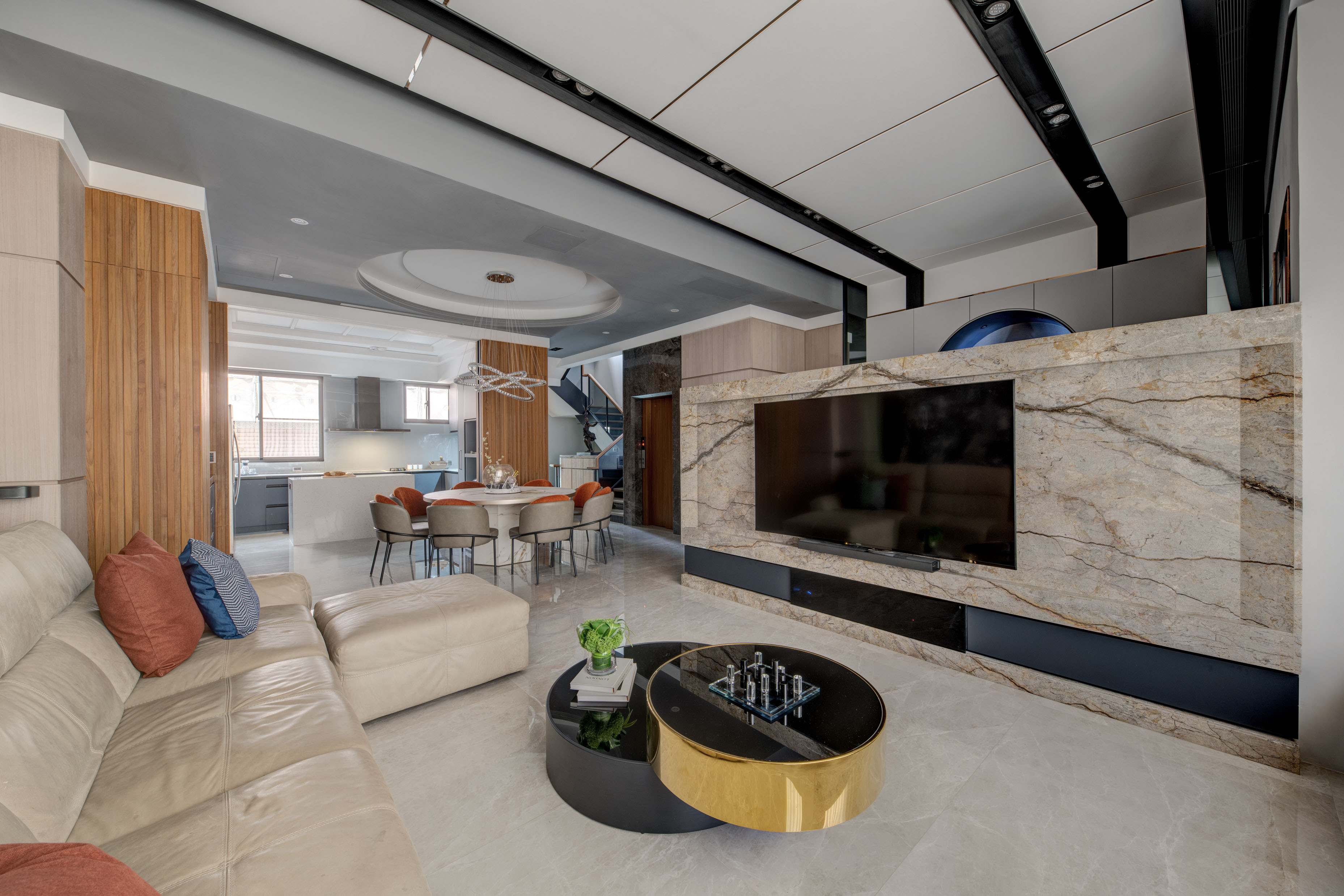 项目定位:以「現代輕奢 × 人文雅韻」為核心定位,透過石材的沉穩質感、木質的溫潤語彙及光影層次的引導,形塑出兼具精品酒店質感與居家溫度的生活場景。設計策畫以居住者的日常體驗為主軸,將寧靜、秩序與舒適集結於一體,並以圓形餐區與視覺焦點牆面構成空間主視覺,使整體風格在柔與剛、冷與暖之間達到平衡與高度辨識度。