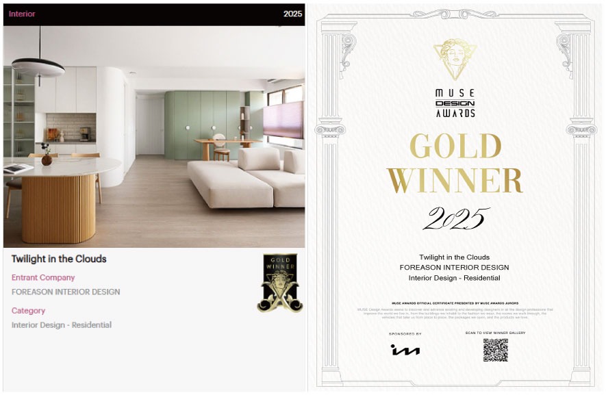 【擎森設計】2025 MUSE Design Awards 「雲端詩意居所」圓弧美學奪金獎殊榮!