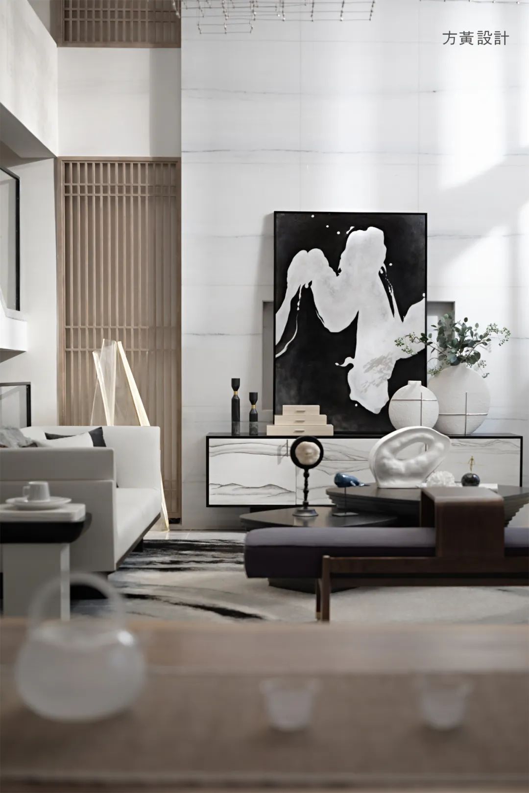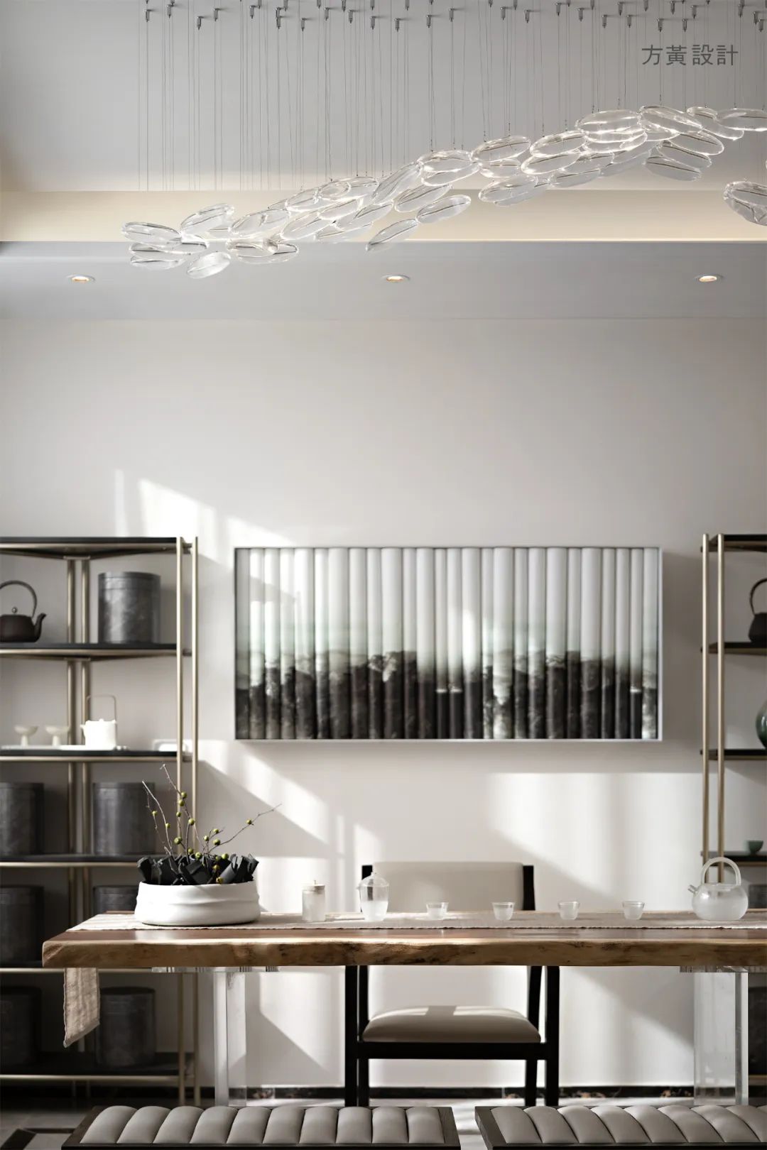 空间意境:山水的纹理,端庄的色彩,石头、翡翠等能量元素,空间的气韵默然流通,透明恬静而诗情画意。