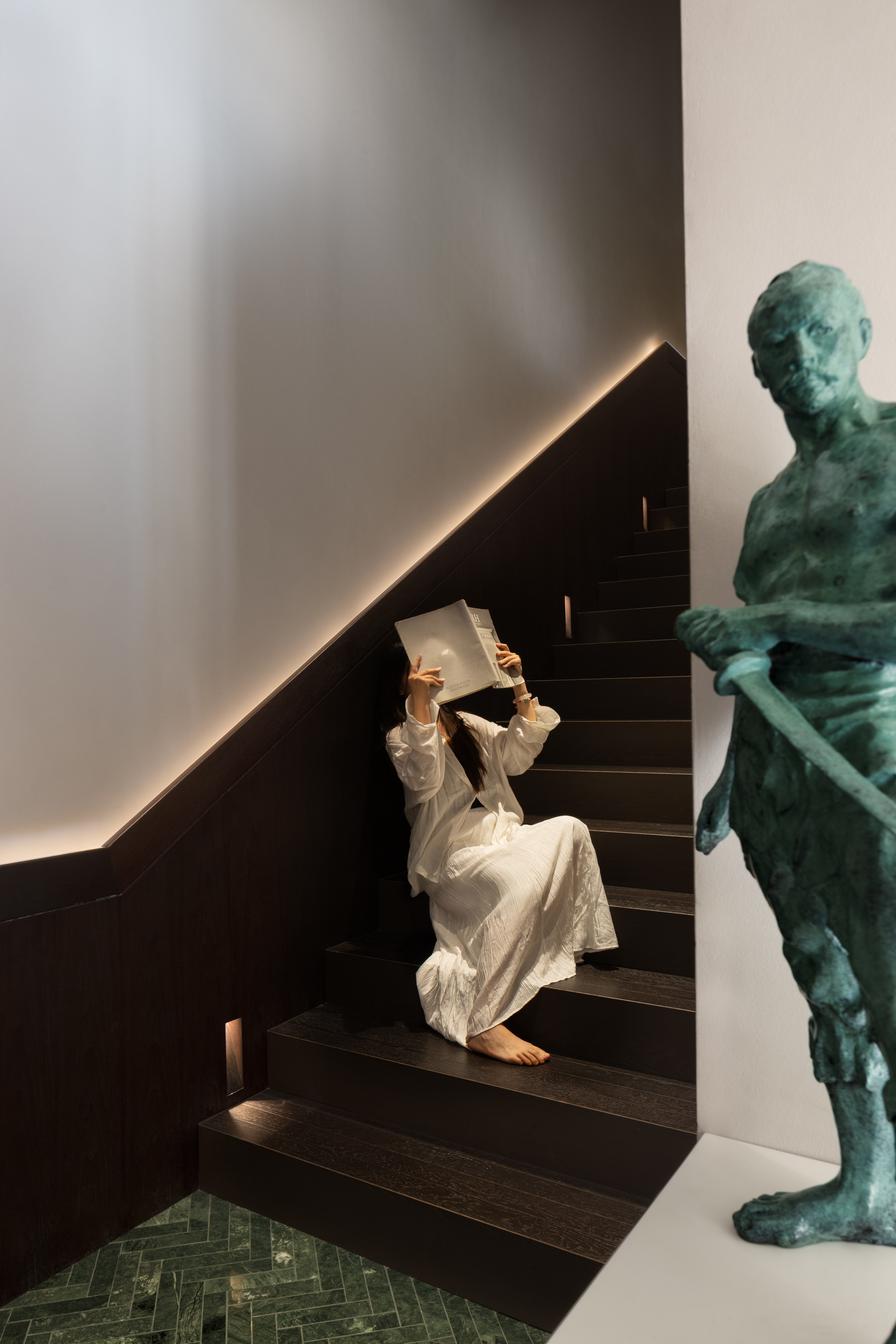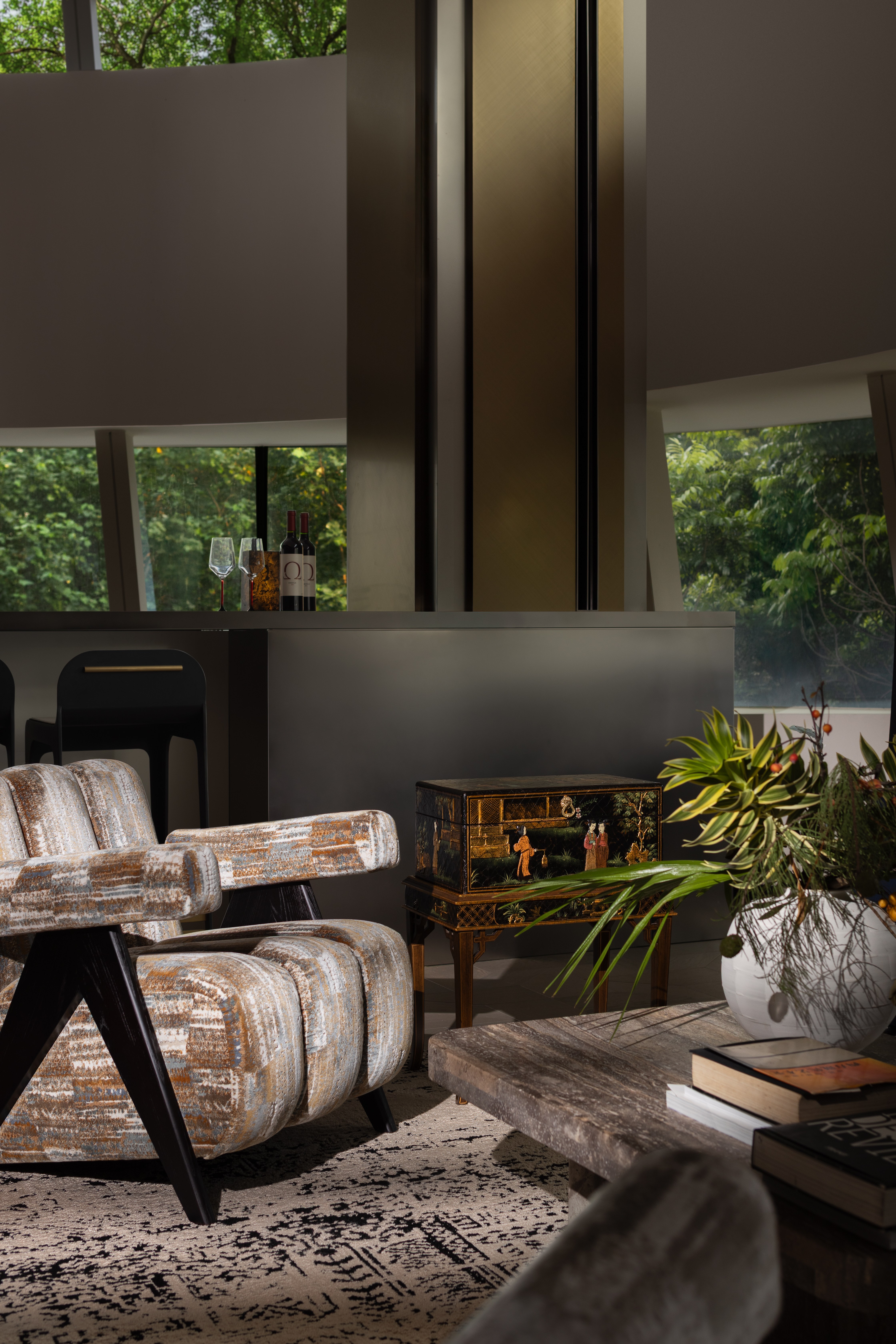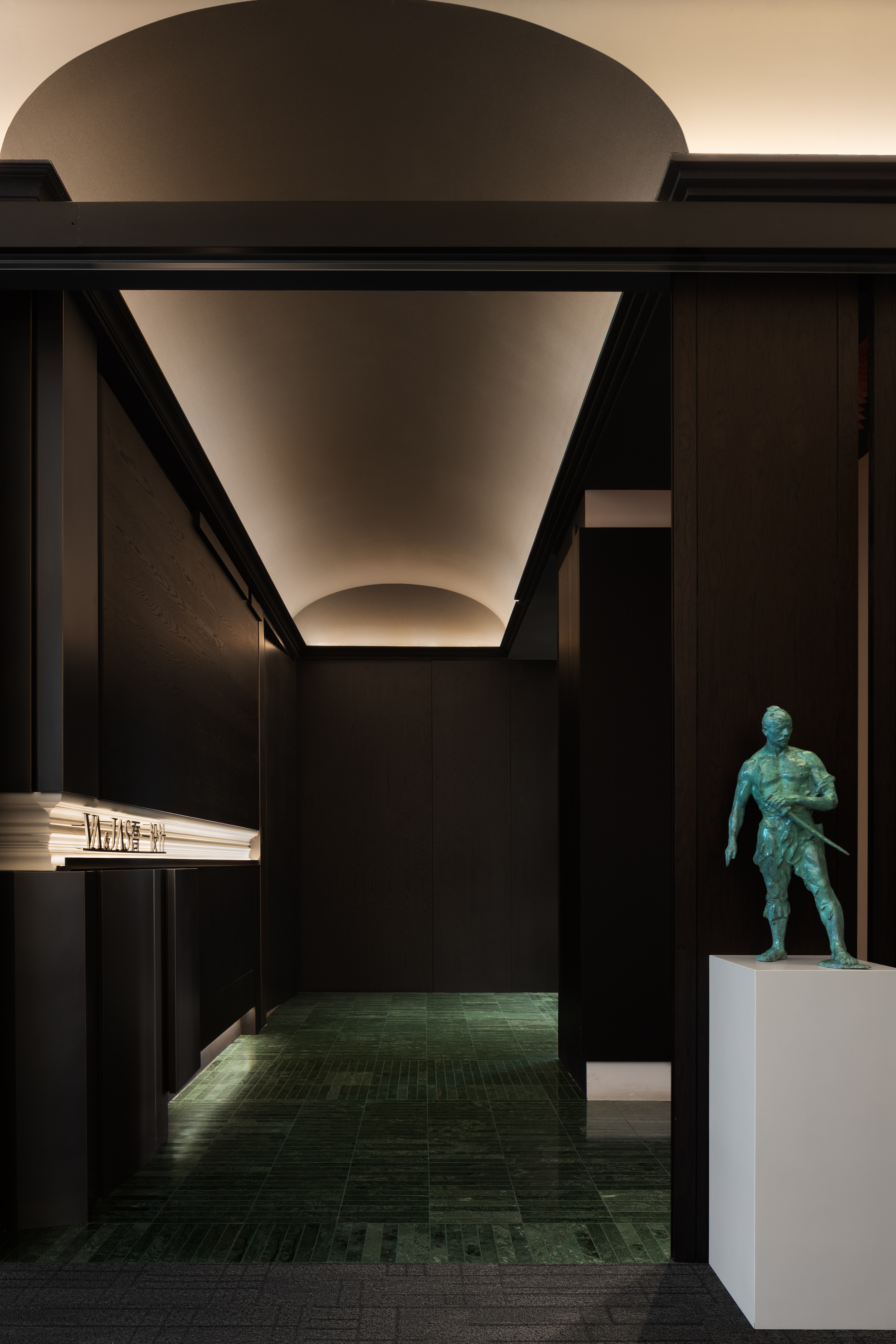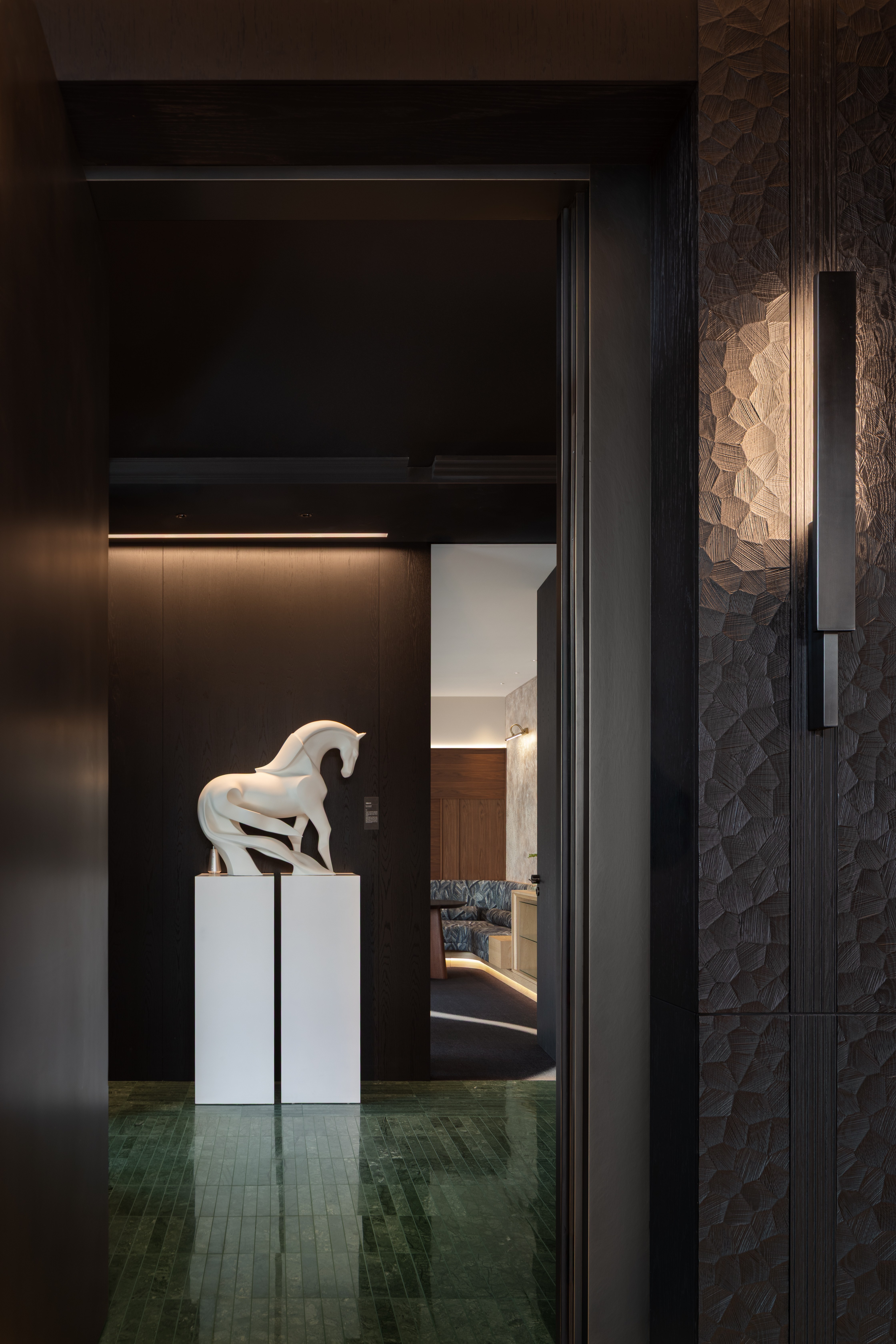 空间意境:空间场景的创新,在于实践 “于极简的框架内,构建极繁的感官诗学” 。整体以沉静的体块与流畅的线条,构筑出一个空明而专注的场域基底。真正的突破在于对细节的叙事性营造:将一处艺术雕塑、一片天然大理石肌理或一件孤品家具,均视为 “空间中的叙事锚点” 。这种设计策略,使每一处感官触点都蕴含内在故事,从而推动奢华体验从视觉表象向深层心灵体验的升华。
