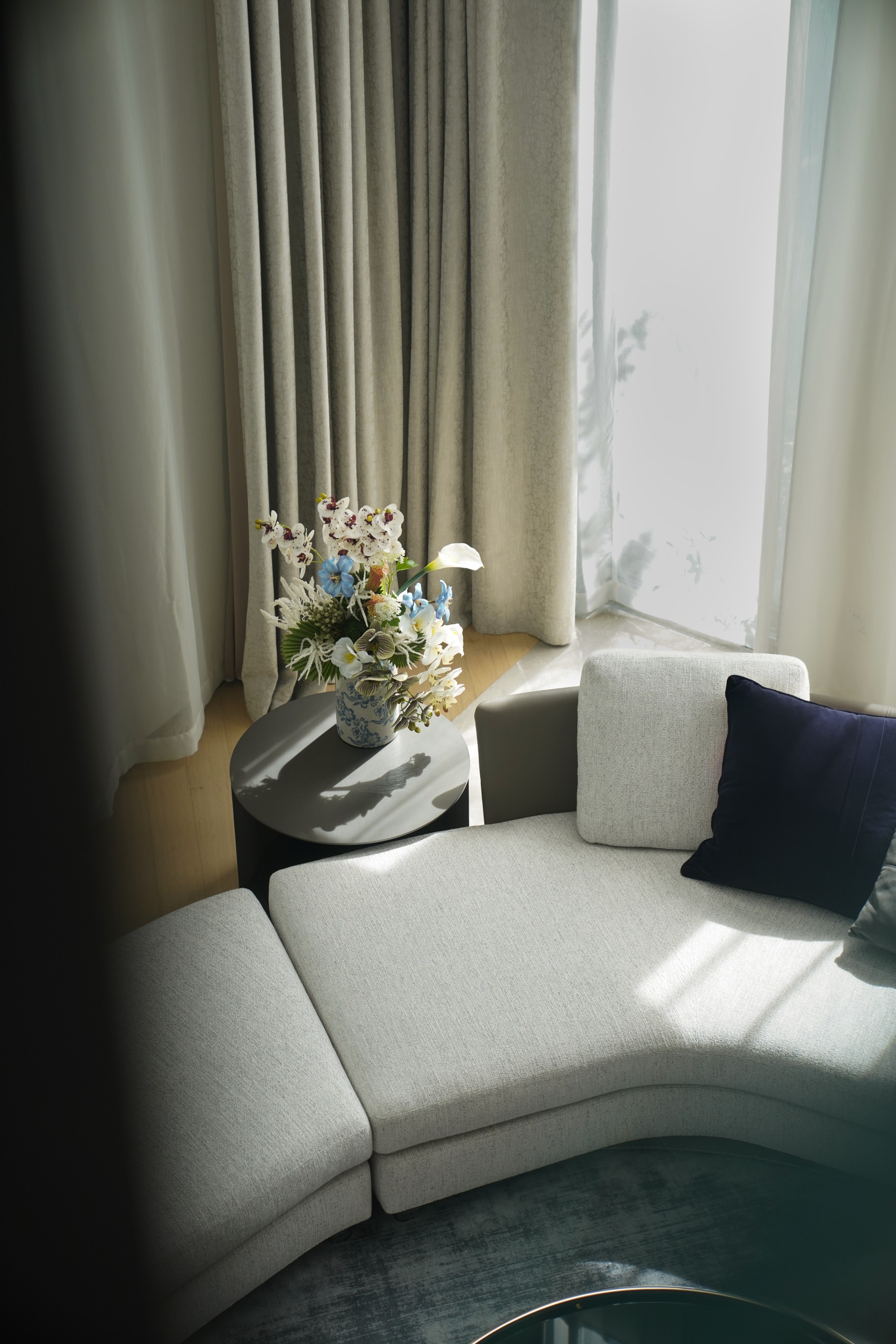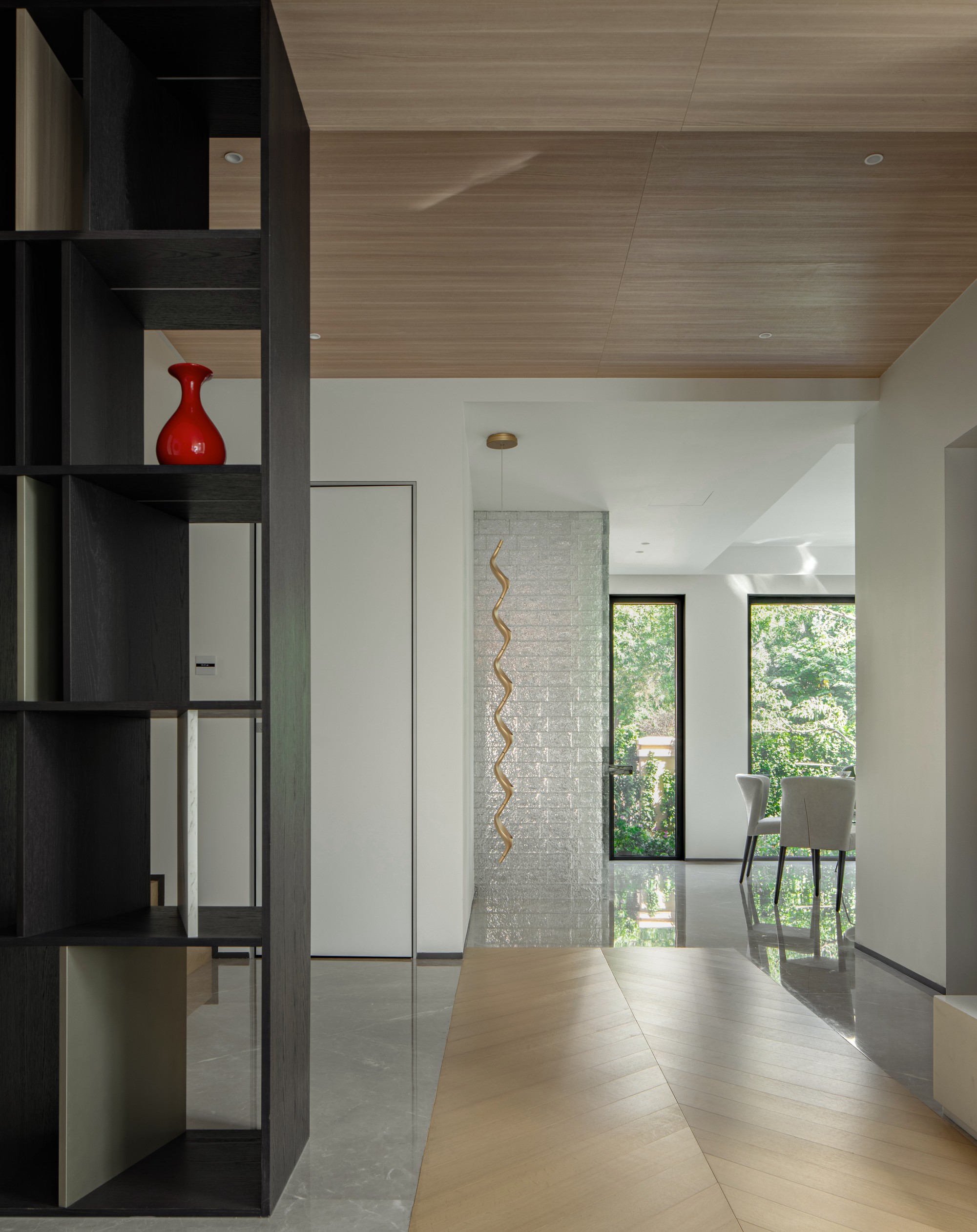 晨光斜影划过墙面,午间光线透过玻璃砖洒落为跳跃的光点,傍晚弧形天窗将霞光延展成柔软光带。光在此被设计、引导,成为最灵动的艺术。
