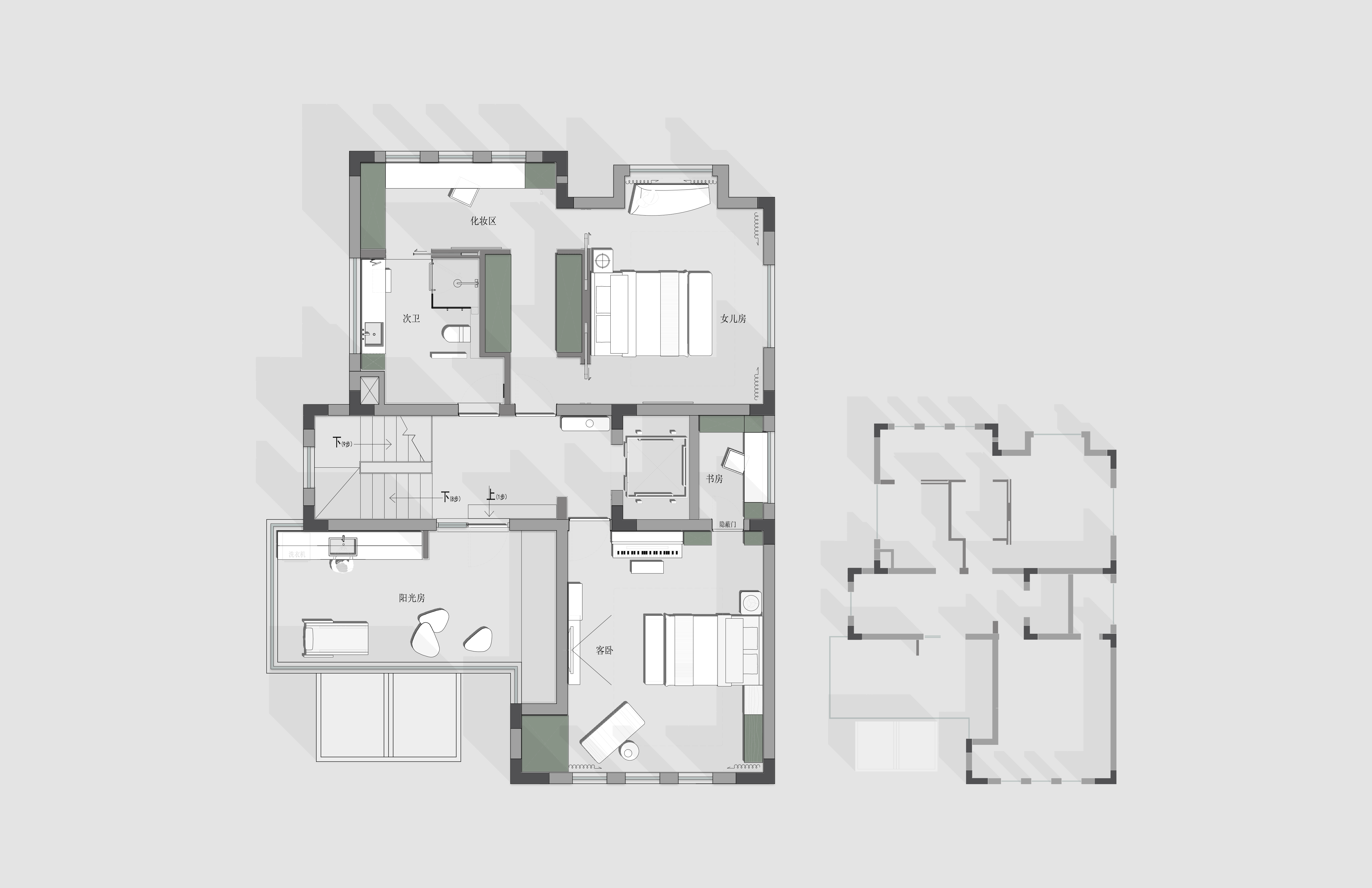 ·格局重组:全面优化三楼,为女儿打造融合睡眠、收纳、学习与卫浴的成长型套房。 -