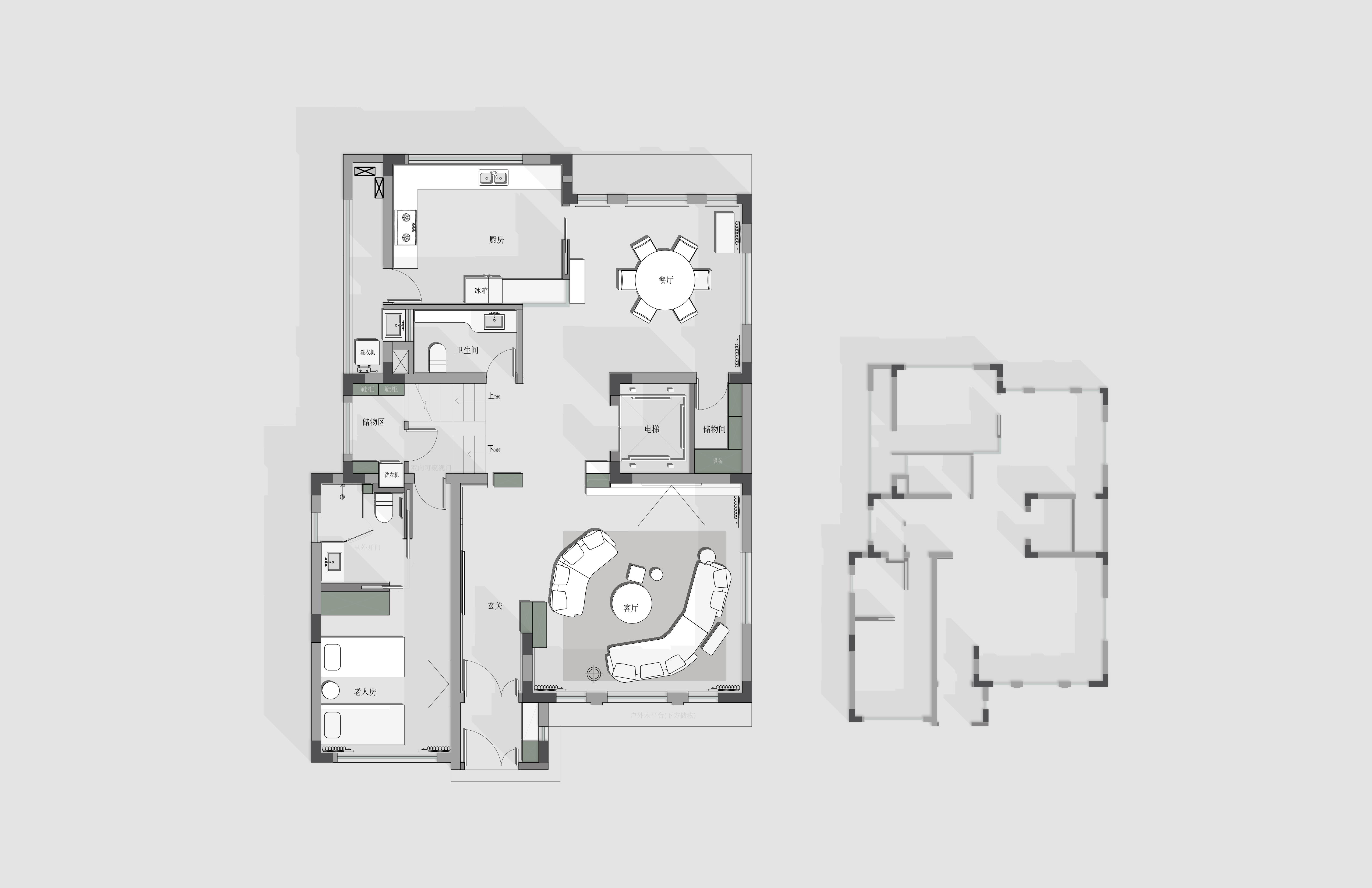 ·功能演进:增设室内电梯,并将车库改造为多功能客房,拓展一层使用场景。