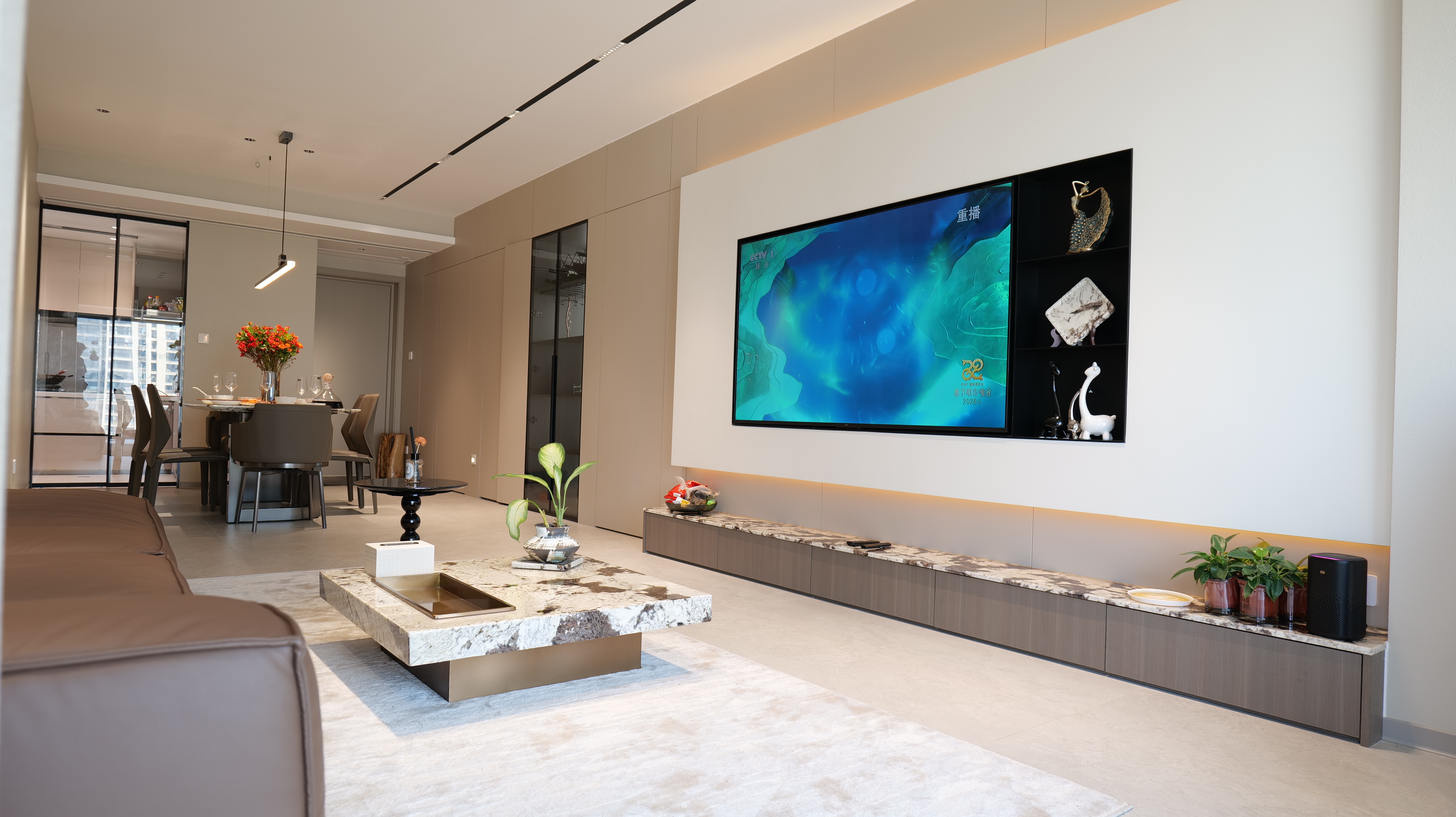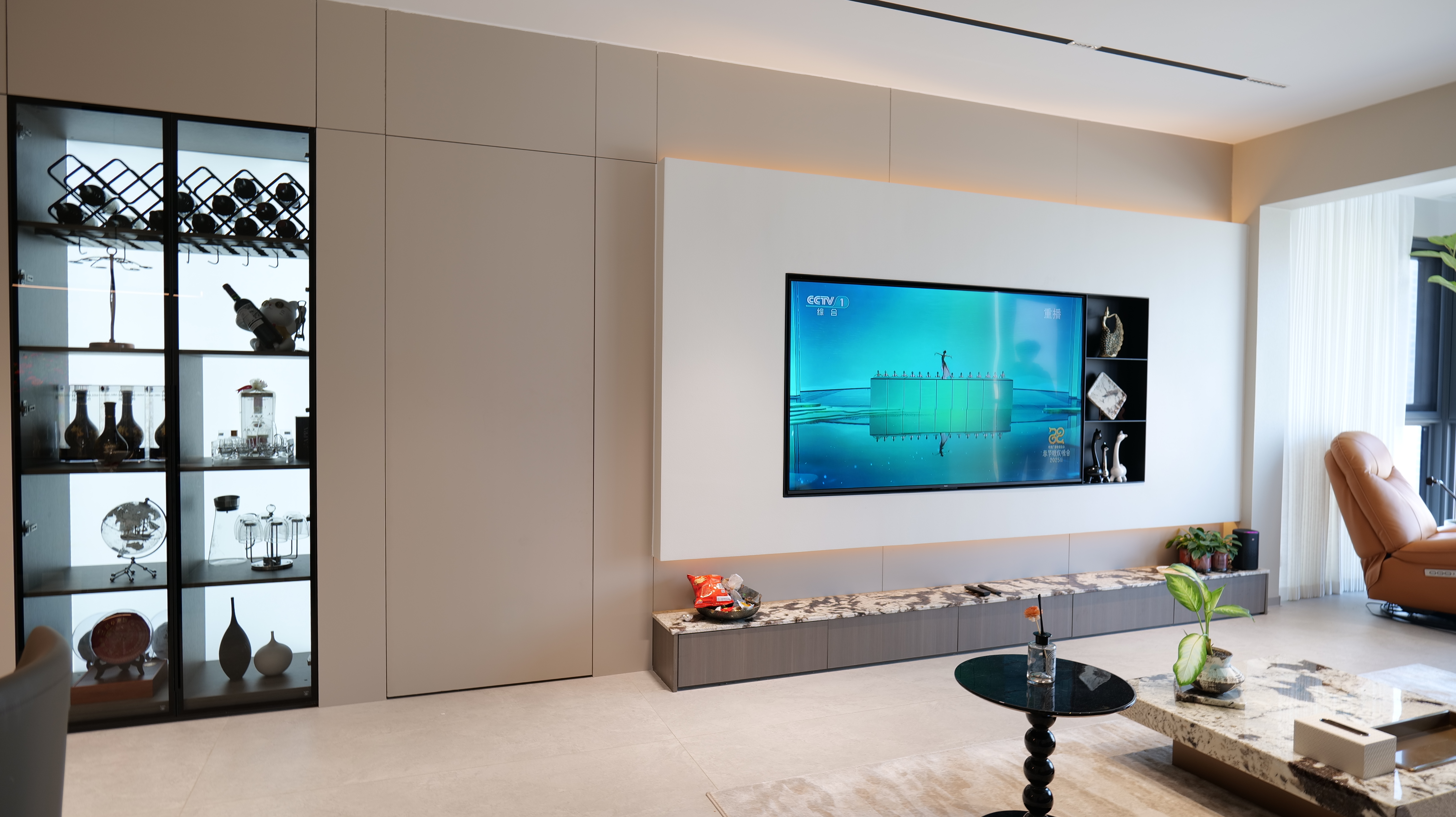 设计选材:将女主人钟爱的石材,从传统的装饰材料提升为空间的结构性艺术元素。通过大面积的、克制地运用,如整面电视背景墙或岛台一体化设计,让石材的天然纹理成为空间的视觉焦点和情感温度的来源,而极简的线条与中性色调则作为背景,衬托其奢华,并确保整体氛围的宁静与高级。而且还用到了 环保石材 厂家加工 现场安装等工序。