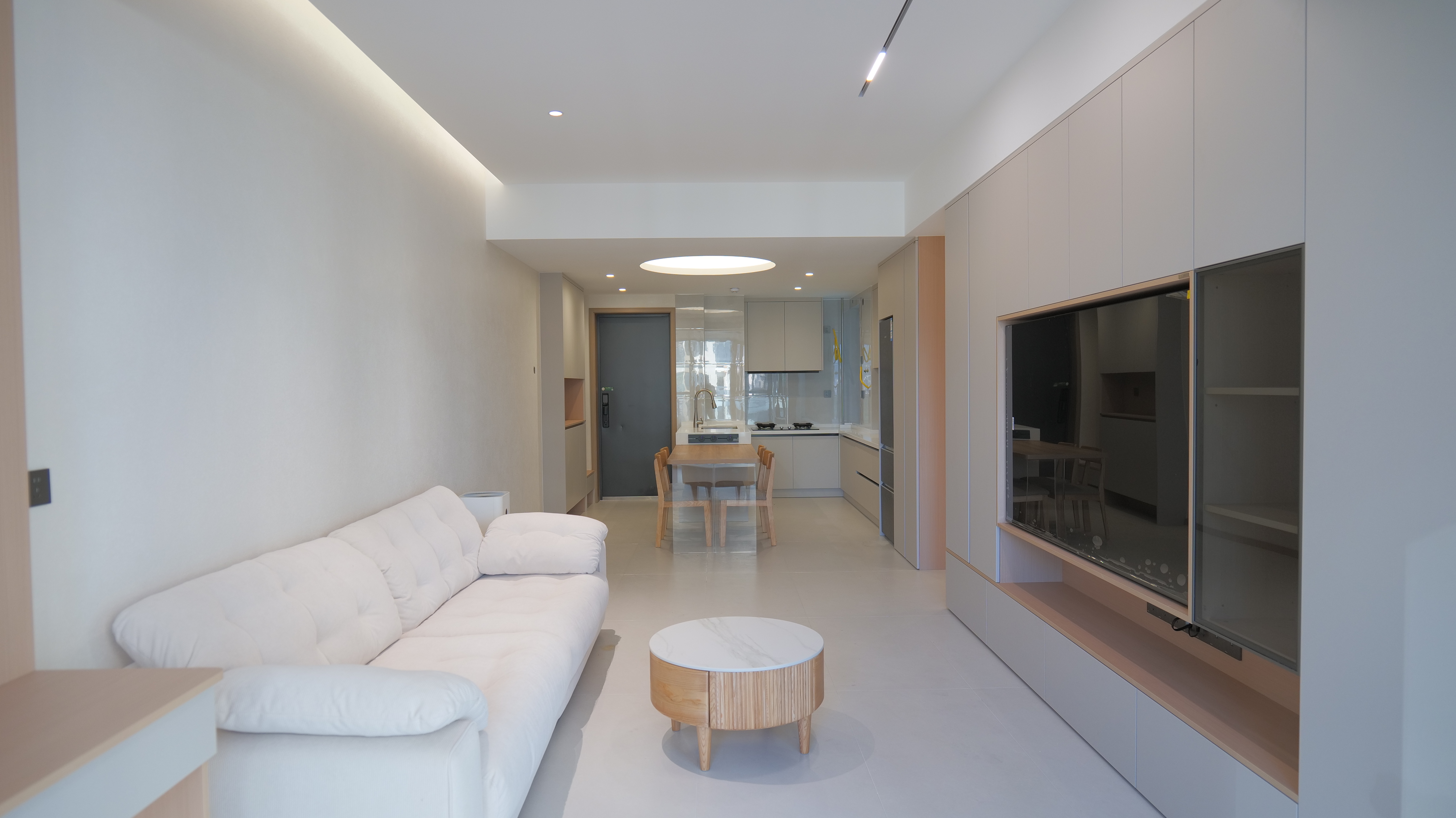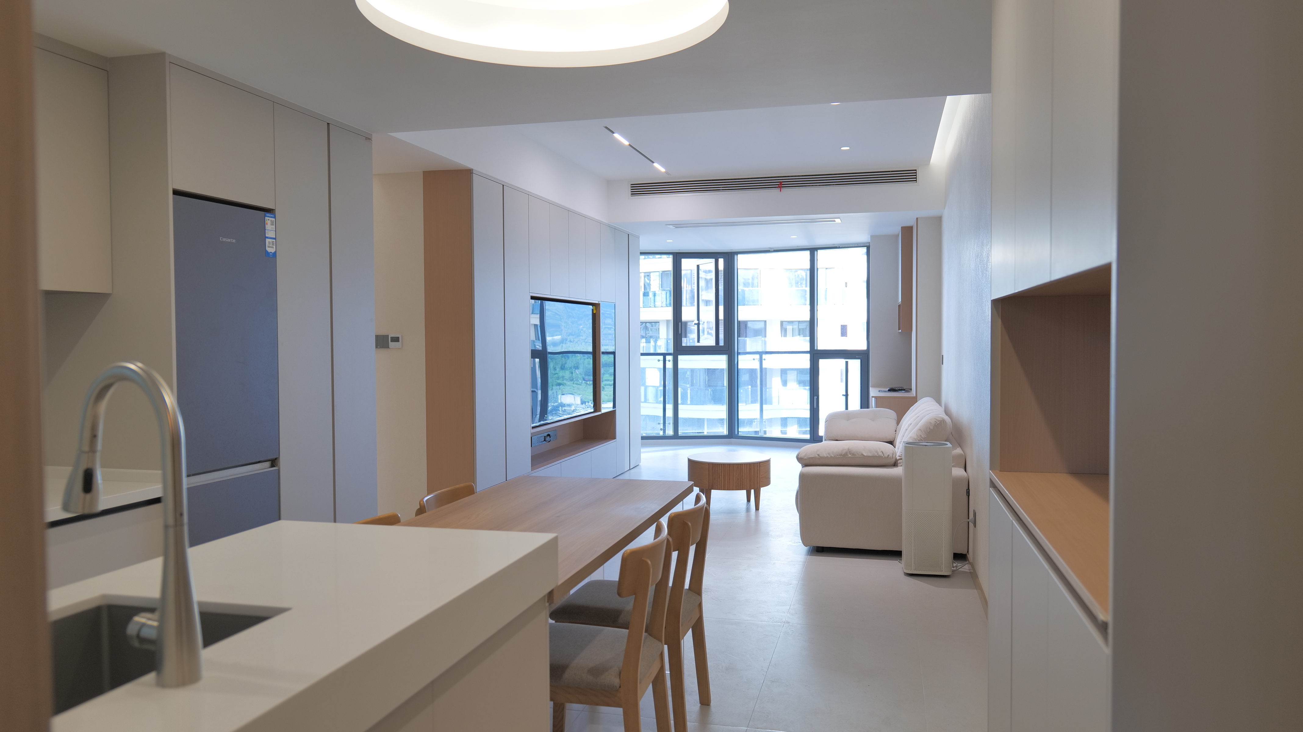 空间意境:打破僵化的房间隔阂,采用弹性模糊边界的设计。如可开可合的联动玻璃门、多功能榻榻米房等,使空间能根据独处、共处、待客等不同模式自由转换,实现“小空间,大气象”的流动格局。