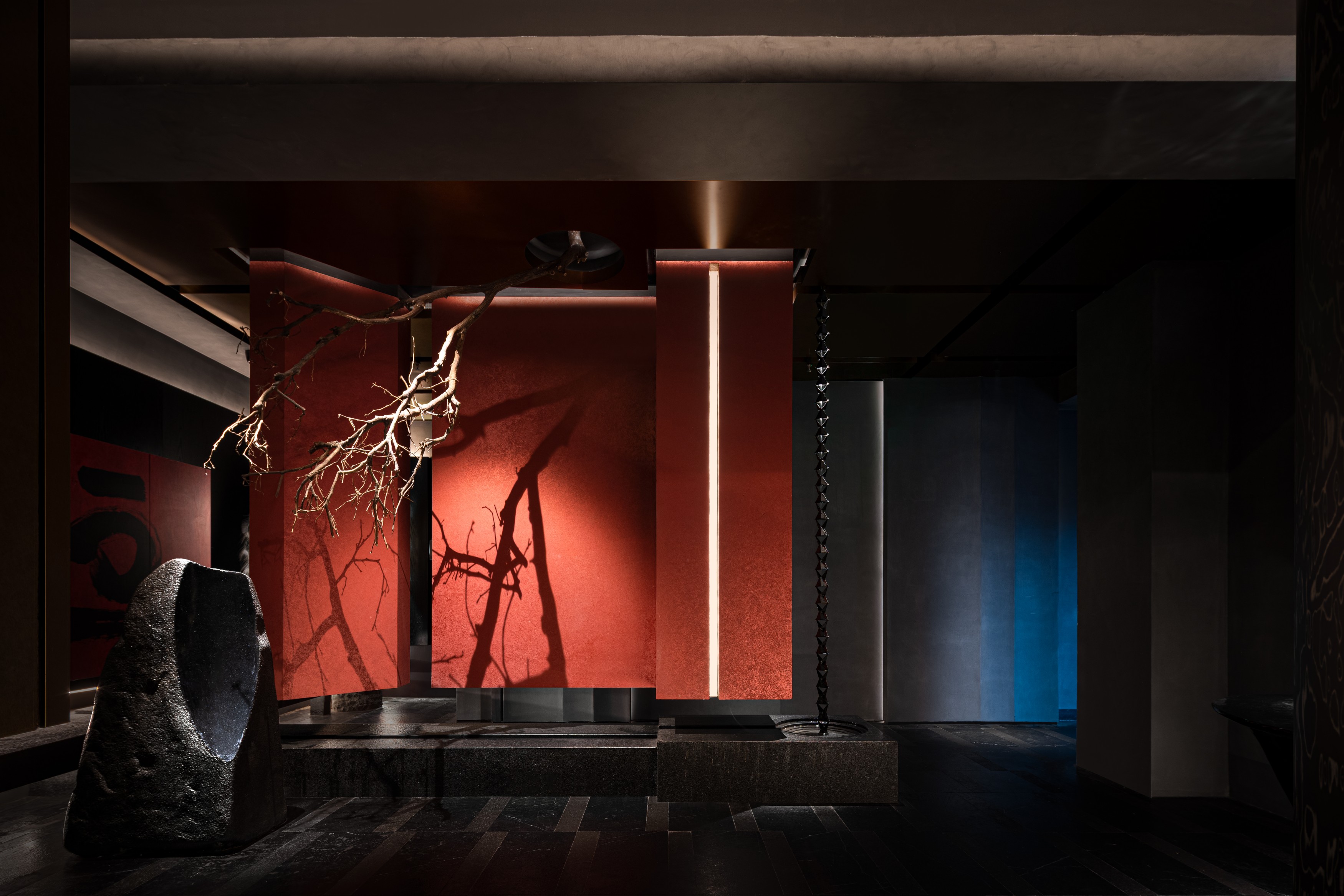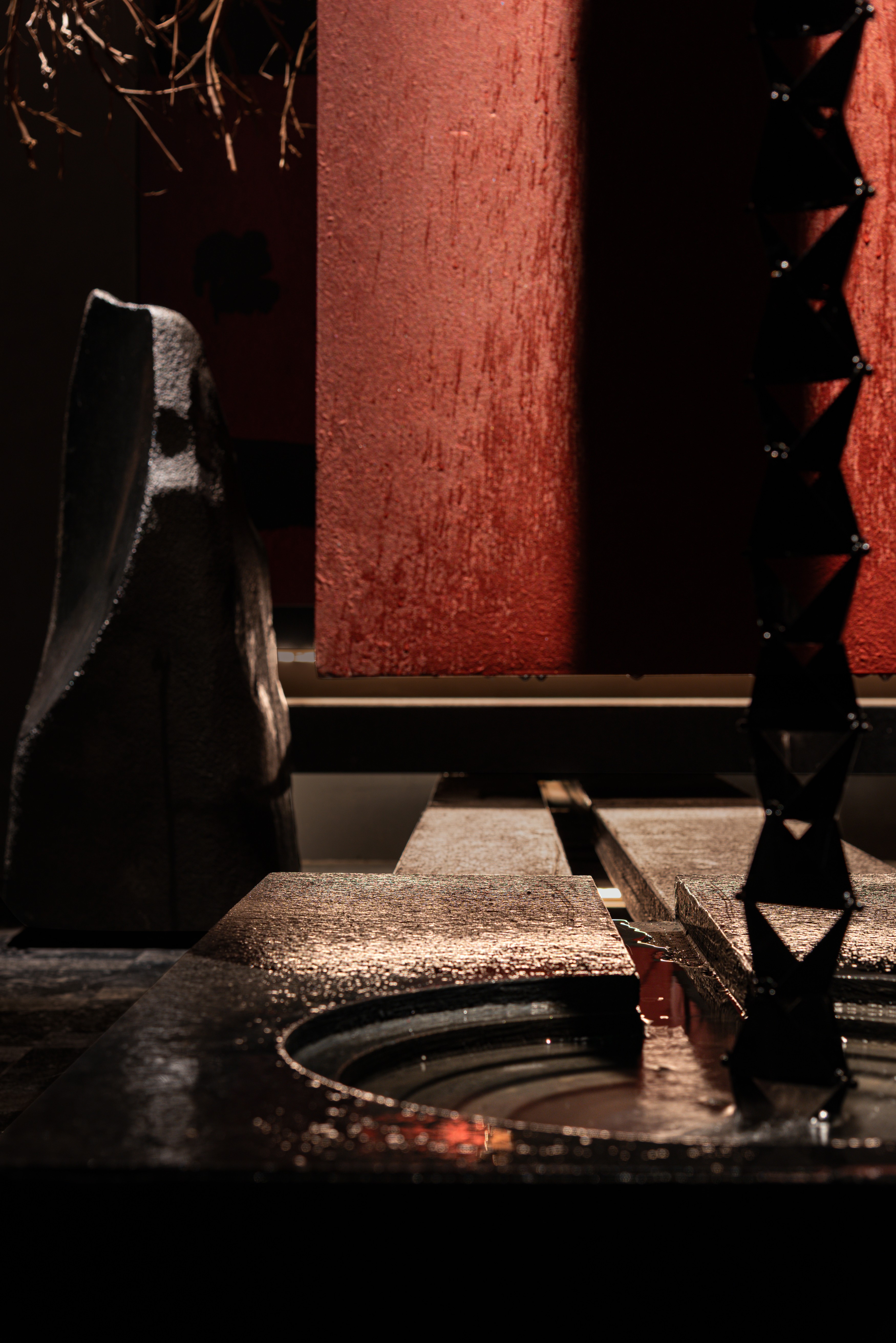 在“五韵筑魂、暗色为骨”的展厅中 解构传统与现代、商业与艺术 功能与意境之间的壁垒 我们超越形式的表达,回归美学内核 不是元素堆砌,而是意境营造 不是视觉冲击,而是心灵触动