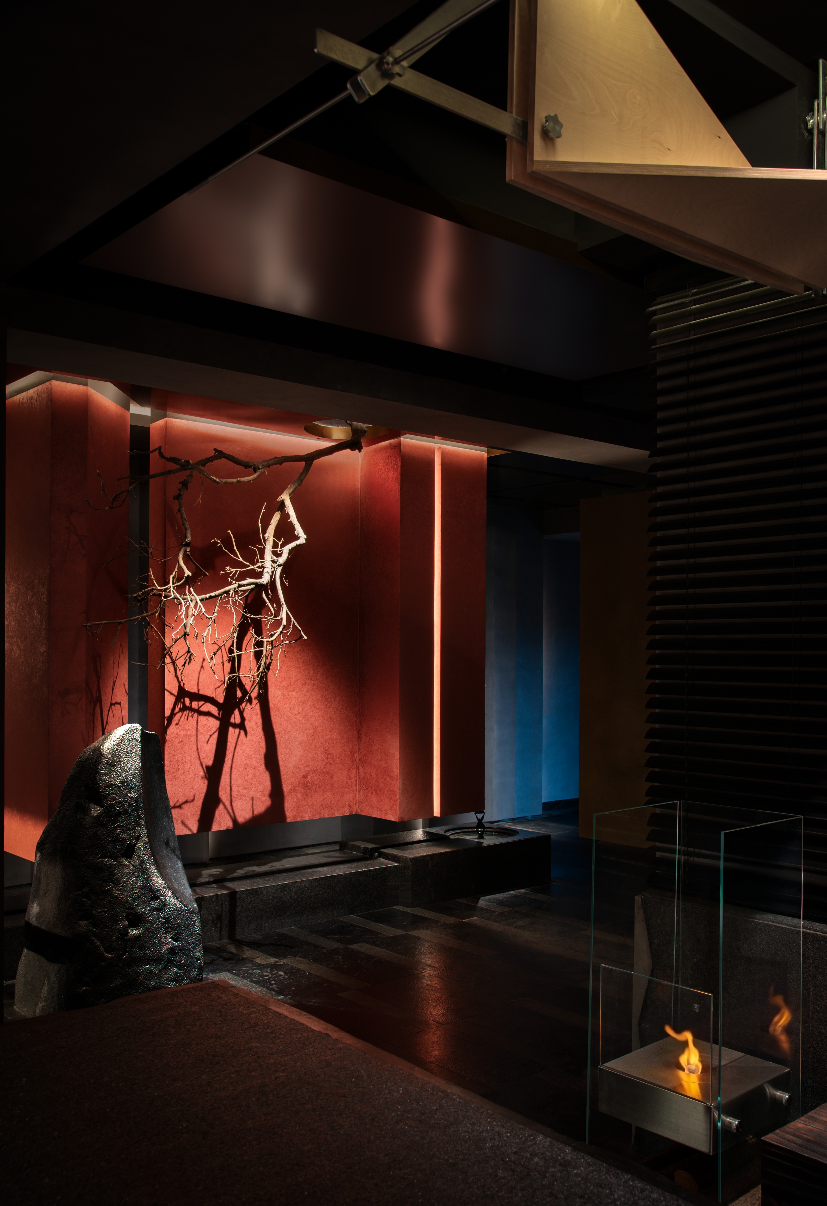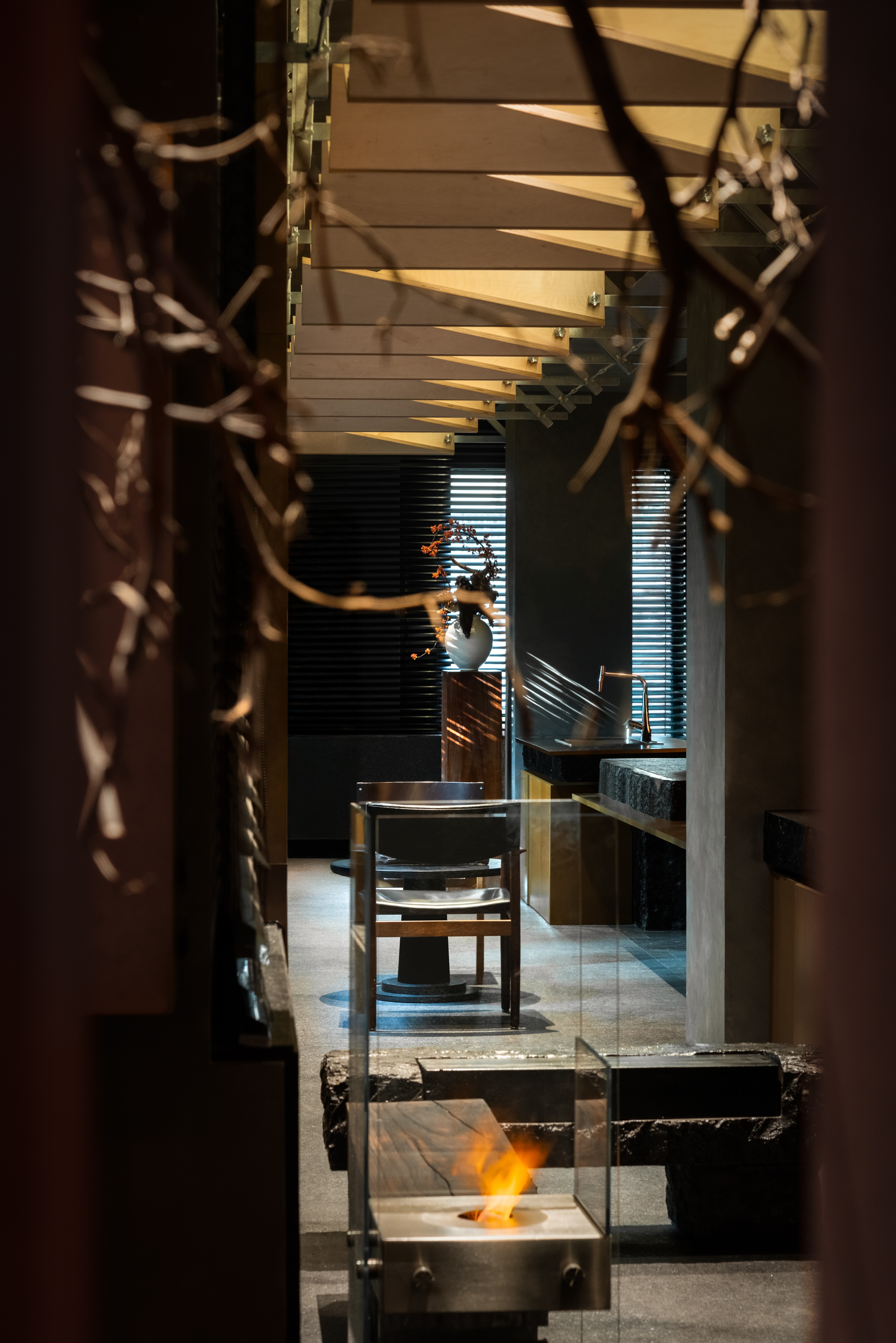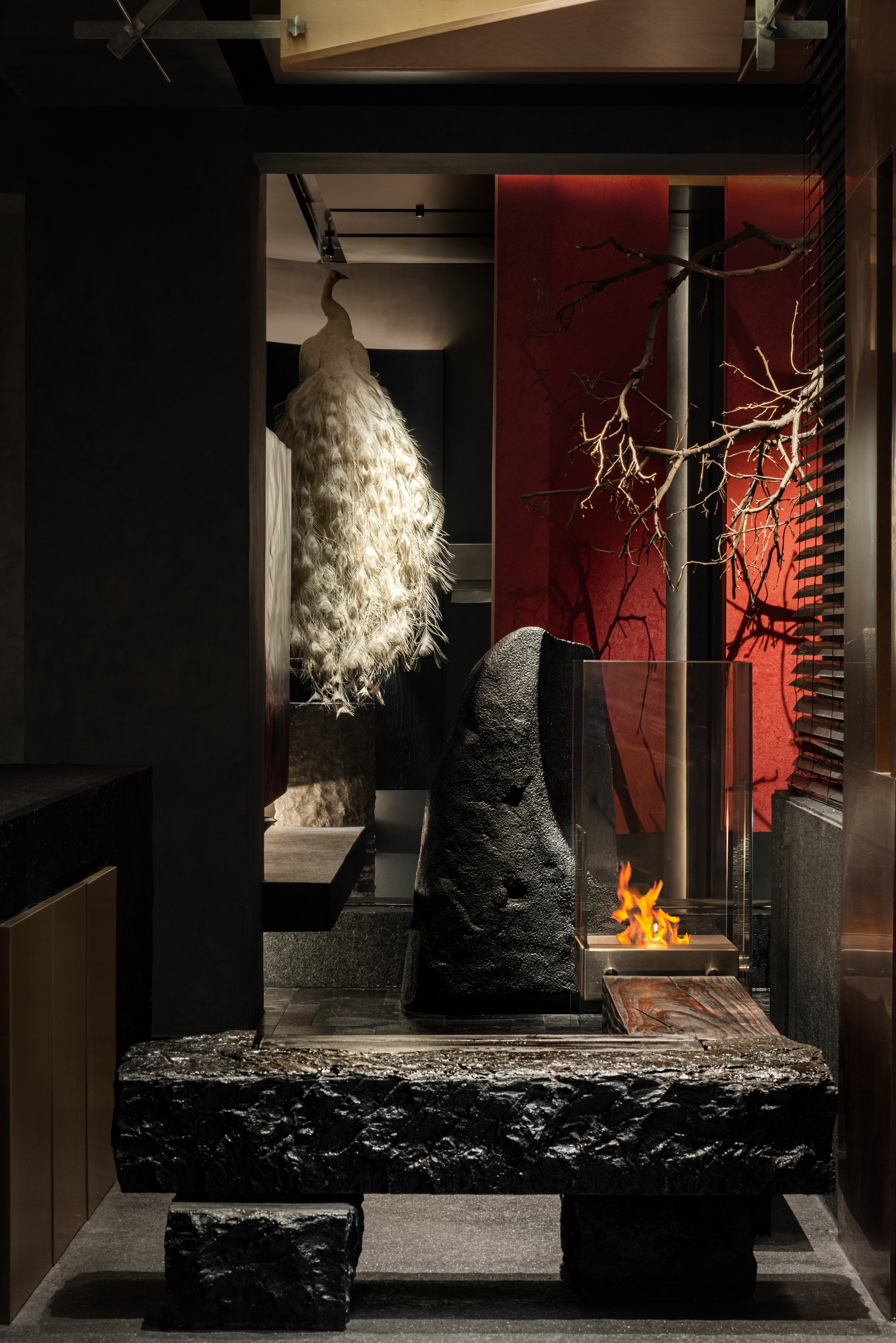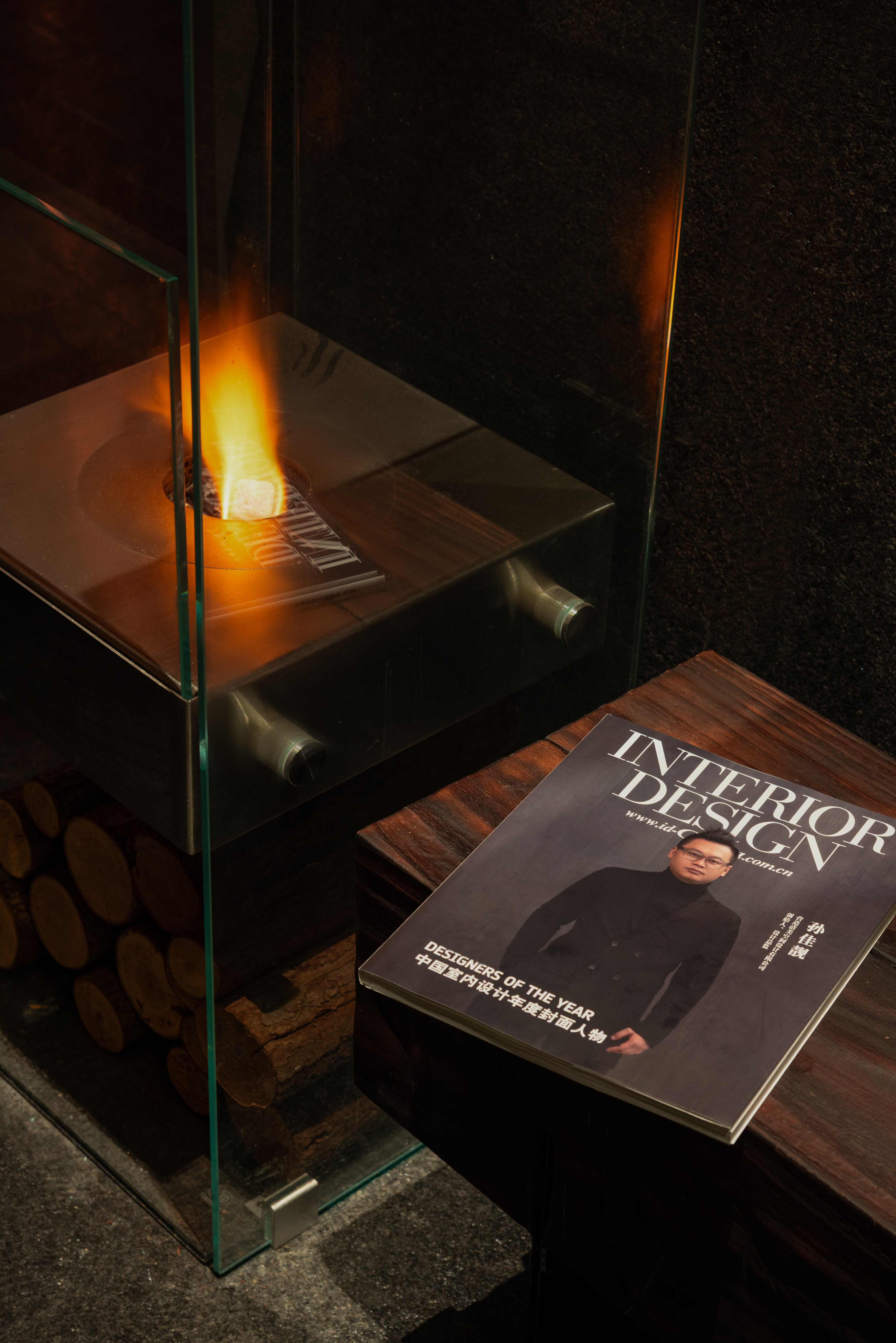 火 · 温润之光 红色如墨色中的朱砂,点燃空间张力 酒精壁炉静燃一团温火,不炽不烈 却照亮整个场域的精神温度,暖意从容
