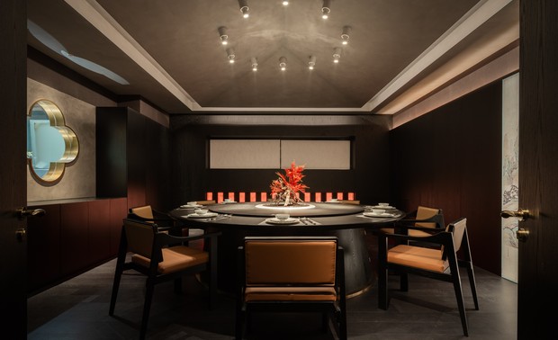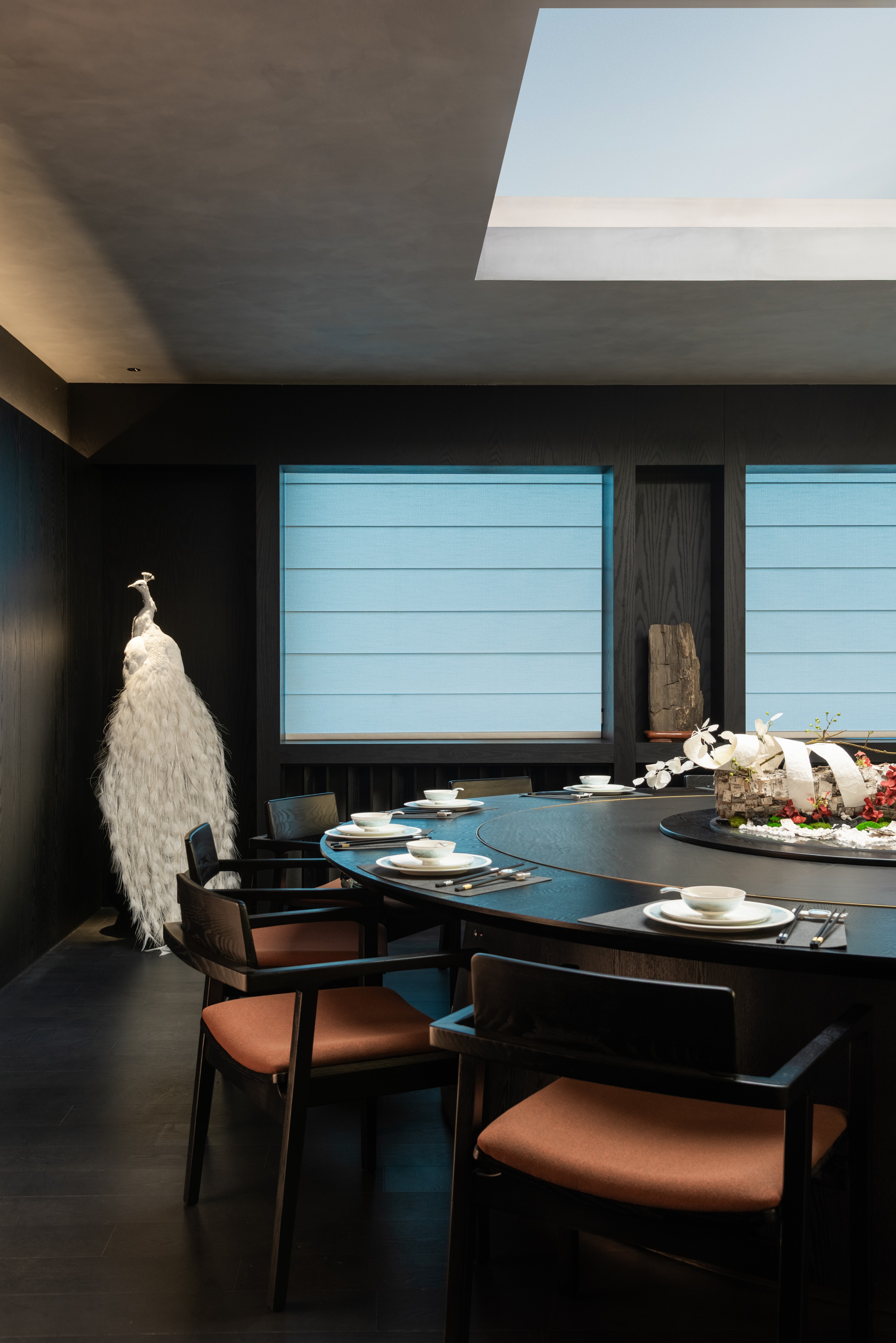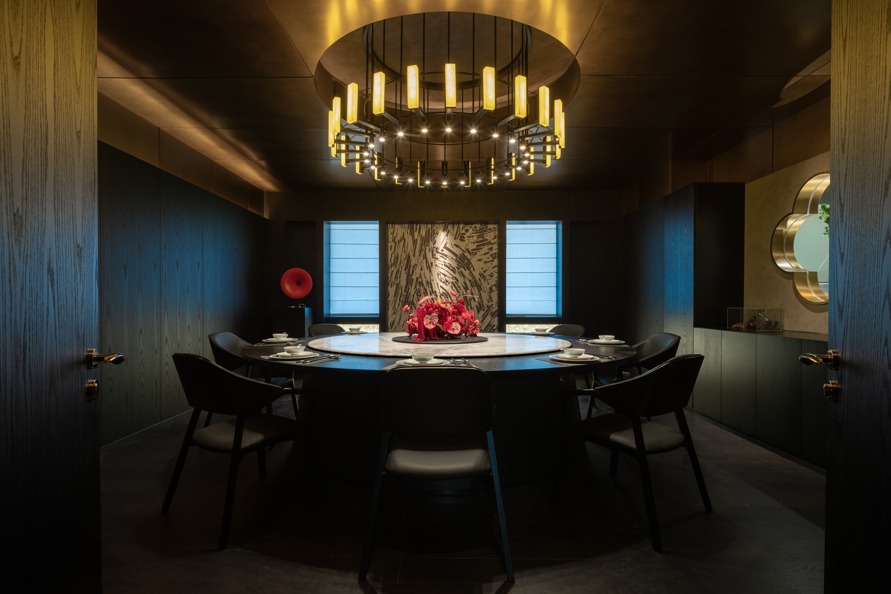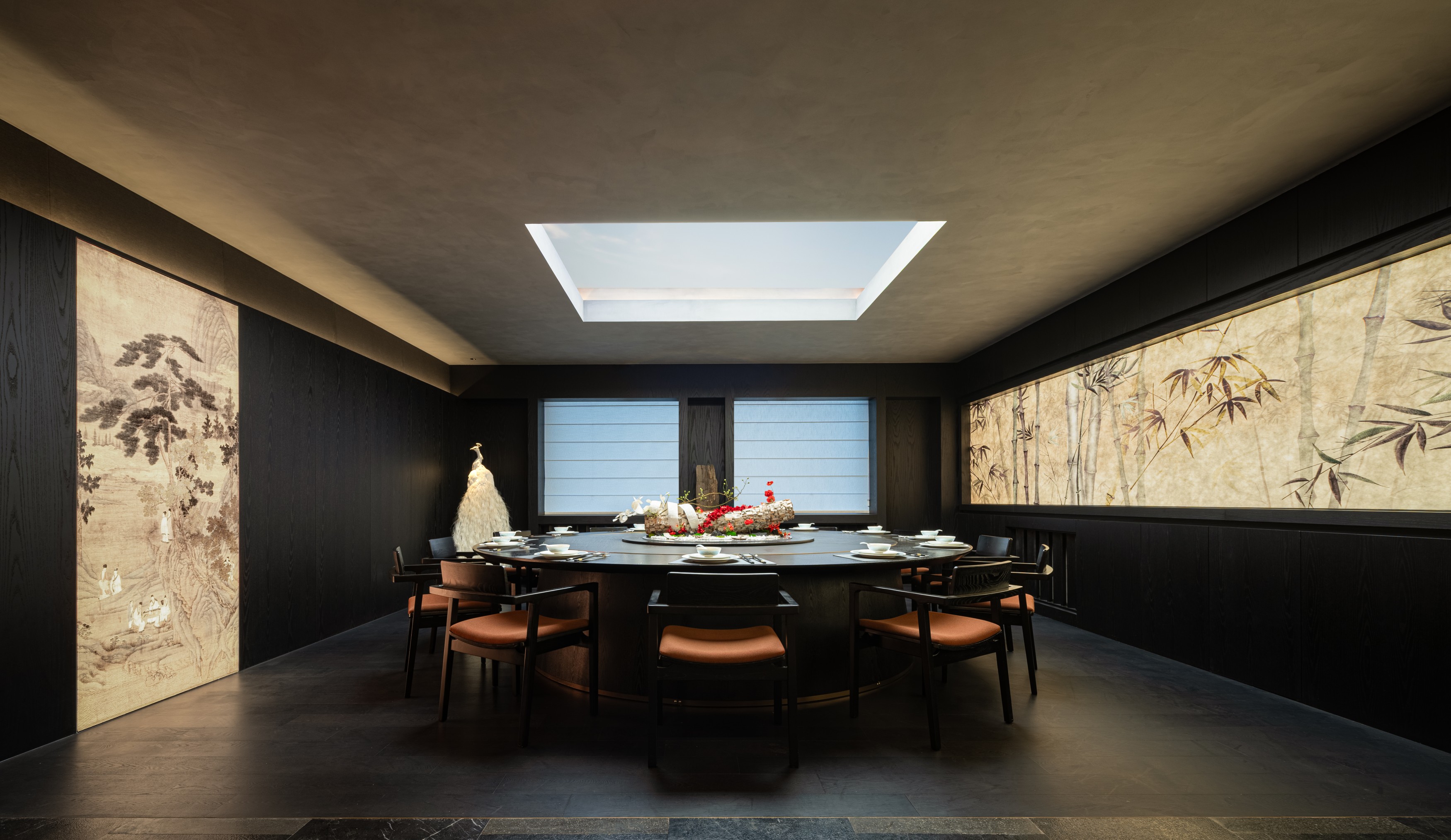 大包间|木影摇光,长卷卧游 圆桌方顶,暗合“内圆外方”的传统宇宙观 构筑出稳定而包容的场域气场