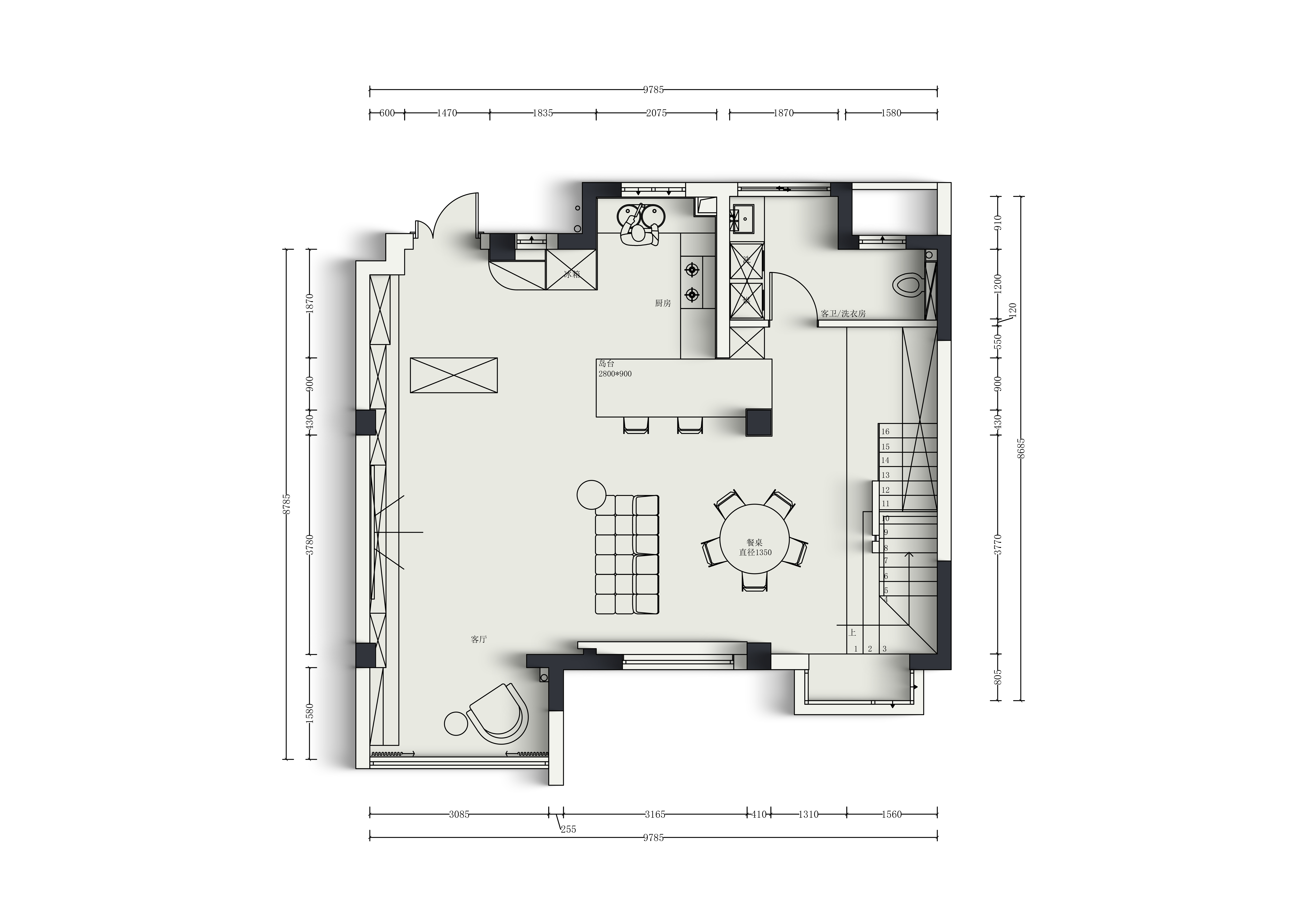 项目定位:本案以“自由舒展”为核心理念,对299㎡别墅进行空间重构。通过拆除非承重墙、重组动线系统,打破传统空间界限,构建光、空气与生活场景自由流动的整体。在极致黑白灰的基调中,巧妙融入艺术元素与个性表达,实现极简美学与生活温度的完美平衡。