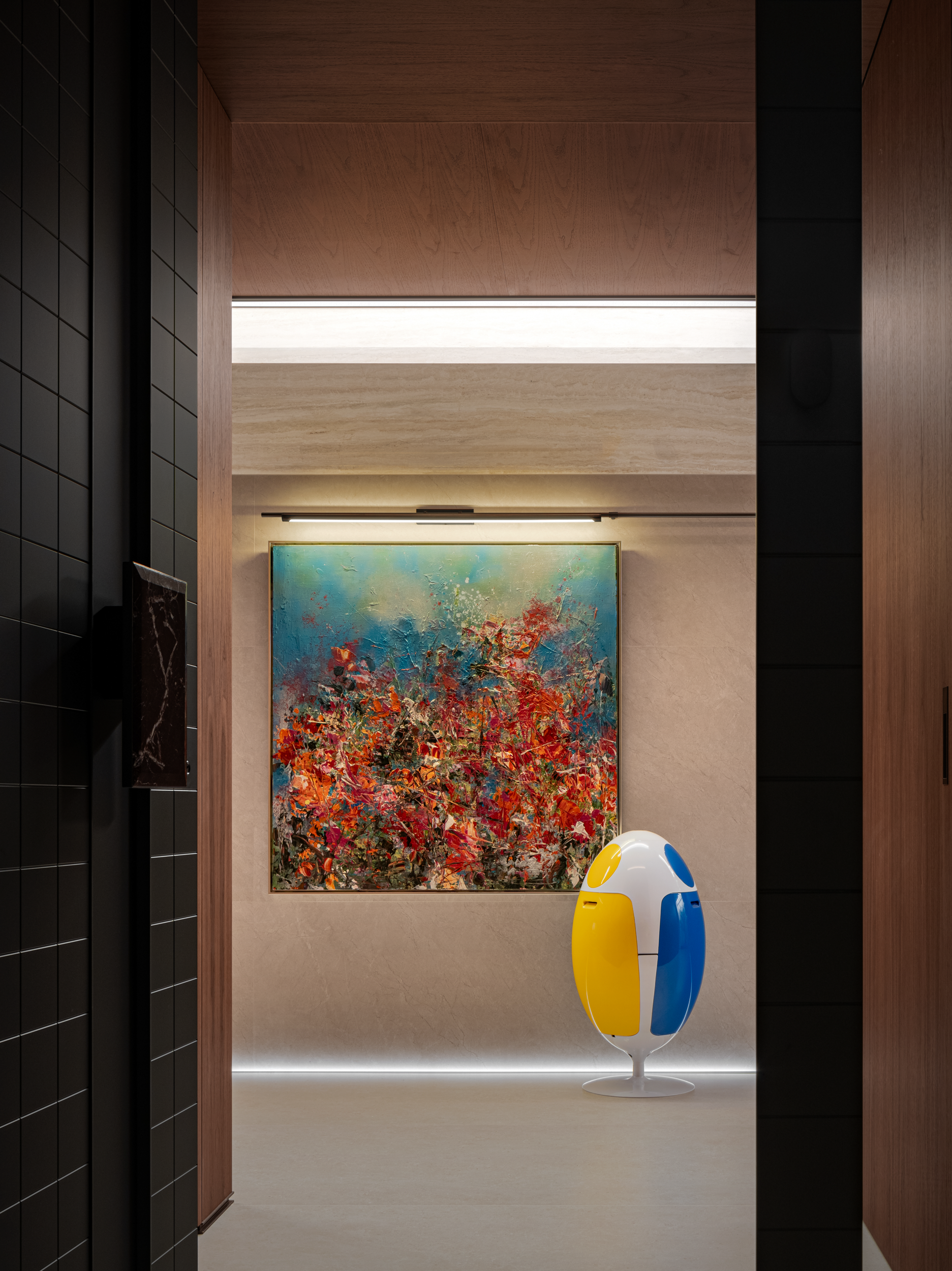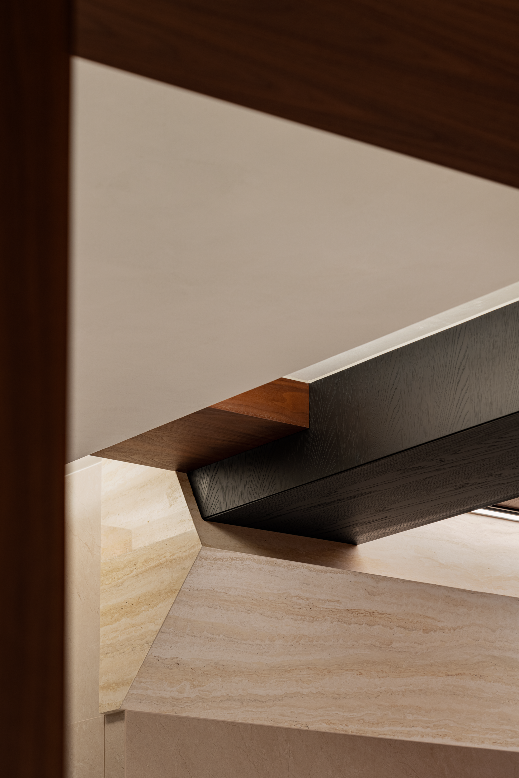 我们从未试图定义“完美”。木的温润与玻璃的冷冽共存,手作岩板的肌理与金属线条的锐利对话,正如父母包容女儿的艺术天马行空,丈夫接纳妻子的浪漫果敢。当我们剥开设计的华丽外衣,看见的不过是两代人用空间编织的—“我懂你的偏爱,你也尊重我的热爱”。