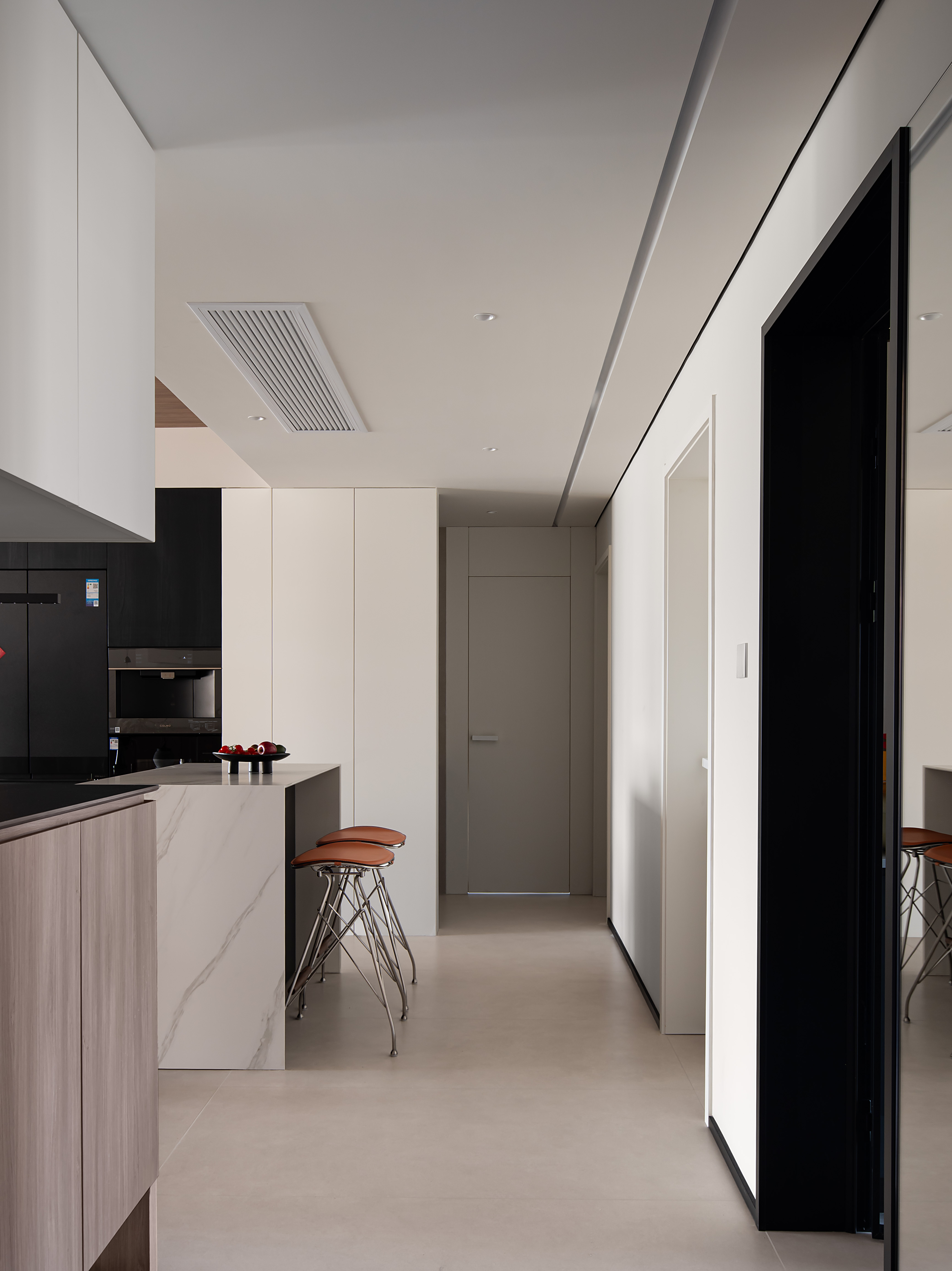 空间意境:该空间在现代简约基底上,通过材质碰撞、动线融合、细节叙事三大维度实现风格创新,打破传统简约风的单调感,塑造出兼具质感与温度的都市居住场景。