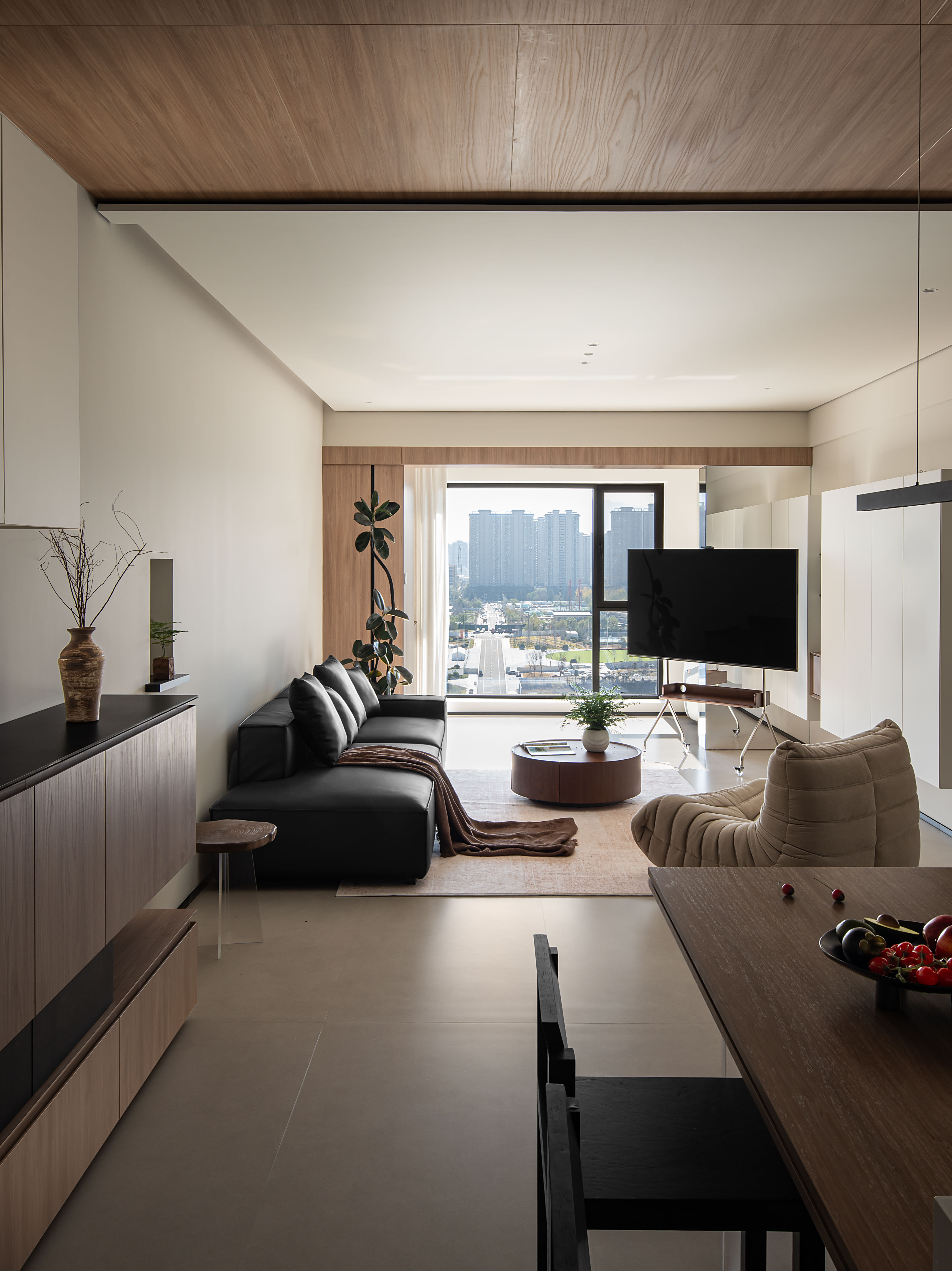 2. 风格定位:融合现代简约与自然侘寂的调性,以原木、微水泥等自然材质为基底,搭配低饱和度的色彩与极简的线条,弱化装饰性,强化空间的通透感与呼吸感。