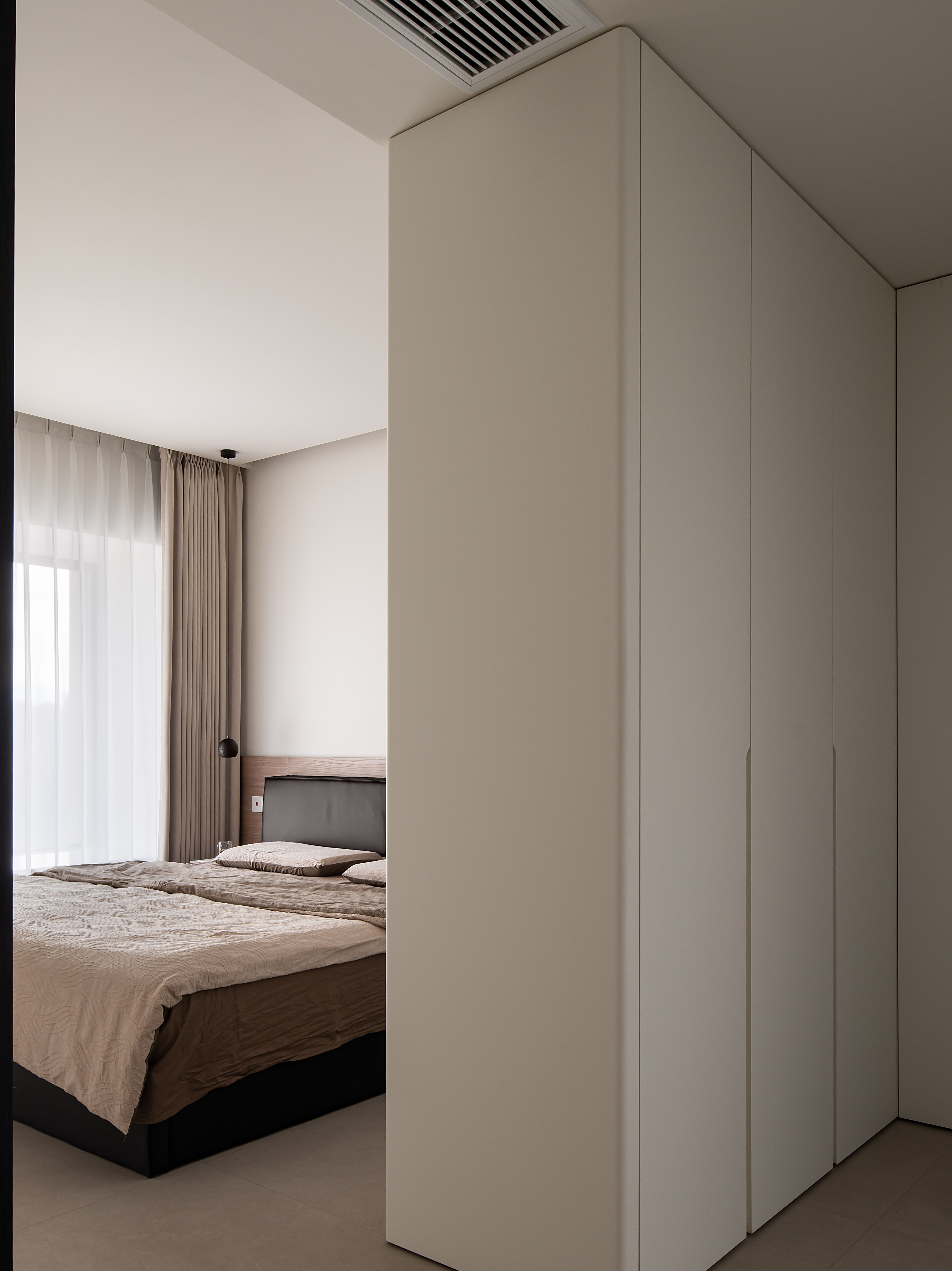 采用全屋地暖+新风系统的组合设计,搭配瓷砖地面的恒温特性,避免冬季冰冷的体感;同时通过双层中空玻璃隔绝外界噪音,结合无主灯的柔和漫射光设计,让空间保持“静音+柔光”的舒适氛围,契合用户归家后放松身心的需求。