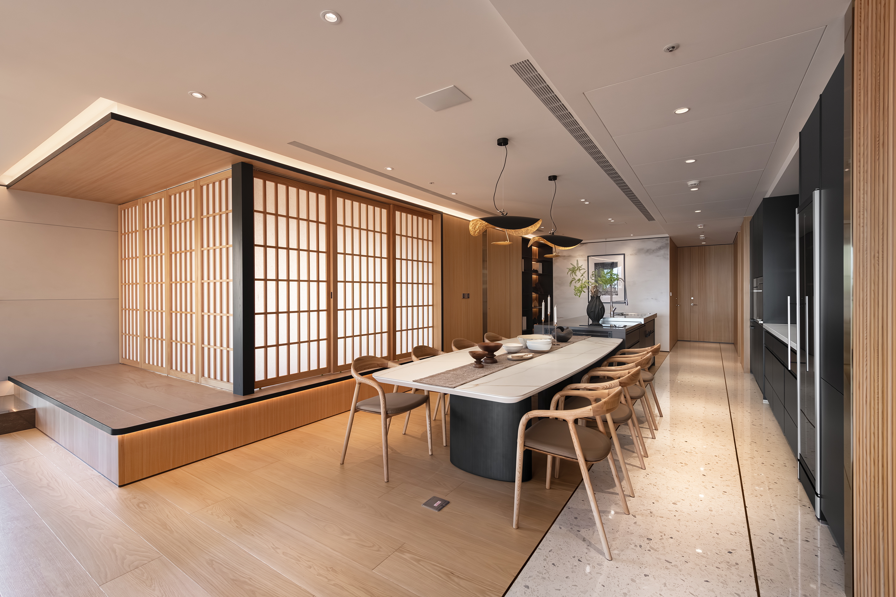 用户体验:設計讓這個家在開放與獨立間取得良好的平和,以公區和和室成為住宅的多功能核心,動線清晰、活動自在,退休後的日常不僅舒適,也能在聚會時保持私密與安定感,整體來說氛圍非常放鬆舒適。