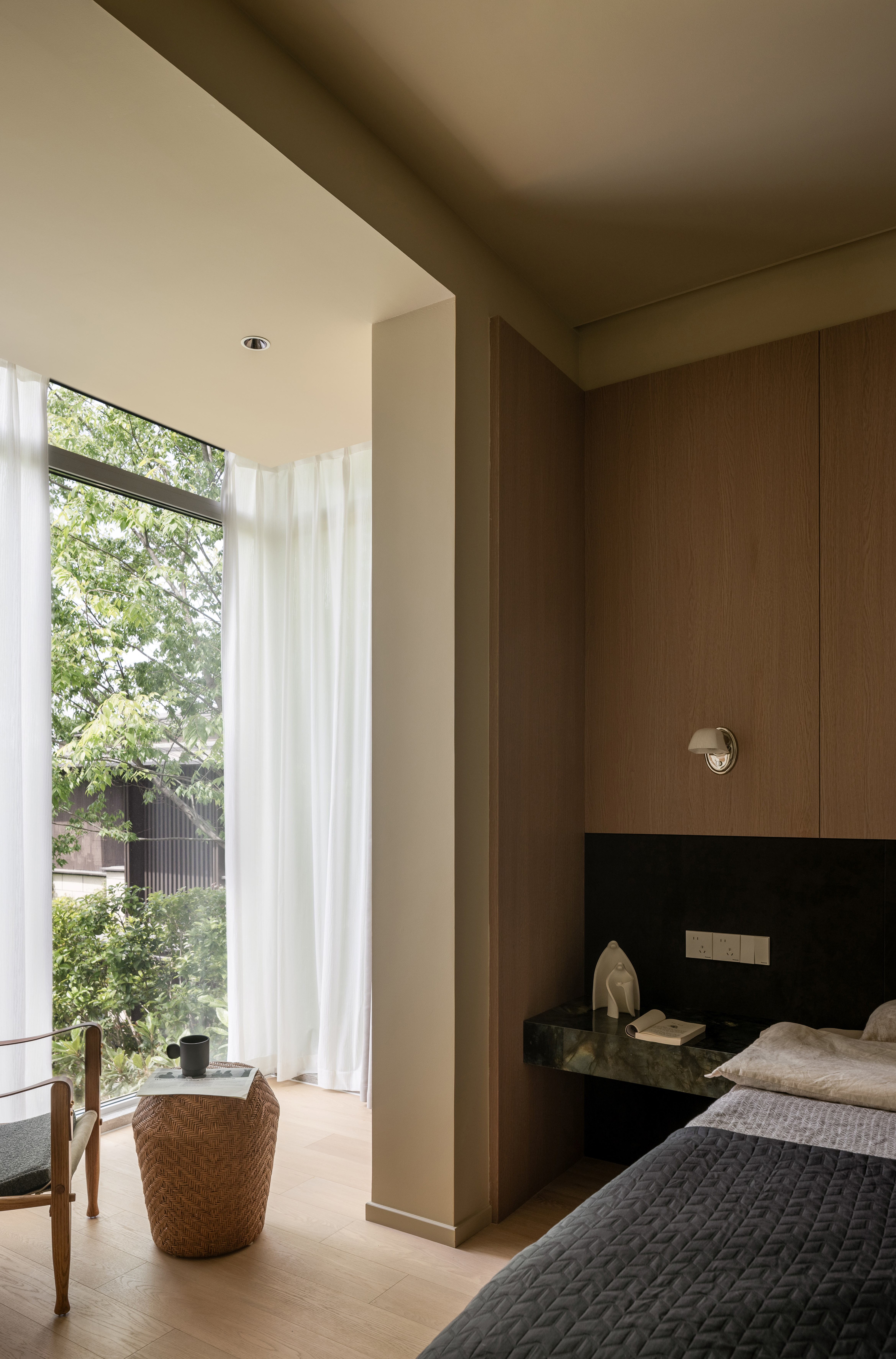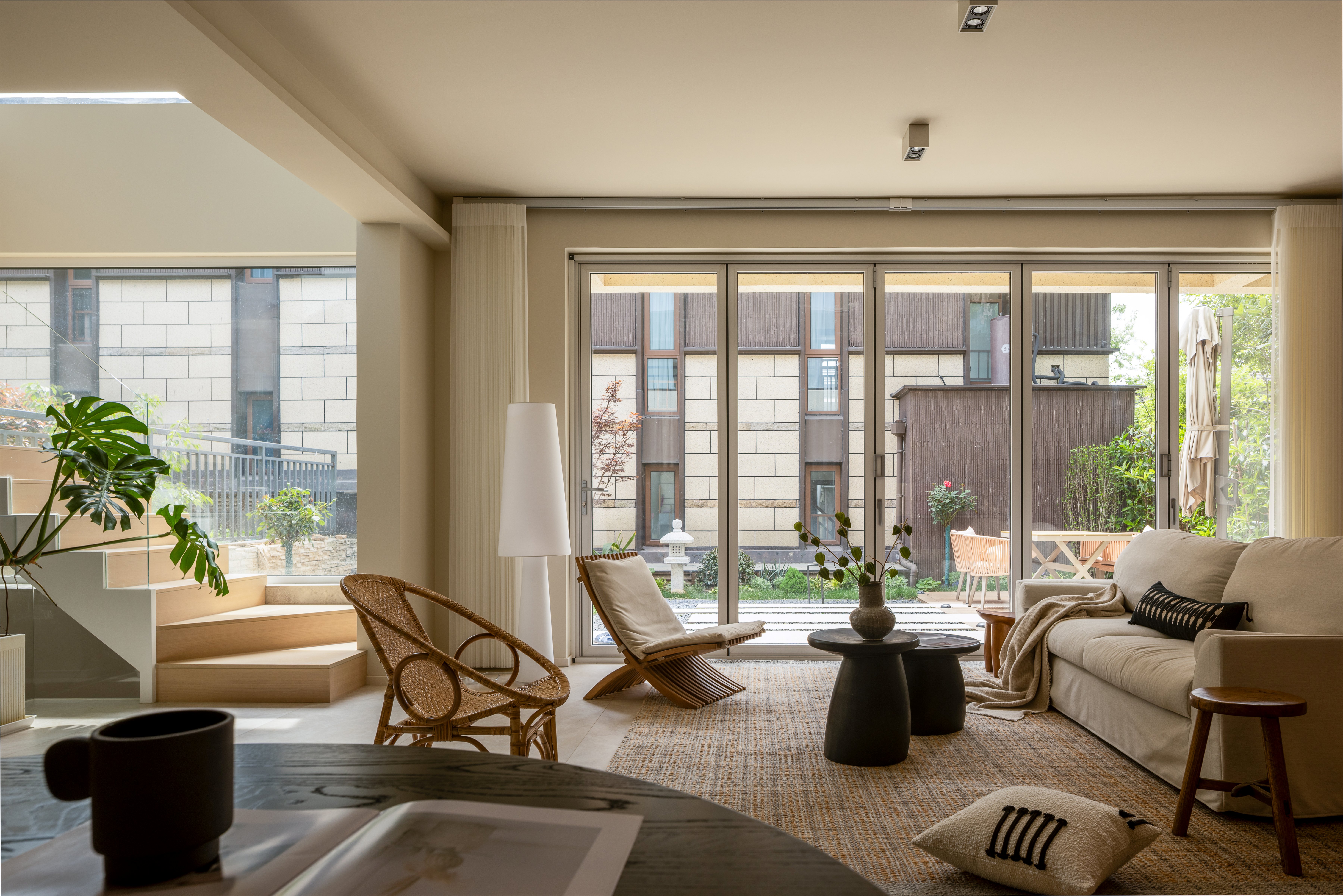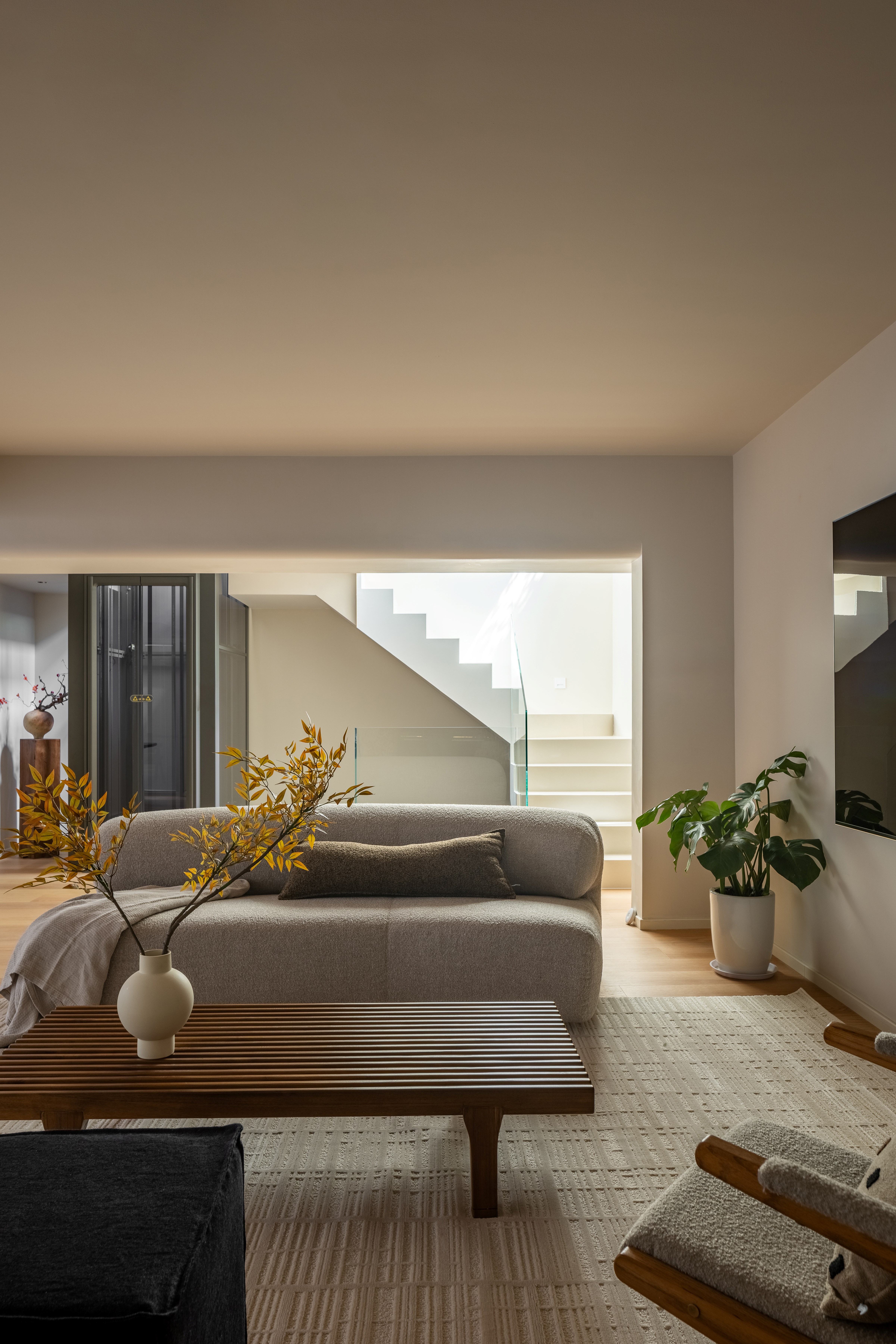 空间意境:创新营造“引景入室的光影墅居”。设计最大化利用宝华山景资源,通过大面积通透界面将庭院绿意与山峦框景引入室内。重点攻克地下室采光难题,通过天井与楼梯井巧引天光,颠覆传统地下室的昏暗印象,让自然光影成为空间最生动的装饰,营造出明亮、宁静且与自然对话的整体氛围。
