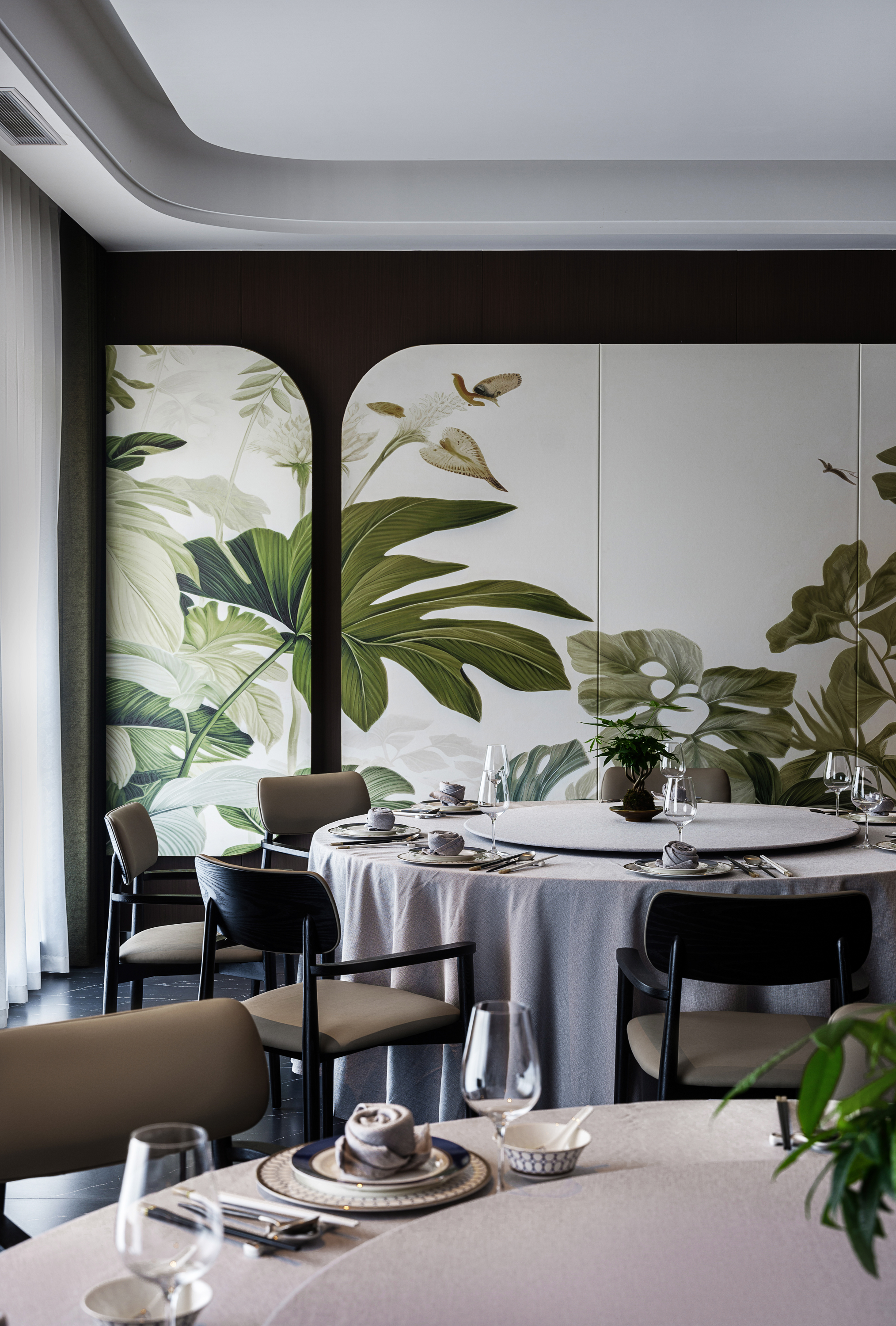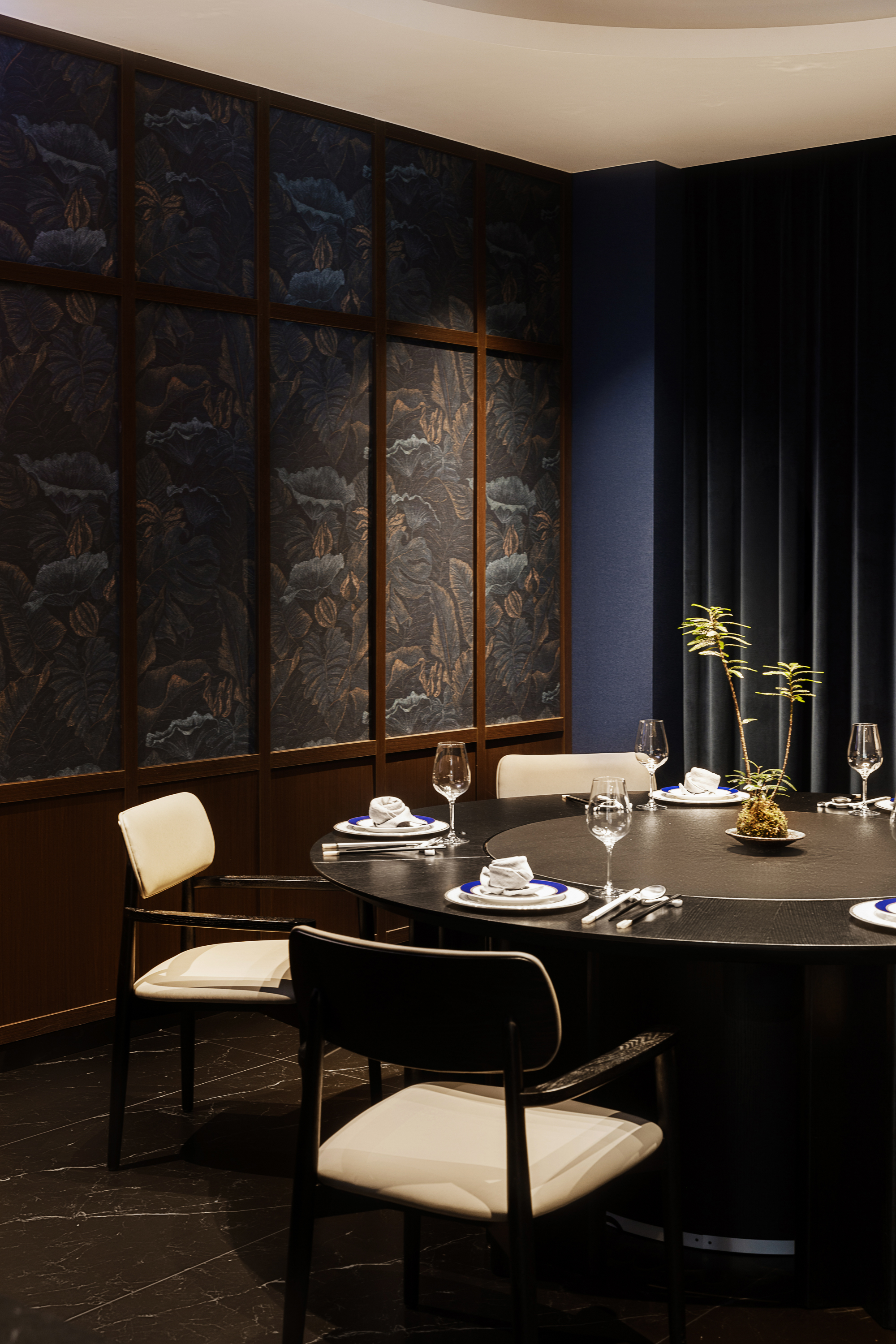 年轻人小聚的清新花草墙、湛蓝色调典雅宴厅、可开合隔断的多功能包厢(一室两用),兼顾私密性与灵活性。
