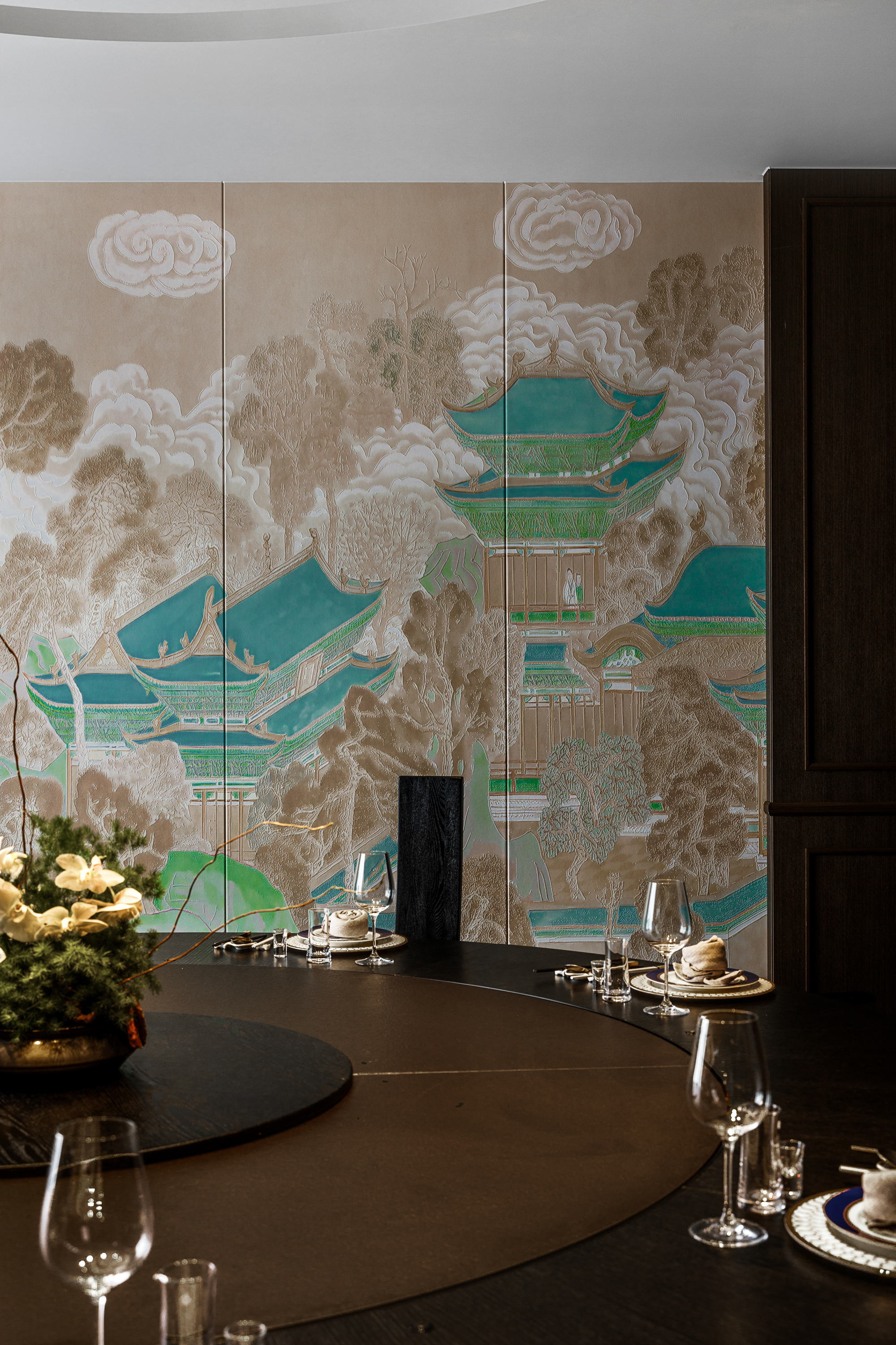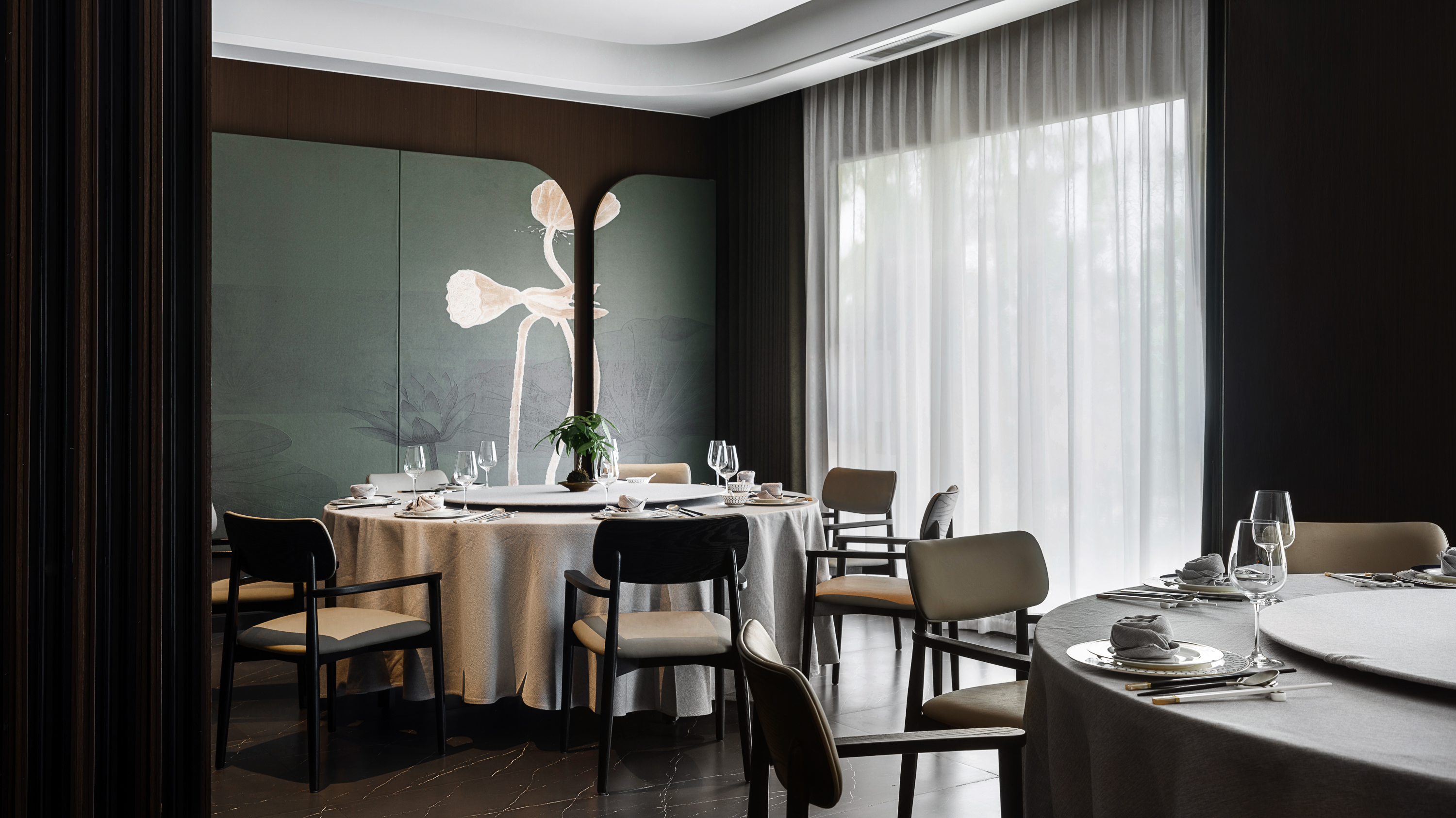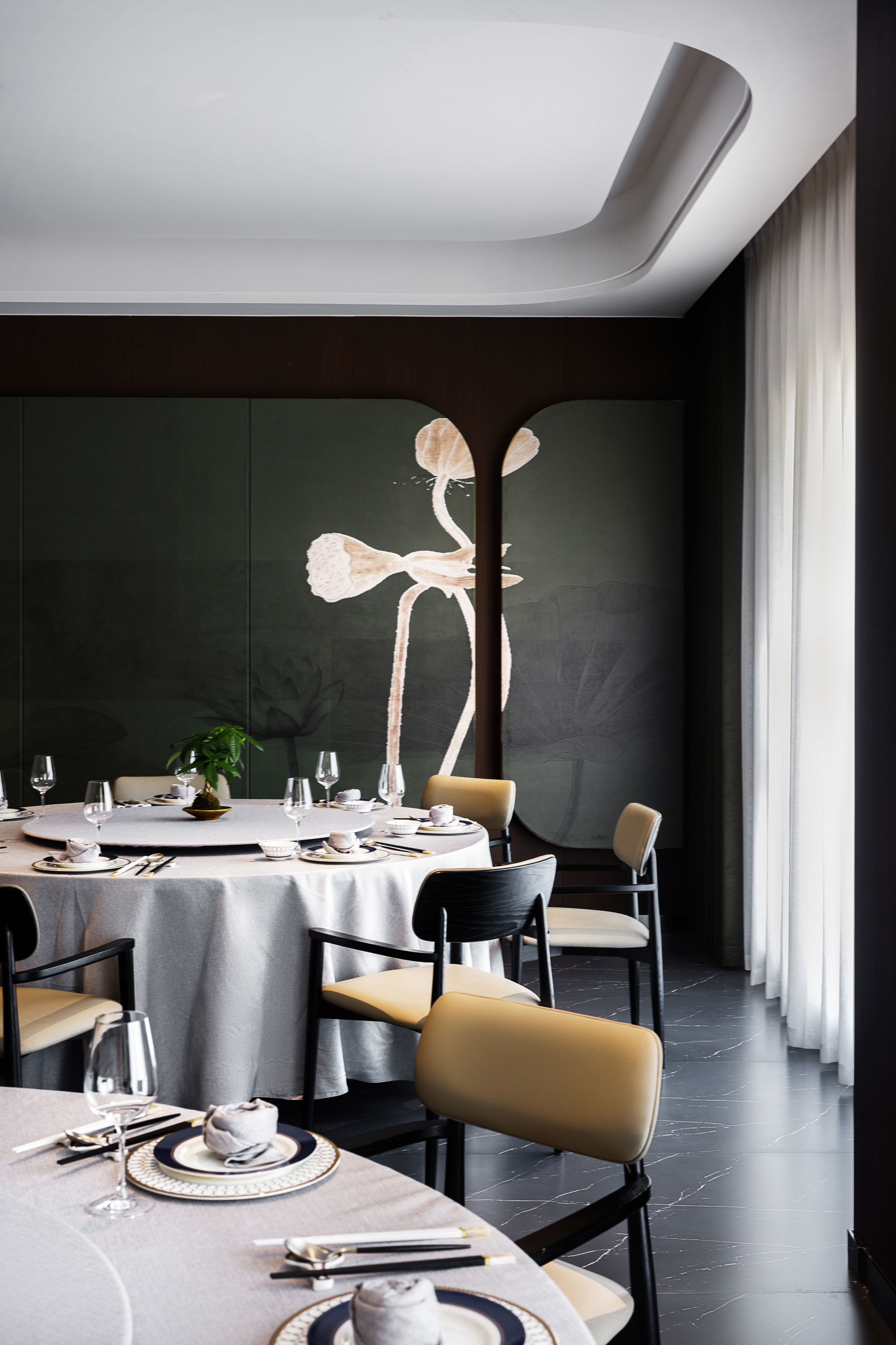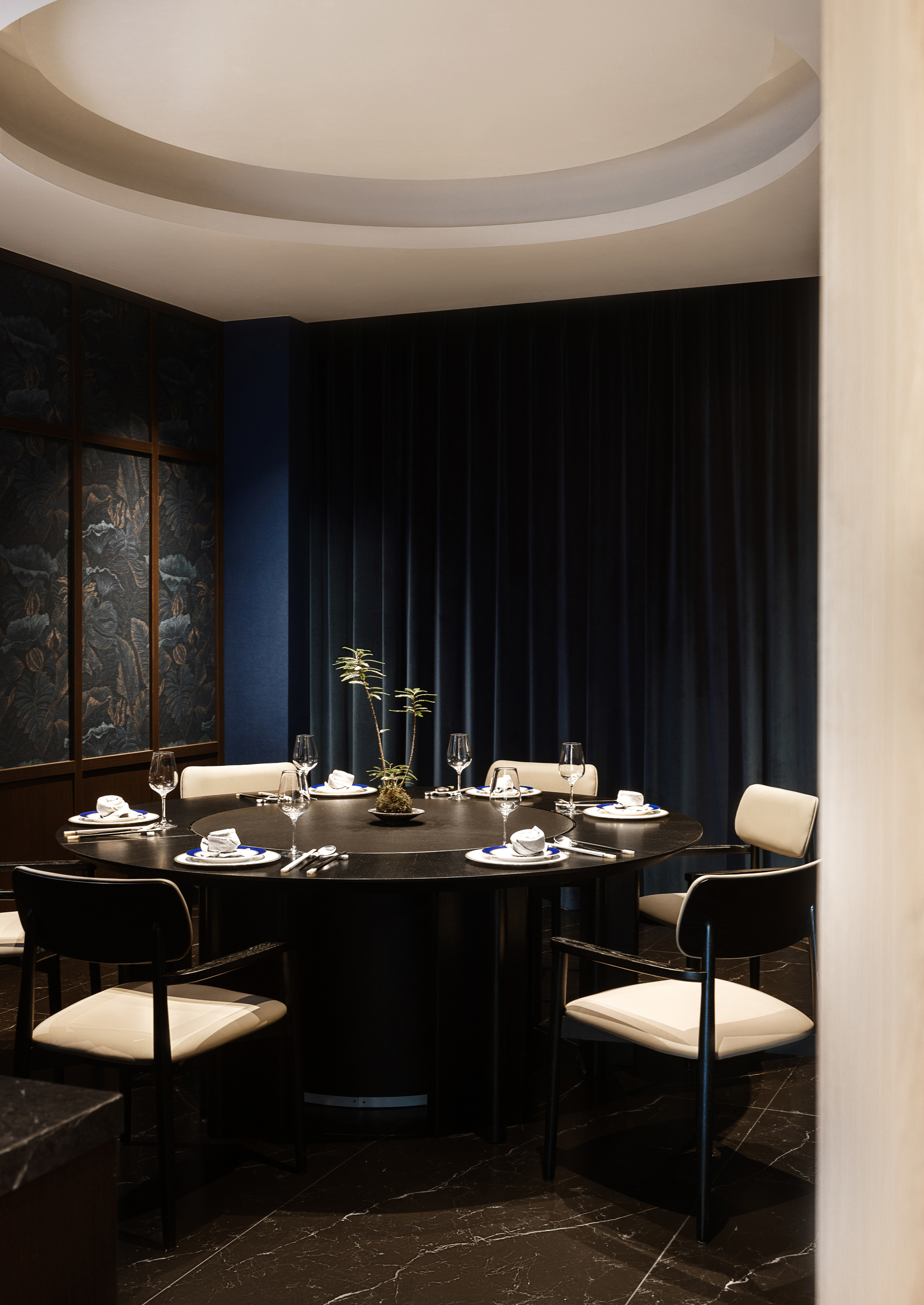项目定位:本案是一个两层结构的中餐厅——萃圓雅宴,以复古、风雅、融合为核心理念,将江南的雅致与无锡本土食材相融合,同时融入海派摩登复古元素,打造兼具城市归属感与国际品味的社交第三空间。